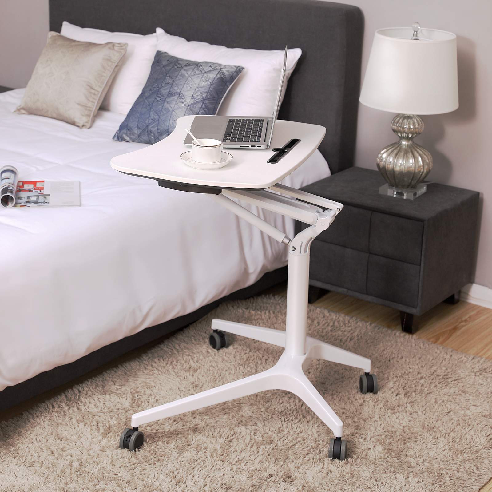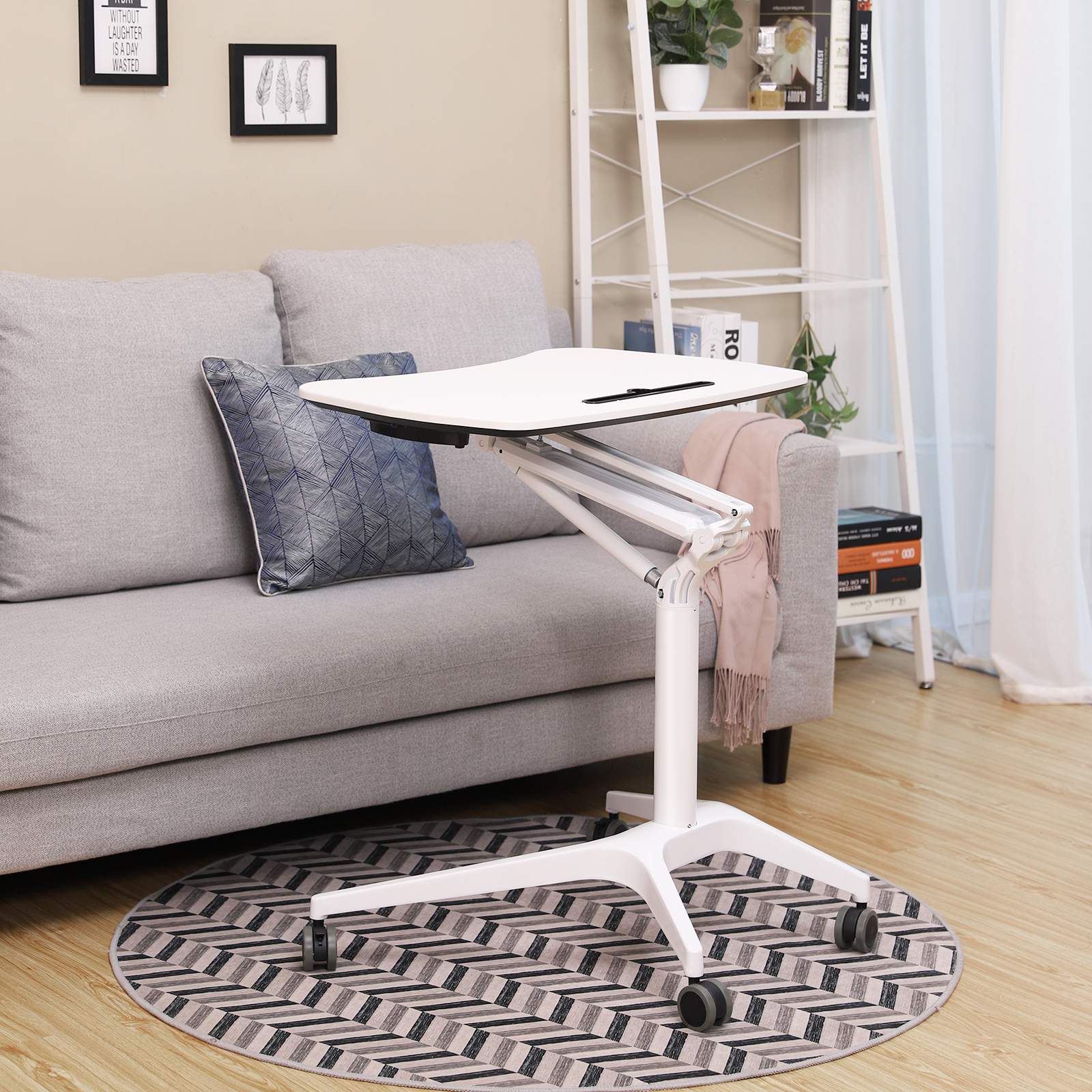 Hvorfor v?lge SONGMICS? Sidde eller st? efter ?nske Det rullende multifunktionelle laptopbord fra SONGMICS giver dig mulighed for frit at justere fra siddende til st?ende stilling og sikrer dermed optimal produktivitet, uanset om du holder en pr?sentation eller arbejder hjemmefra. Ergonomisk h?jdejustering Med det pneumatiske l?ftesystem kan bordpladen indstilles n?jagtigt til den ?nskede h?jde med et brugervenligt h?ndtag p? siden, s? du endelig kan f? lindring for nakke og ryg efter forkert siddende eller st?ende stilling. Let at flytte og pladsbesparende Mobile skriveborde fra SONGMICS er udstyret med 4 tunge ruller, s? du kan tage dem med overalt uden at skulle bekymre dig om manglen p? et podium. Det er en ideel b?rbar arbejdsplads til hjemmet eller kontoret! Produktdetaljer: – Farve: hvid – Materiale: MDF-plade, aluminium – Bordpladens m?l: 71,5 x 47,5 cm – H?jde: 75-105 cm – V?gt: 12,2 kg – Maks. belastning: 50 kg Leveringsomfang: – 1 x st?ende skrivebord – 1 x beslagspose – 1 x vejledning (DE, EN, FR, ES, IT) SONGMICS Bem?rkninger: – Overbelast ikke produktet.