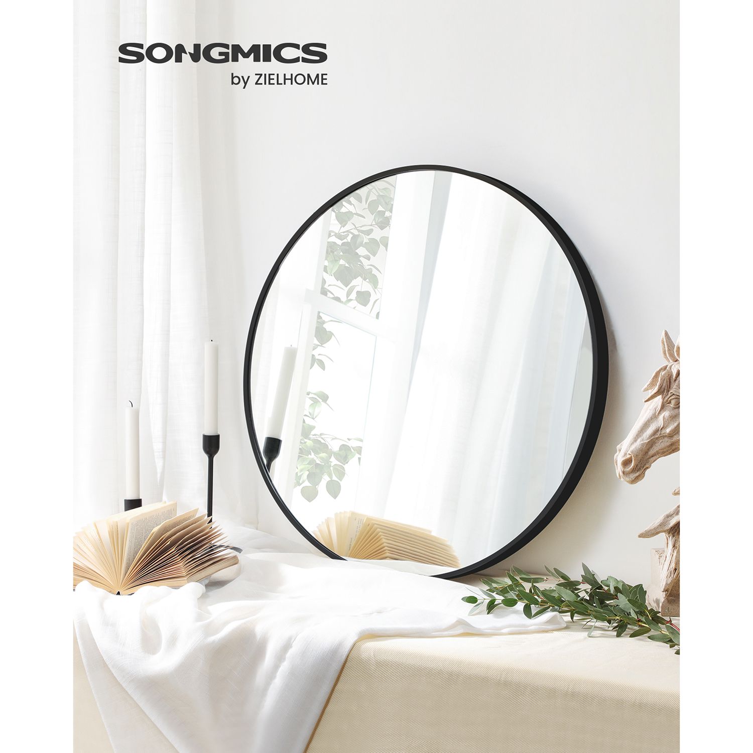 Passer ind i ethvert rum: Tag en rund form og tilf?j en guldfarvet metalramme. Resultatet? En enkel, men elegant rund spejl, der nemt passer ind i ethvert rum og fuldender looket i din entr?, sovev?relse eller badev?relse. Ikke kun en fryd for ?jet: P? trods af sit flotte udseende er denne v?gspegel ikke kun et dekorativt element uden form?l. Vil du fordoble synligheden selv i sm? rum? Reflektere lys for at g?re rummet lysere? Tjekke din makeup, f?r du g?r ud? Denne spejl opfylder alle disse form?l. Produktdetaljer: Farve: Guldfarvet Materialer: Aluminiumslegering, MDF-bagside, s?lvbelagt glas Spejlets diameter: 61 cm Spejlets tykkelse: 3,6 cm V?gt: 4,3 kg Leveringsomfang: 1 x rund spejl 1 x vejledning SONGICs bem?rkninger:Tag produktet forsigtigt ud af emballagen for at undg? skader. Brug ikke produktet, hvis det er beskadiget. R?r ikke ved knust glas, hvis det falder ned.