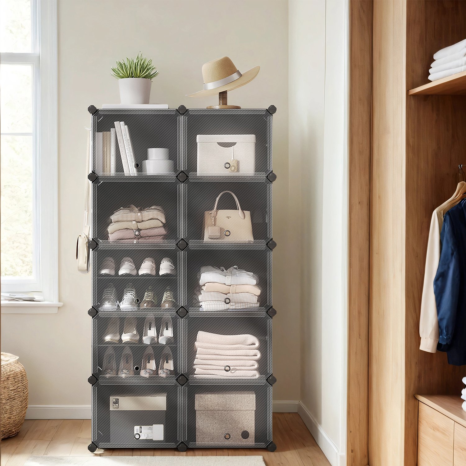 SONGMICS skoholder med 10 rum, skoskab, 30 x 40 x 30 cm pr. rum, smal, med d?re, st?lramme, plast, til entre, sovev?relse, indgang, sort LPC035B01