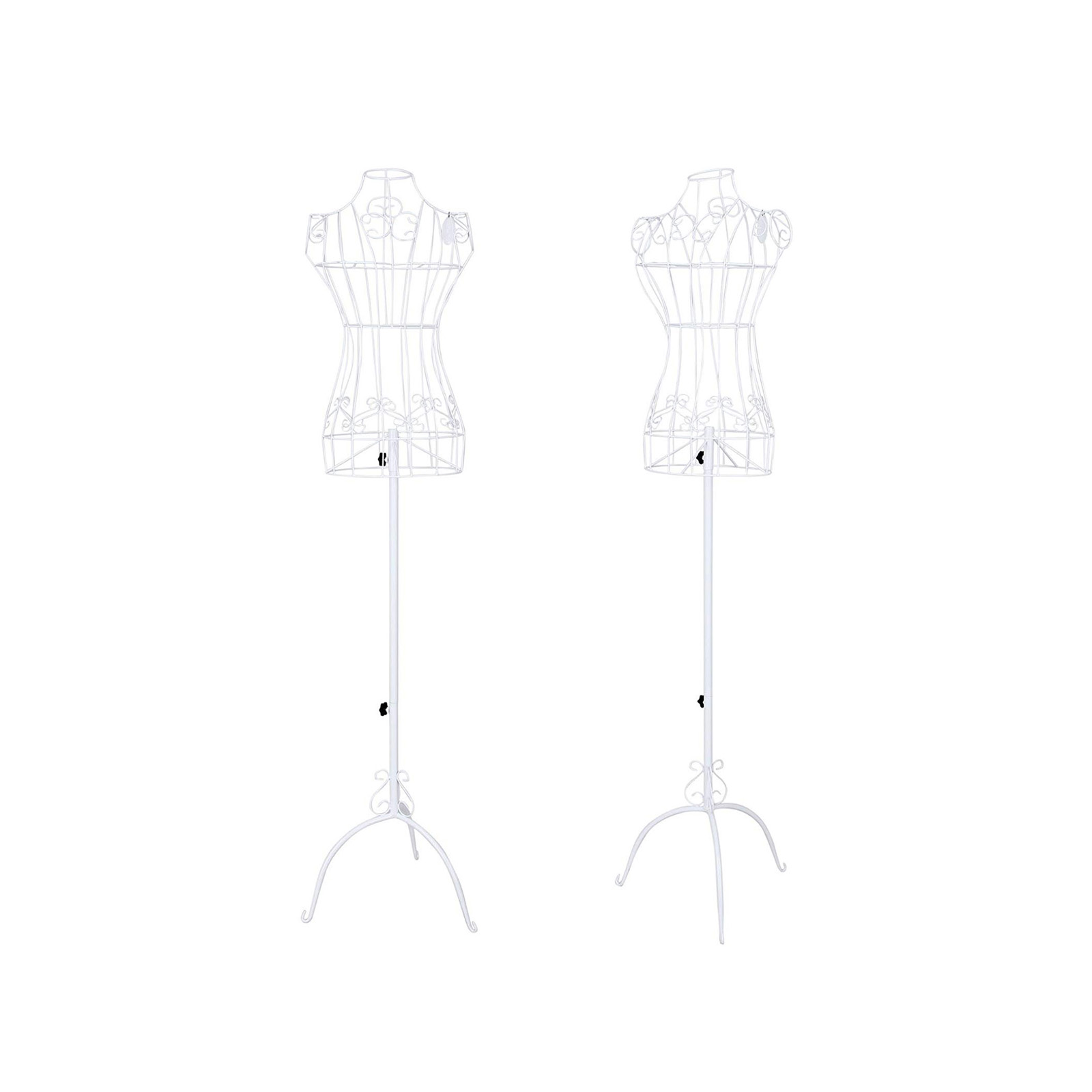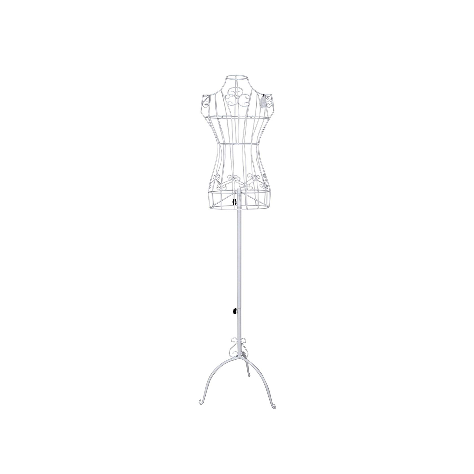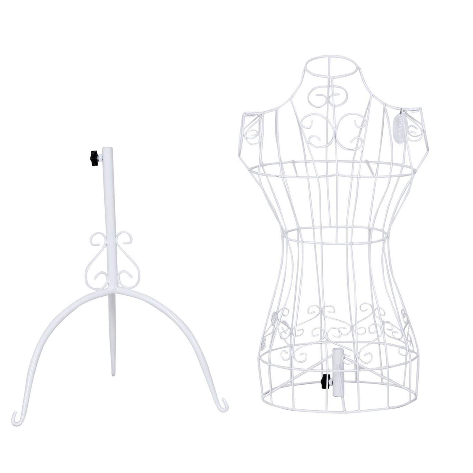 Leder du efter en skr?dderdukke, der er robust og smuk og passer til din butik eller dit stue? Skr?dderdukken fra Songmics er uden tvivl den perfekte l?sning! Skr?dderdukken er lavet af robust jern med pulverlakeret overflade, hvilket g?r den robust og holdbar. Skr?ddertorsoen har en meget stabil fod. Takket v?re h?jdejusteringen kan du tilpasse din skr?dderdukke til din foretrukne h?jde. De imponerer med et sofistikeret og kreativt design og en fremragende finish. De elegante blomsterm?nstre p? hals, skuldre og bryst understreger ogs? den individuelle karakter af de stilfulde skr?dderbustes. Som et dekorativt highlight passer den perfekt i sovev?relset, entreen, vinterhaven eller p? verandaen! Produktdetaljer: – Materiale: jern – Farve: hvid – Samlet h?jde justerbar: fra 112 cm til 170 cm – Skulderomkreds: ca. 33 cm – Brystomkreds: ca. 85 cm – Taljeomkreds: ca. 56 cm – Hofteomkreds: ca. 86 cm – H?jde p? hovedkroppen: ca. 65 cm Leveringsomfang: – 1 x skr?dderdukke