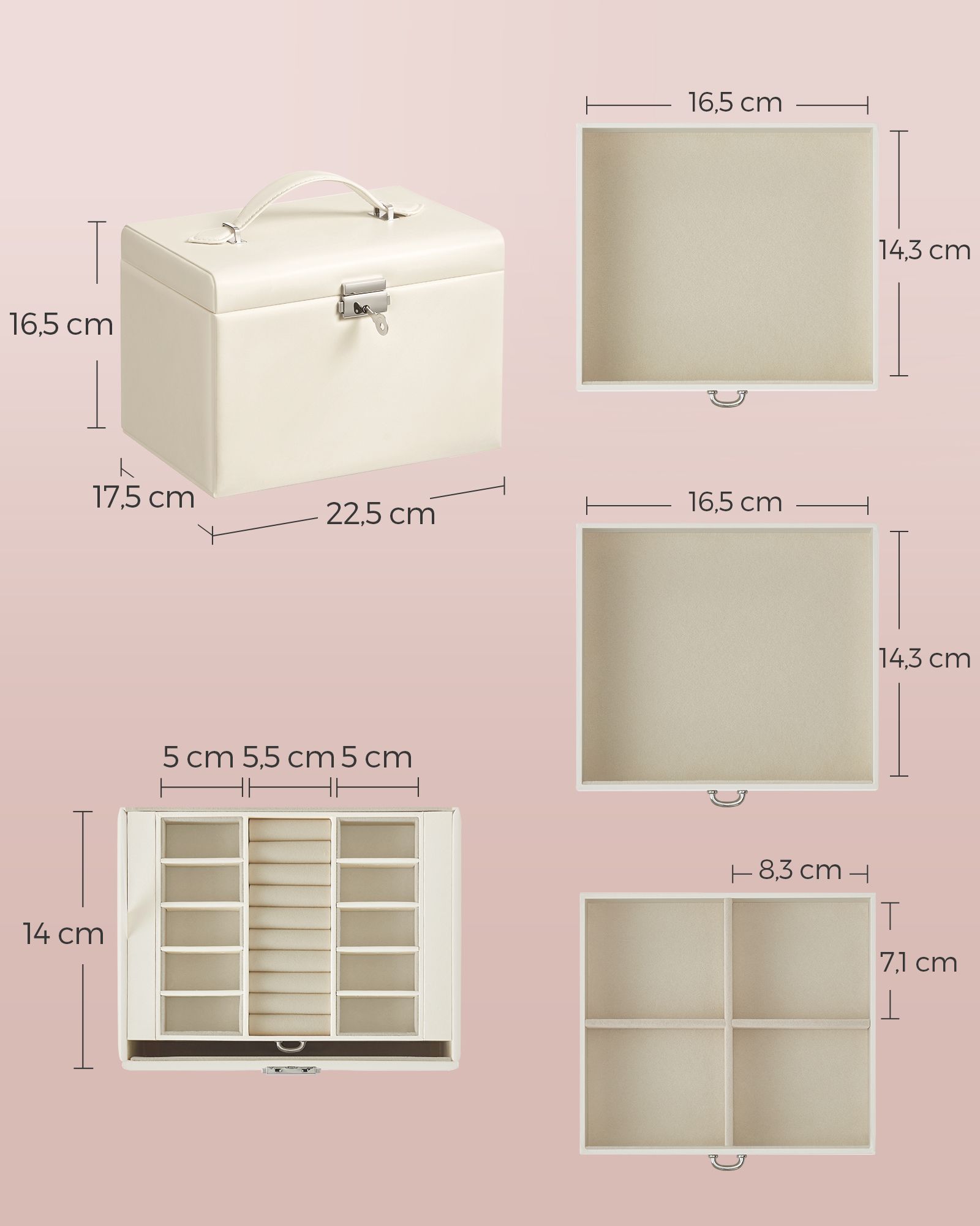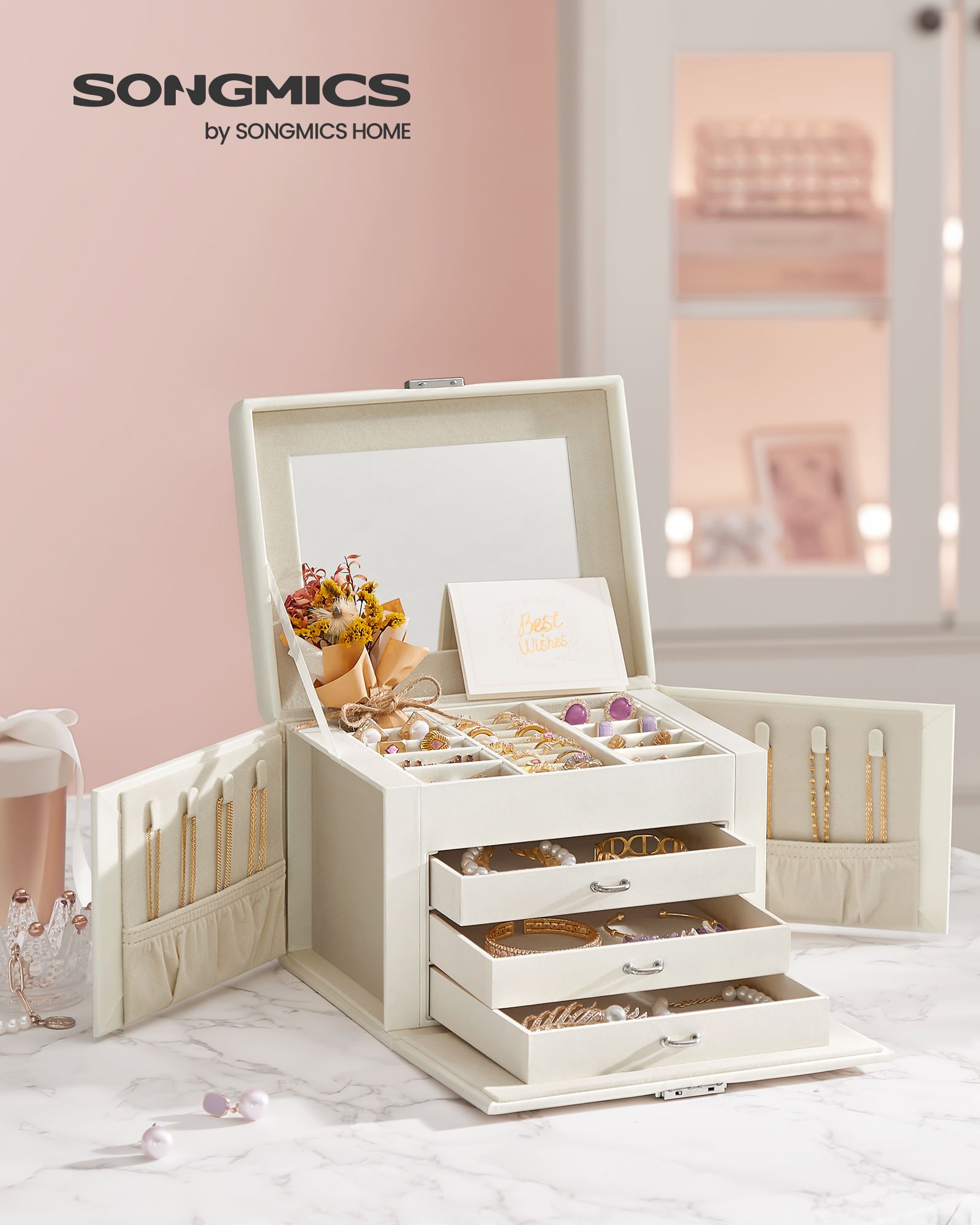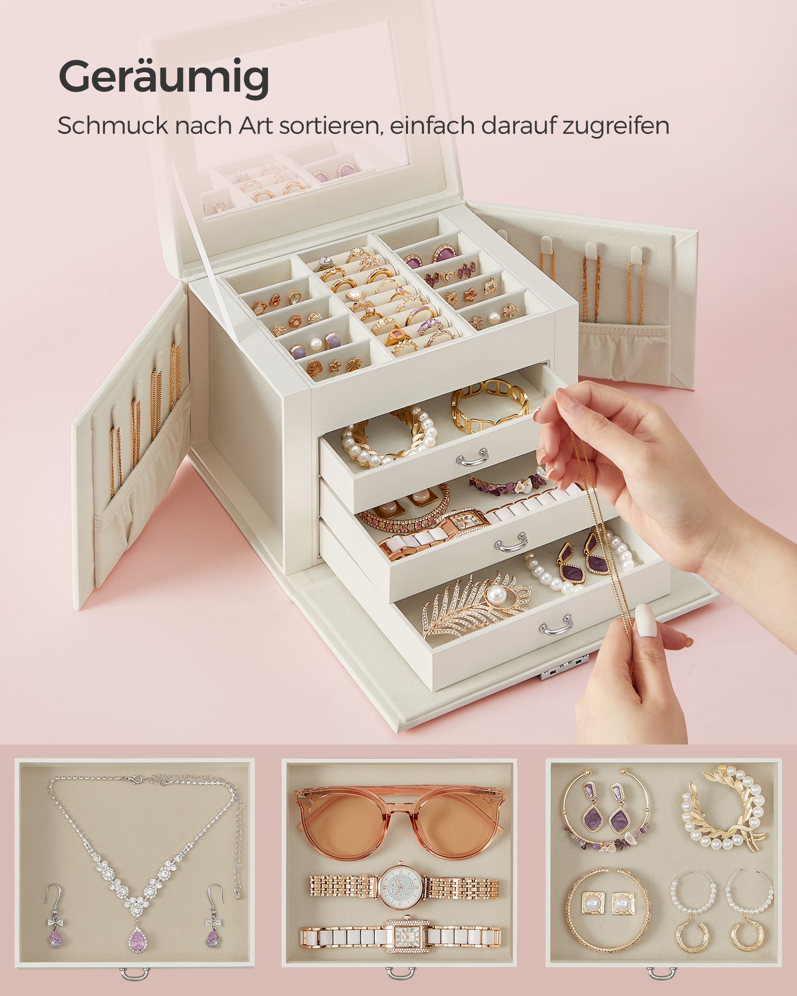 SONGMICS smykkeskrin, smykkeskrin, smykkeskrin, med 4 niveauer, indvendig foring af fl?jl, sort JBC159B01