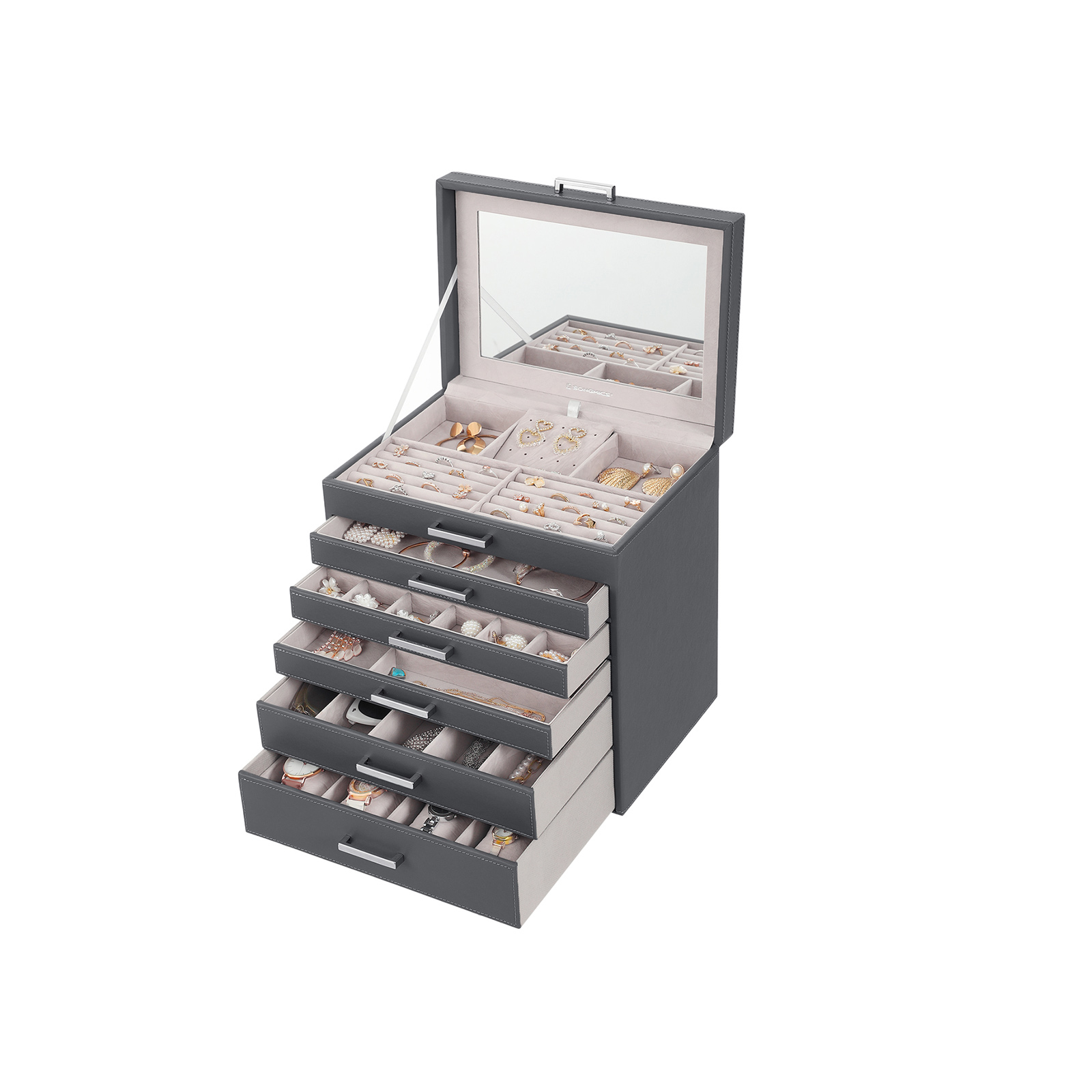 SONGMICS stort smykkeskrin, smykkeskrin med 6 niveauer og 5 skuffer, spejl, hvid JBC138