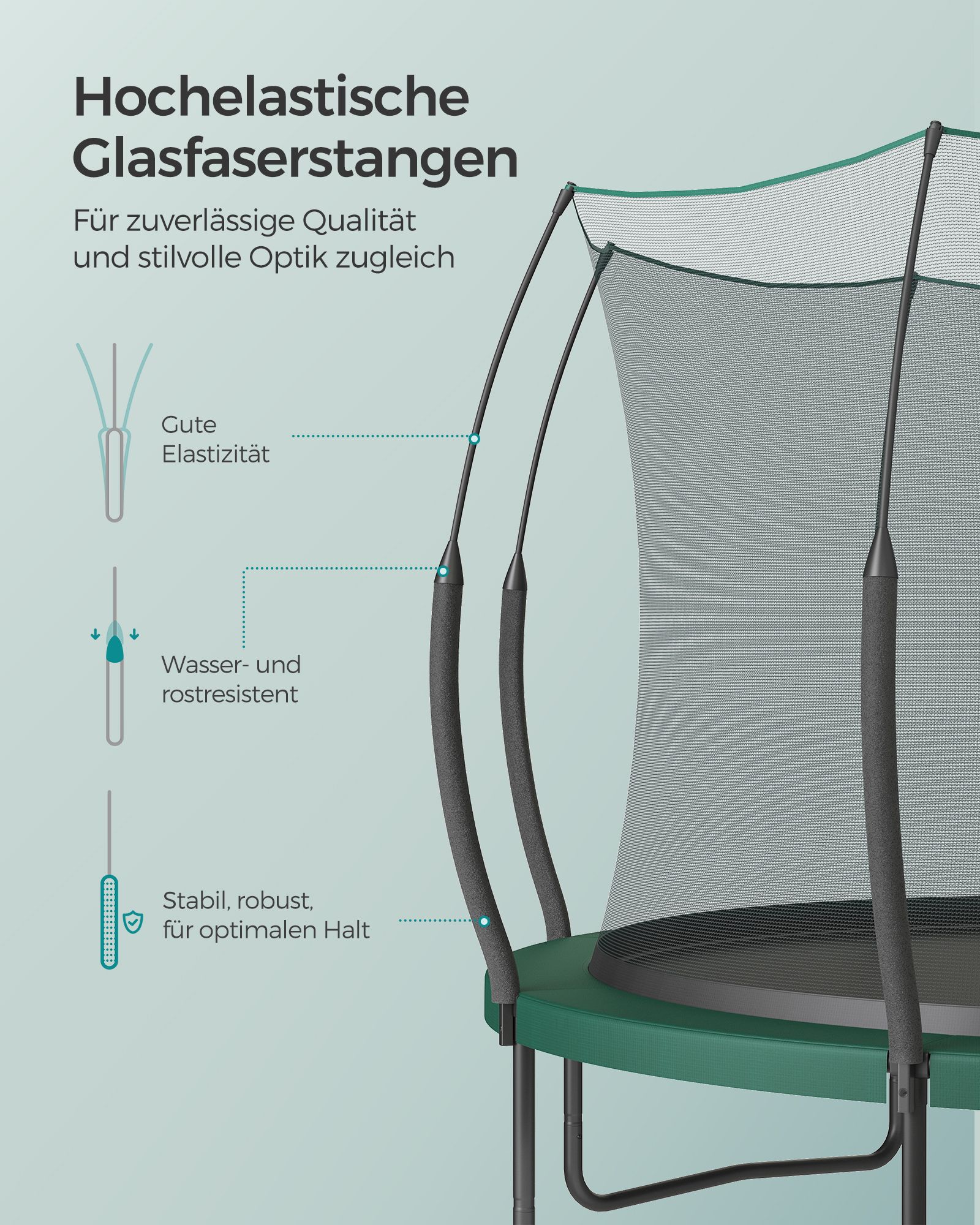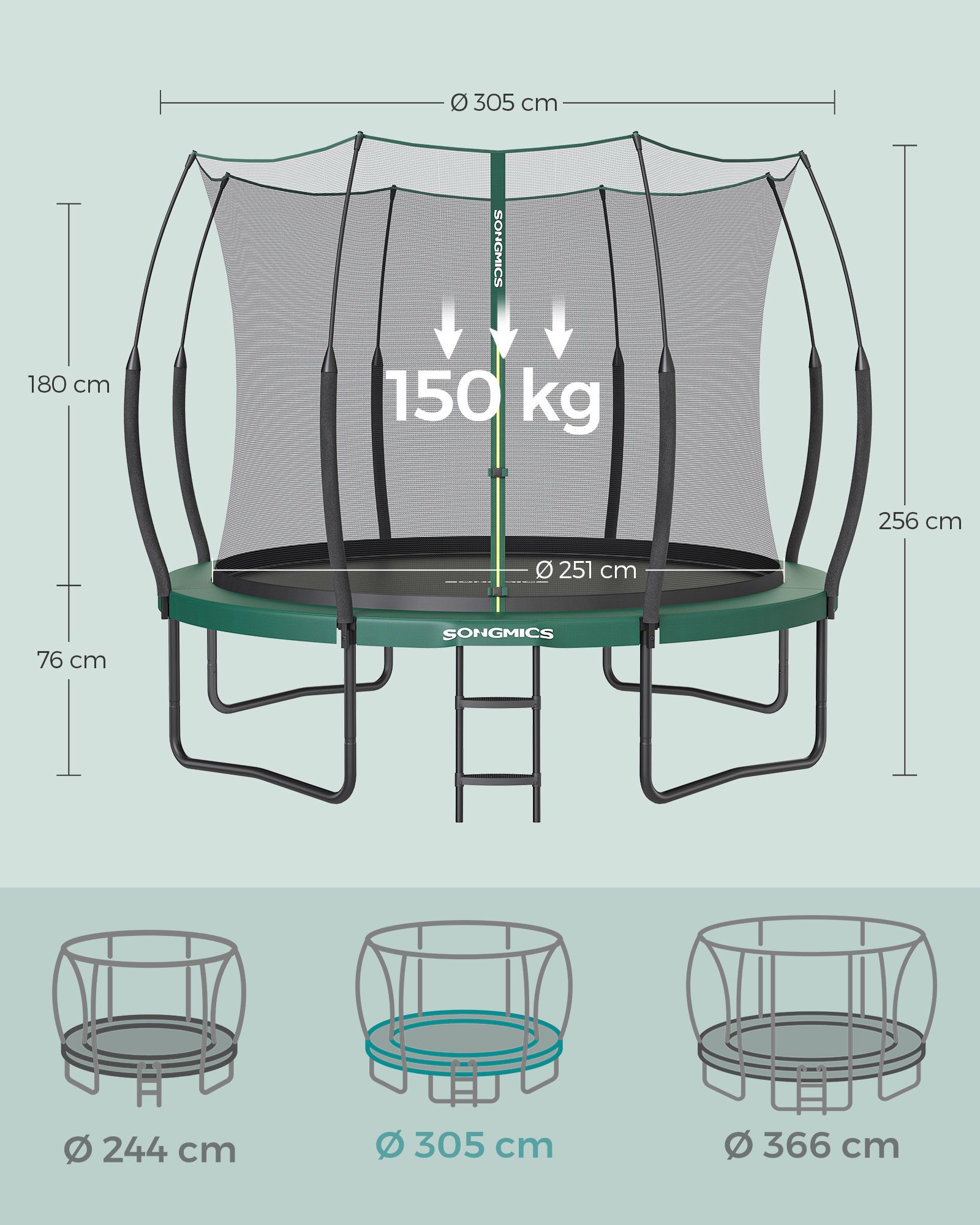 SONGMICS Fjedervild trampolin ? 244/305/366 cm, udend?rs trampolin til b?rn, elastiske reb, sikkerhedsnet med lynl?s, glasfiberst?nger, sikker, st?jsvag