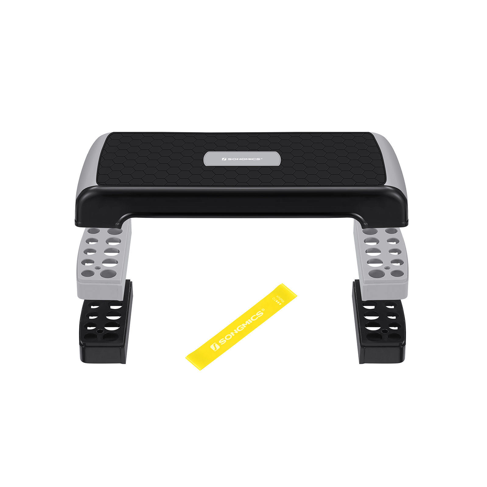 F? det bedste ud af din tr?ning derhjemme og din begr?nsede tid! Takket v?re det holdbare materiale og den robuste konstruktion kan denne stepbr?t holde i mange ?r. Montering er en smal sag ? bare stabel st?tteblokkene, og du er f?rdig. Uanset om det er i fitnesscentret, derhjemme eller p? kontoret, kan denne stepper nemt tages med overalt.H?jdepunkterne ved denne stepbr?t: Let at transportere og reng?re Skridsikker non-stick overflade Kan b?re op til 100 kg En stor overflade til intensiv og udfordrende cardiotr?ning Hj?lper dig med at forbedre din kondition derhjemme, p? kontoret eller udend?rs De skridsikre puder sikrer stabilitet og beskytter dit gulv mod ridser Produktdetaljer: Farve: Sort-gr? Materiale: PP-plast, TPE-gummipuder St?rrelse: 78 x 31 x (10/15/20) cm (L x B x H) M?l p? modstandsb?ndet: 600 (omkreds) x 50 (bredde) x 0,65 mm (tykkelse) V?gt: 3,7 kg Maks. statisk belastning: 100 kgLeveringsomfang:1 x stepbr?t4 x st?tteblok1 x modstandsb?ndSONGMICS Bem?rkninger:Brug produktet p? et plant og t?rt underlag, under ingen omst?ndigheder p? et glat underlag med vand- eller olieflekker, for at undg? skader som f?lge af udskridning.Hold b?rn og k?ledyr v?k fra produktet.