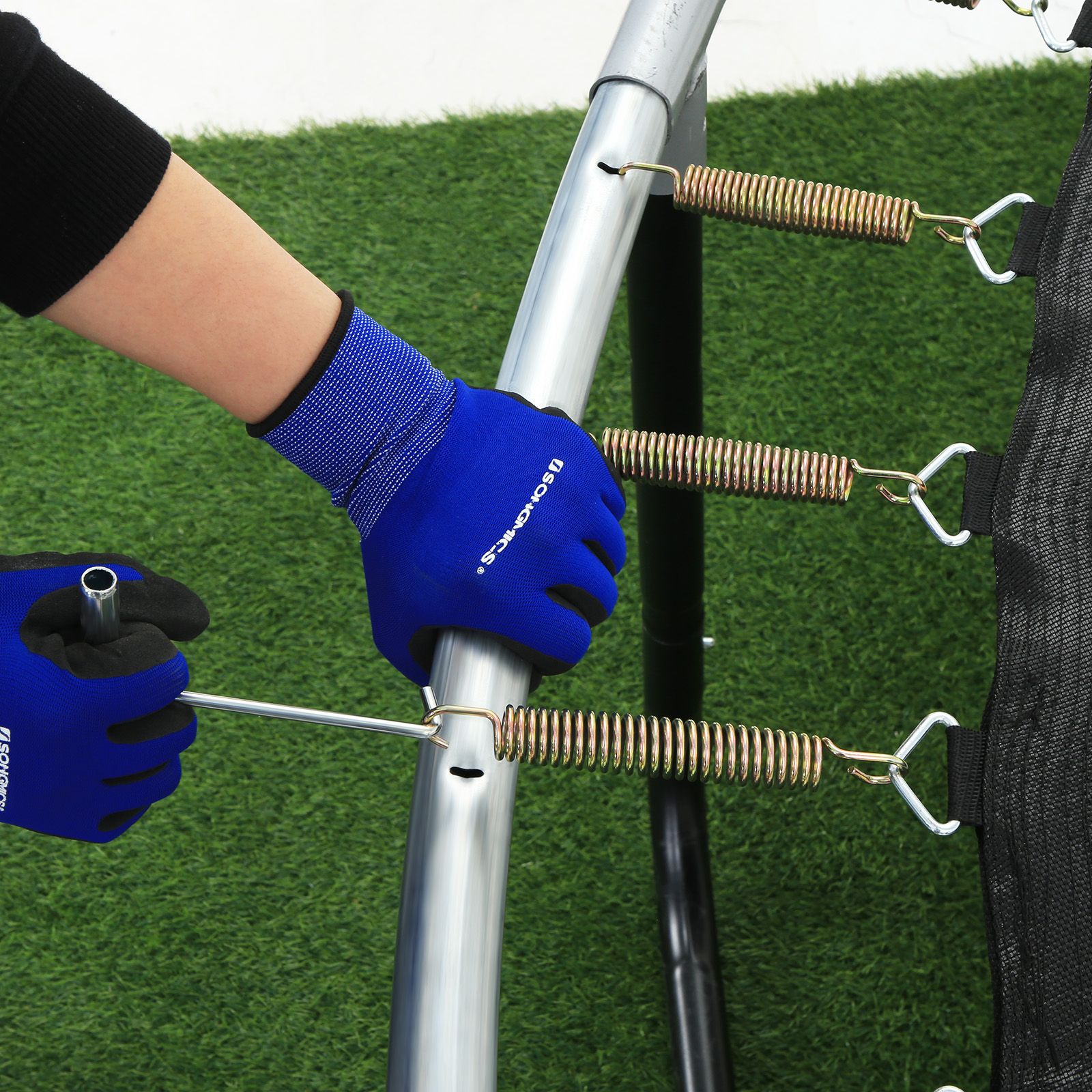 Produktdetaljer: Farve: Sort Materiale: 265 g/m? PP-plast (polypropylen), galvaniseret jern St?rrelse: ? 202 cm V?gt: 2,5 kg Maks. statisk belastning: 150 kg Leveringsomfang: 1 x trampolinspringdug SONGMICS Bem?rkninger: B?rn under 3 ?r m? ikke bruge dette produkt. ?ldre b?rn b?r kun bruge det under opsyn af en voksen. Kun egnet til privat brug. M?l f?rst diameteren p? din trampolin og kontroller antallet og l?ngden af fjedrene, inden du bestiller dette produkt.