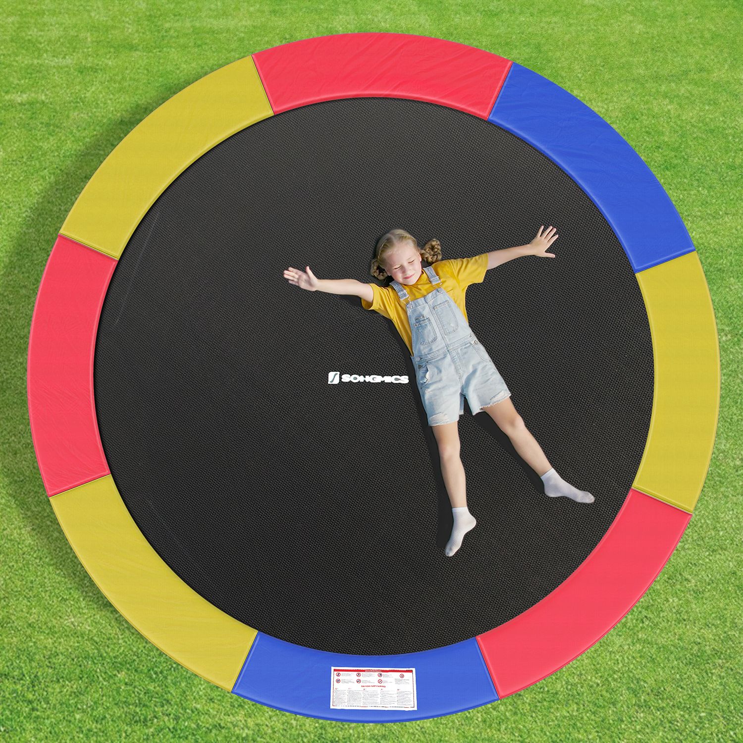 Kantpolstringen er en vigtig del af en trampolin. Brug aldrig en trampolin uden rammepolstring. Kantbeskyttelsen kan nemlig forhindre skader ved fald mod fjedrene eller rammen. Den st?rke polstring fra Songmics er godt forarbejdet og lover en lang levetid. Den udvidede, forst?rkede kantafd?kning d?kker b?de fjedrene og kanten og kan p?lideligt forhindre kontakt med fjedrene p? havetrampolinen og dermed sikre ekstra beskyttelse. Bem?rk: – F?r k?bet skal du omhyggeligt m?le st?rrelsen p? din trampolin, s? du kan v?lge den rigtige kantafd?kning. – N?r du bruger trampolinen, skal du v?re opm?rksom p? de vigtige sikkerhedshenvisninger, der kan tjene til din personlige sikkerhed, n?r du hopper p? trampolinen. – Velegnet til alle runde trampoliner med en diameter p? 244/305/366/426/487 cm – Dette tilbud omfatter kun fjederafsk?rmningen og IKKE hele trampolinen! Produktdetaljer:- Materiale: – Overflade: r?d+gul+bl? 500D PVC (310 g/m?) – Underside: PE-plast – Midten er polstret med EPE-skum med en tykkelse p? 15 mm og en bredde p? 300 mm. M?l: – Ydre diameter: 244 cm – Indre diameter: 184 cm – Tilstand: Ny og original emballeret.