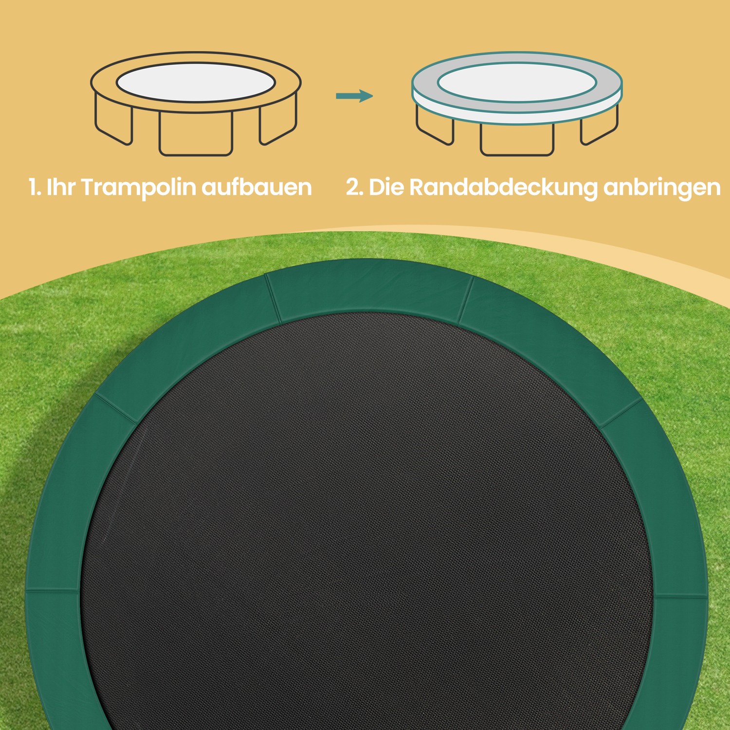 Trampolin kantd?ksel, fjederafsk?rmning i standardst?rrelse til 366 cm trampoliner, UV-resistent, rivfast trampolintilbeh?r, kantbeskyttelse, gr?n