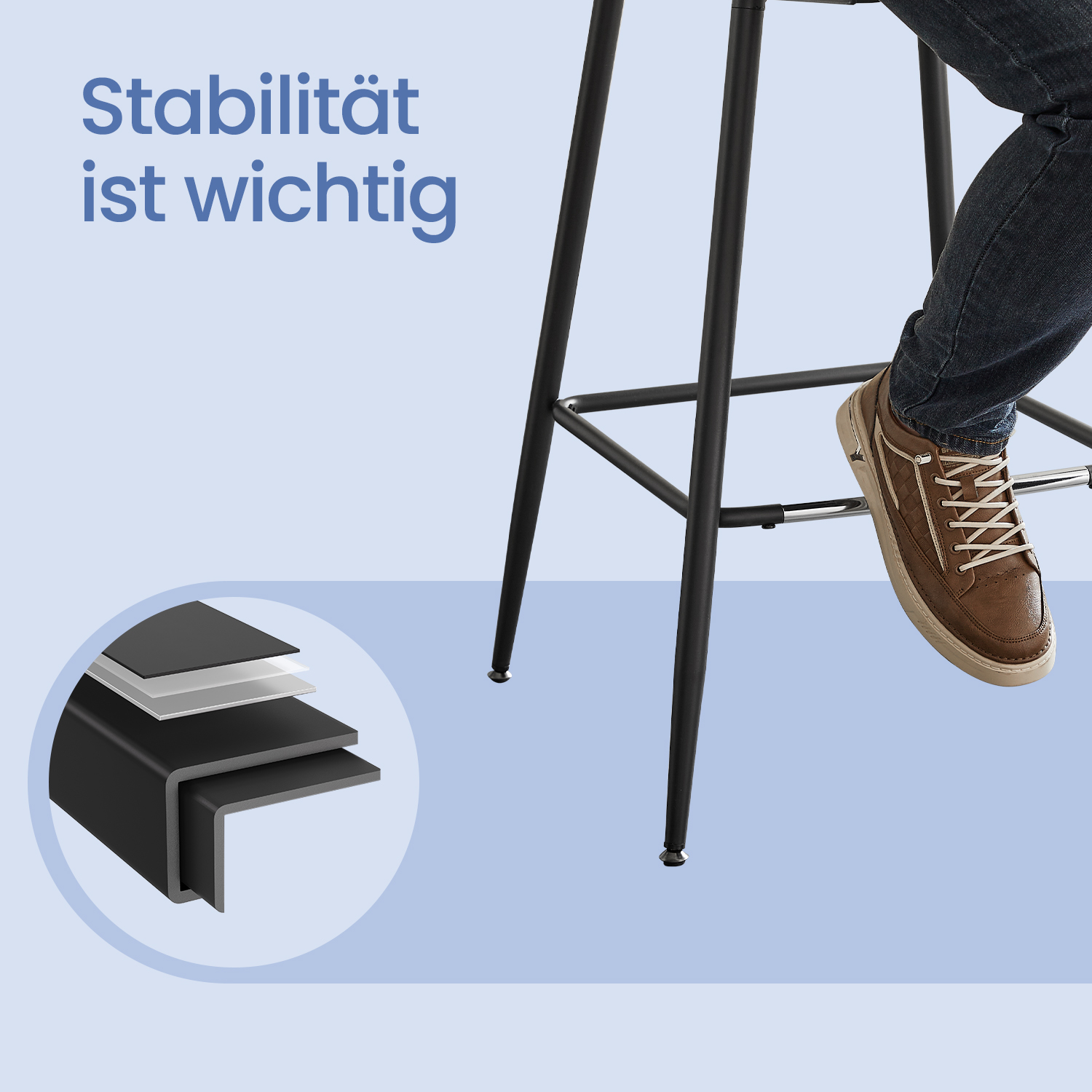 VASAGLE barstole, 2 stk., ergonomisk rygl?n, kunstl?der, metalben med justerbare universalf?dder, hjemmebar, nem montering