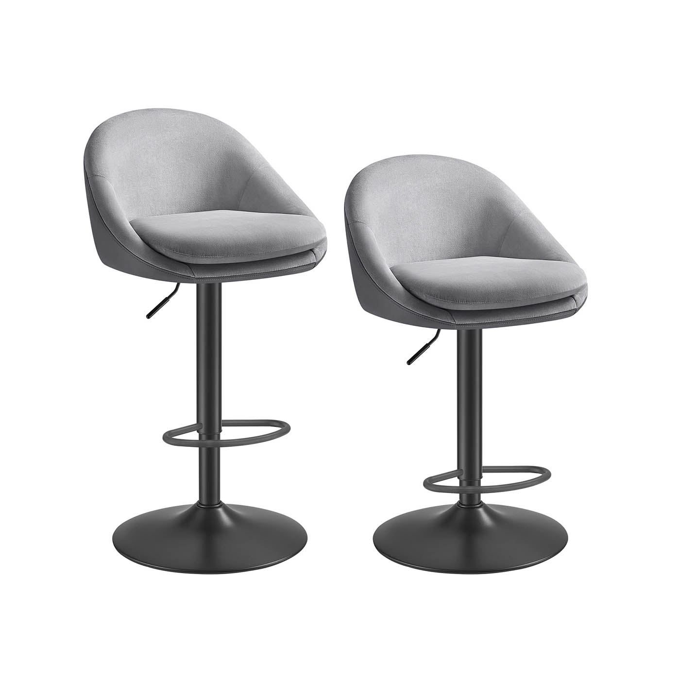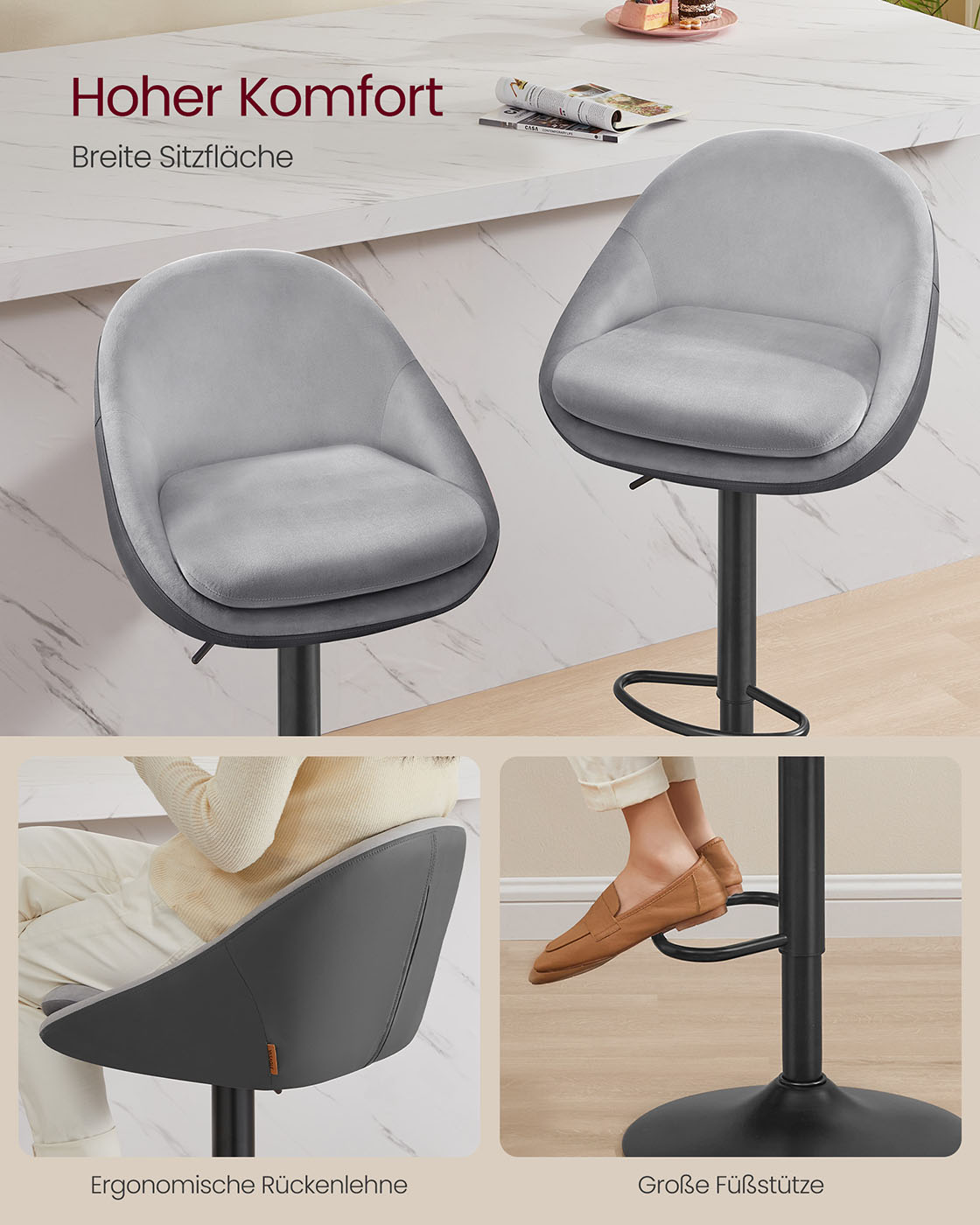 VASAGLE barstole, 2 stk., barstol, h?jdejusterbar, 360? drejelig, k?kkenstol, med rygl?n, fodst?tte, st?l, til bardisk, bar, spisestue, cremehvid-s?lvgr? LJB110W01