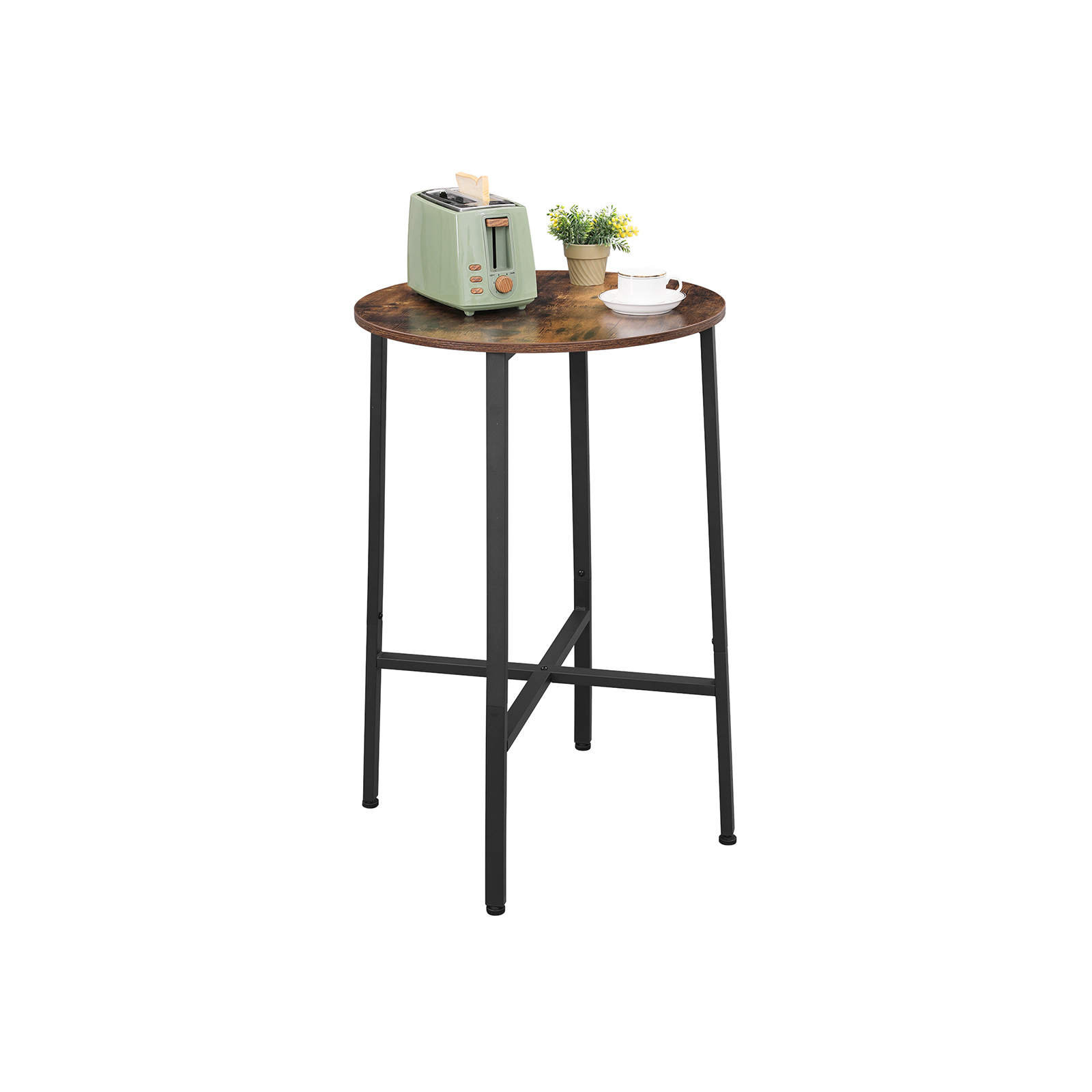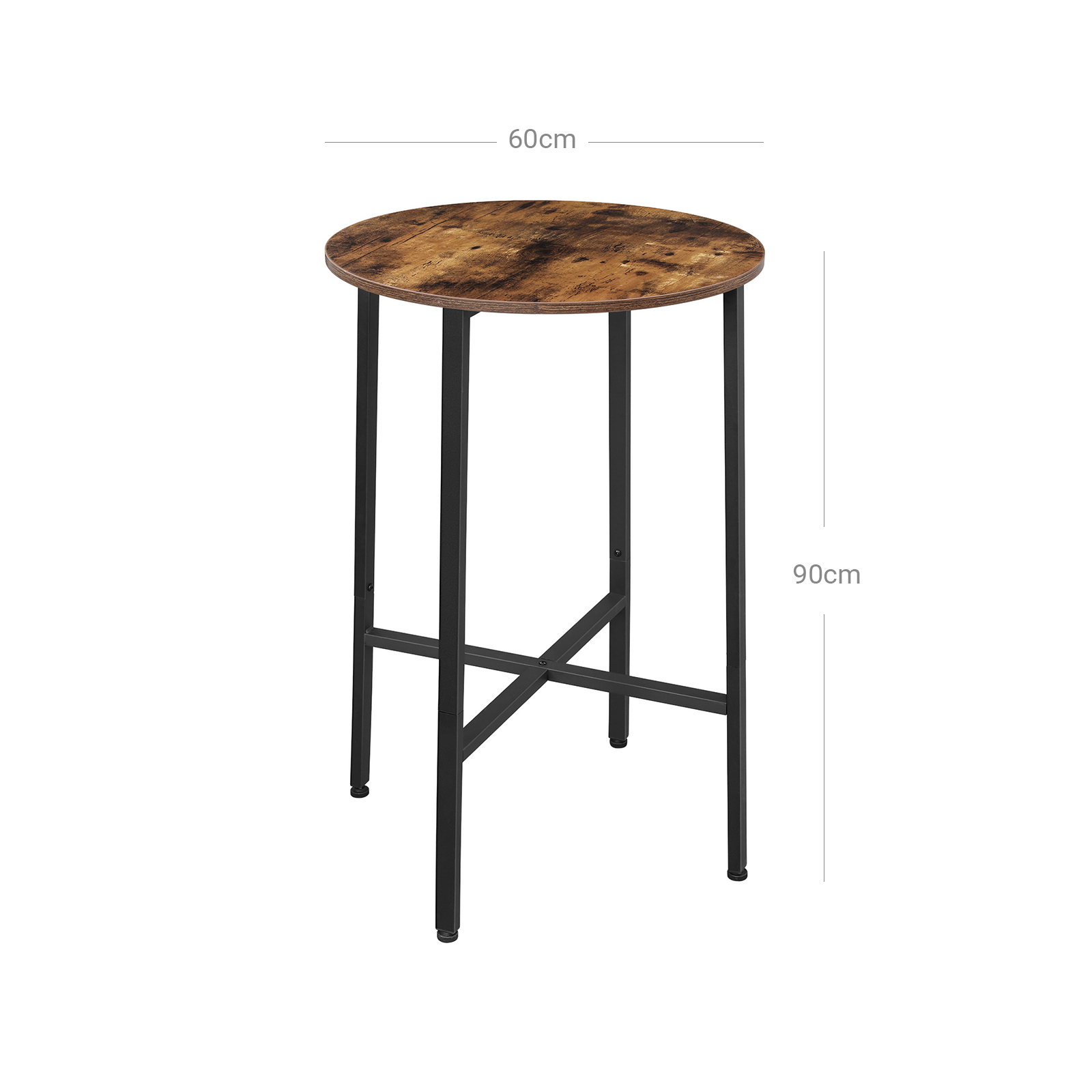 Produktdetaljer: – Farve: Vintagebrun-sort – Materiale: Sp?nplade, st?l – St?rrelse: 60 x 90 cm (? x H) – V?gt: 7 kg – Maks. statisk belastning: 100 kg Leveringsomfang:- 1 x rund barbord – 1 x tilbeh?rspakke – 1 x v?ltebeskyttelse – 1 x vejledning (DE, EN, ES, FR, IT) VASAGLE Bem?rkninger: – Af sikkerhedsm?ssige ?rsager er det forbudt for b?rn at klatre p? eller lege med produktet. – Fastg?r dette produkt til v?ggen med den medf?lgende v?ltebeskyttelse.