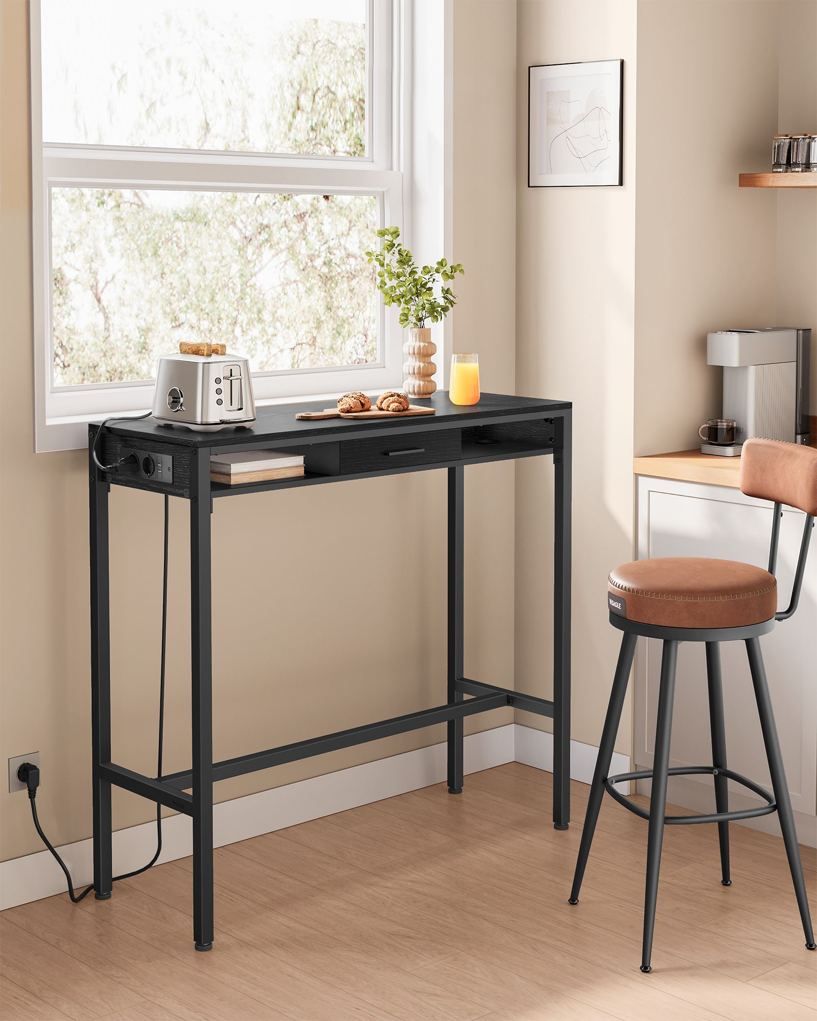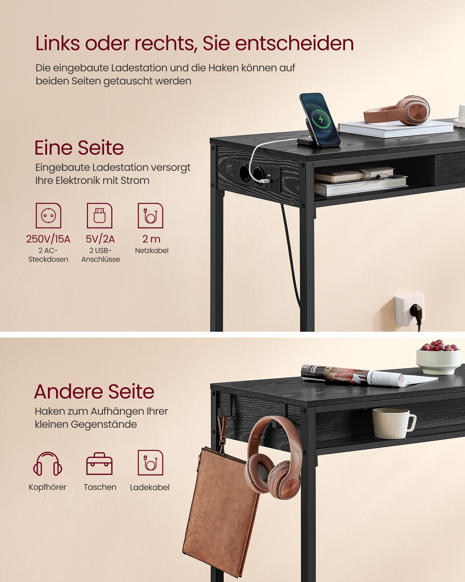 VASAGLE Bartisch, st?ende bord med opladestation og fleksibel skuffe af fleece, kroge, 40 x 99,8 x 104,6 cm, askebrun LBT019K02