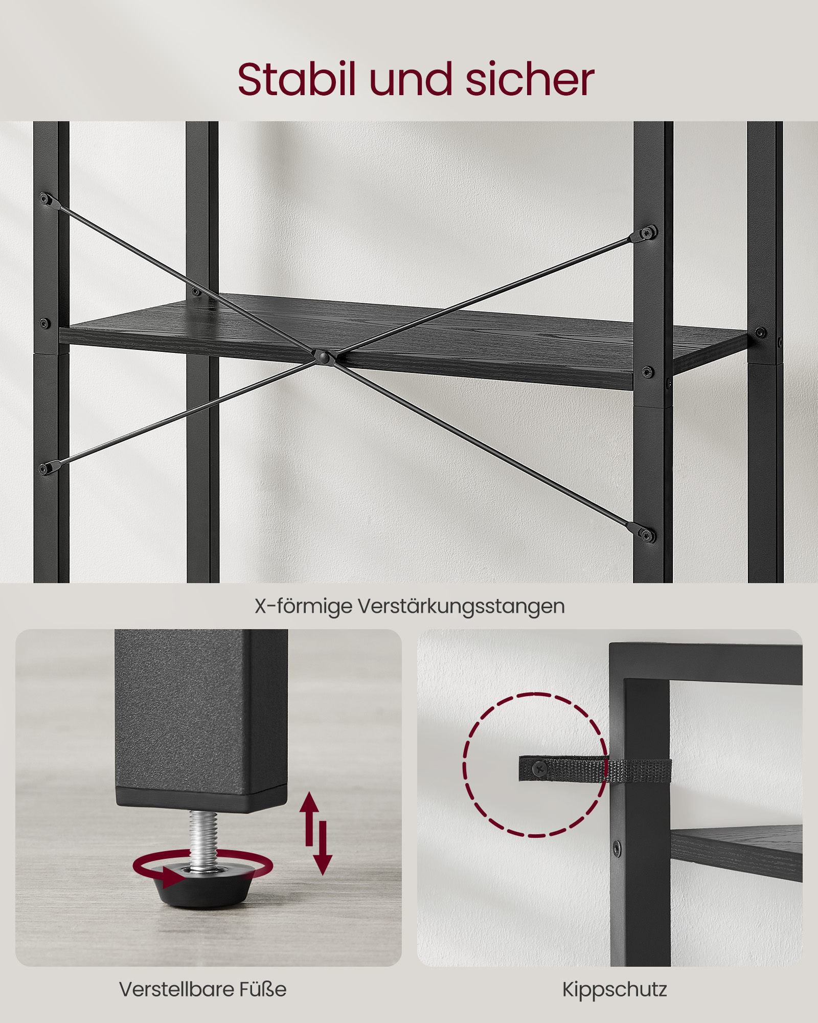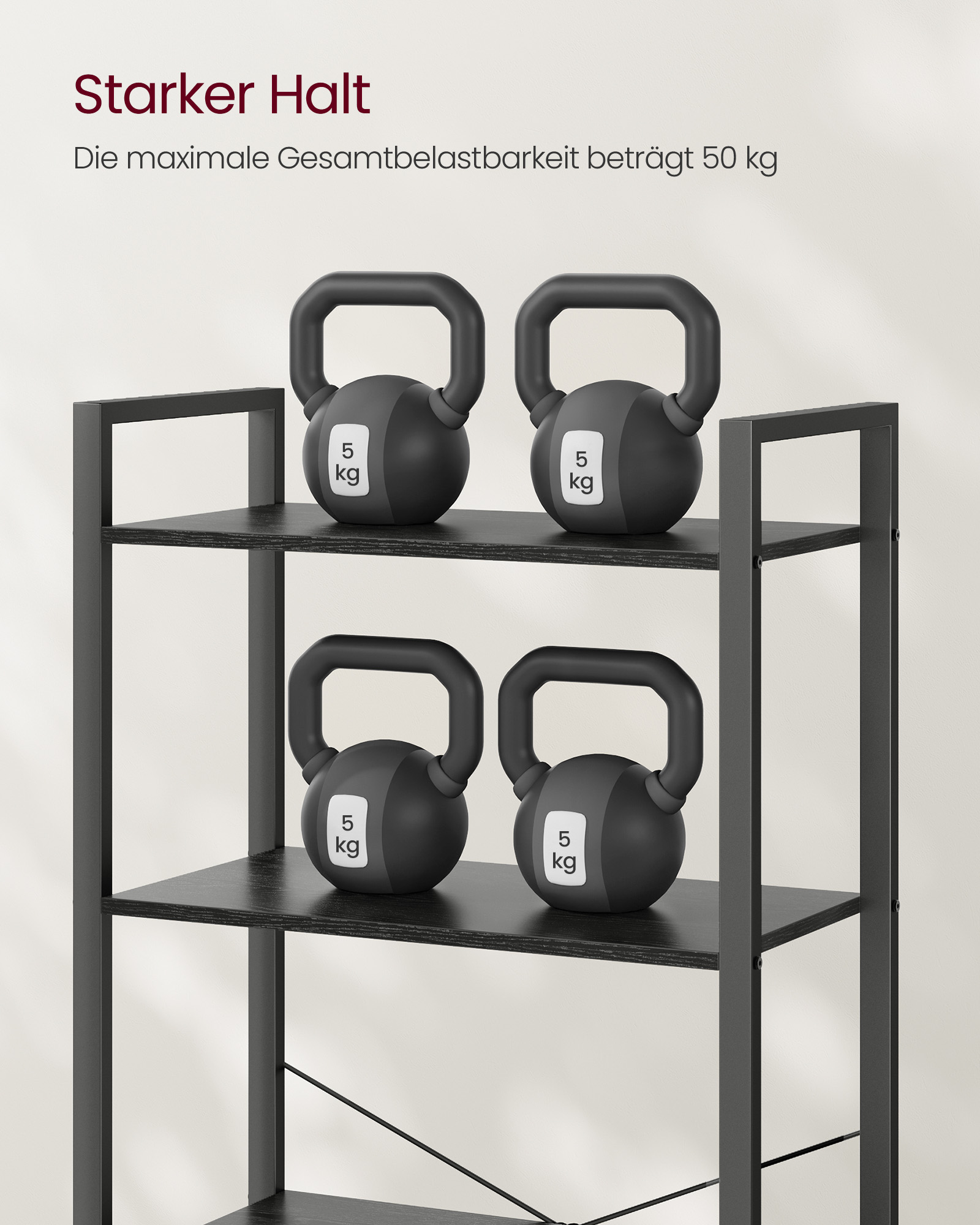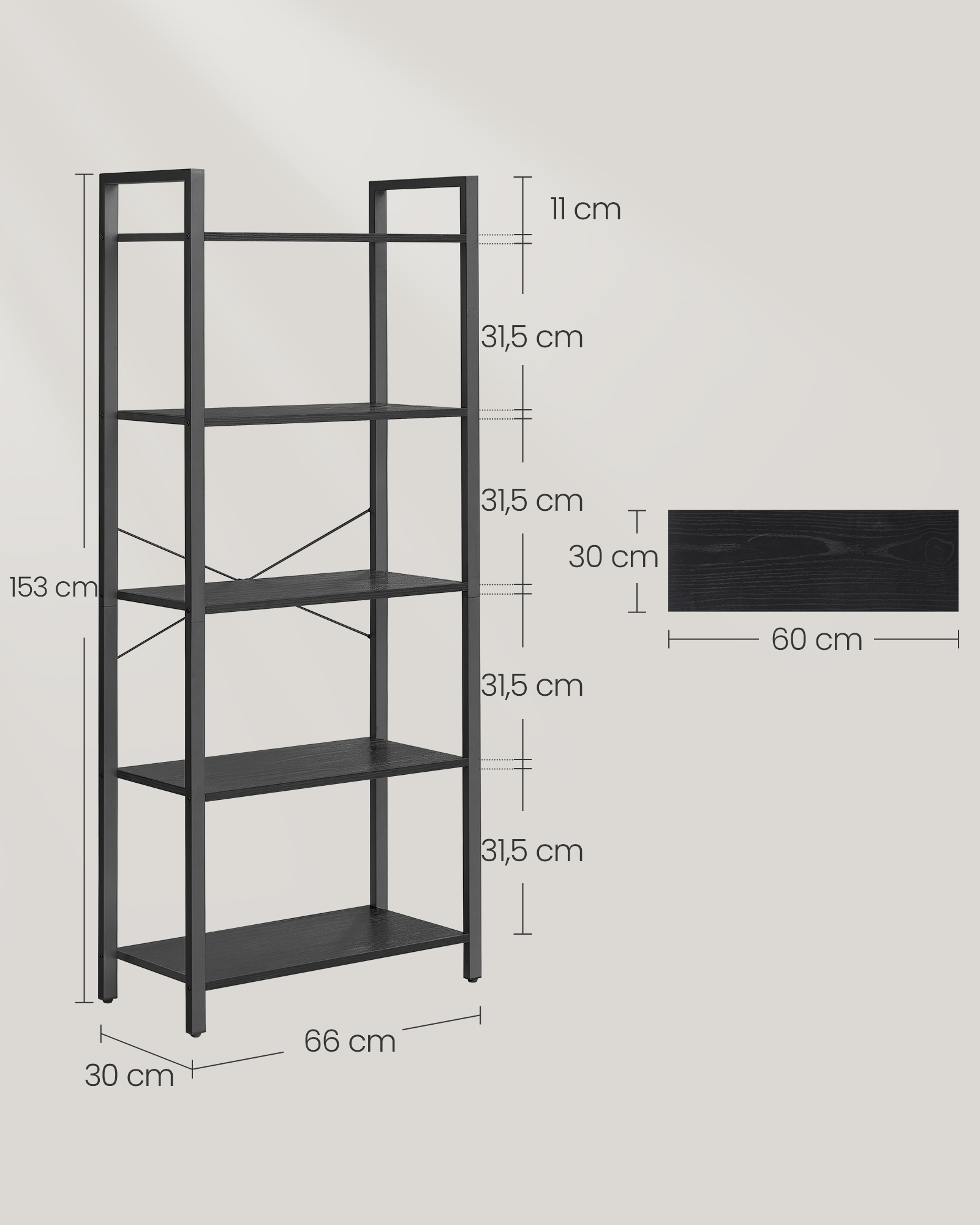VASAGLE bogreol, opbevaringsreol med 5 hylder, industrielt design, til stuen, kontoret, arbejdsv?relset og entreen, st?lstel, sp?nplader, vintagebrun-sort LLS061B01