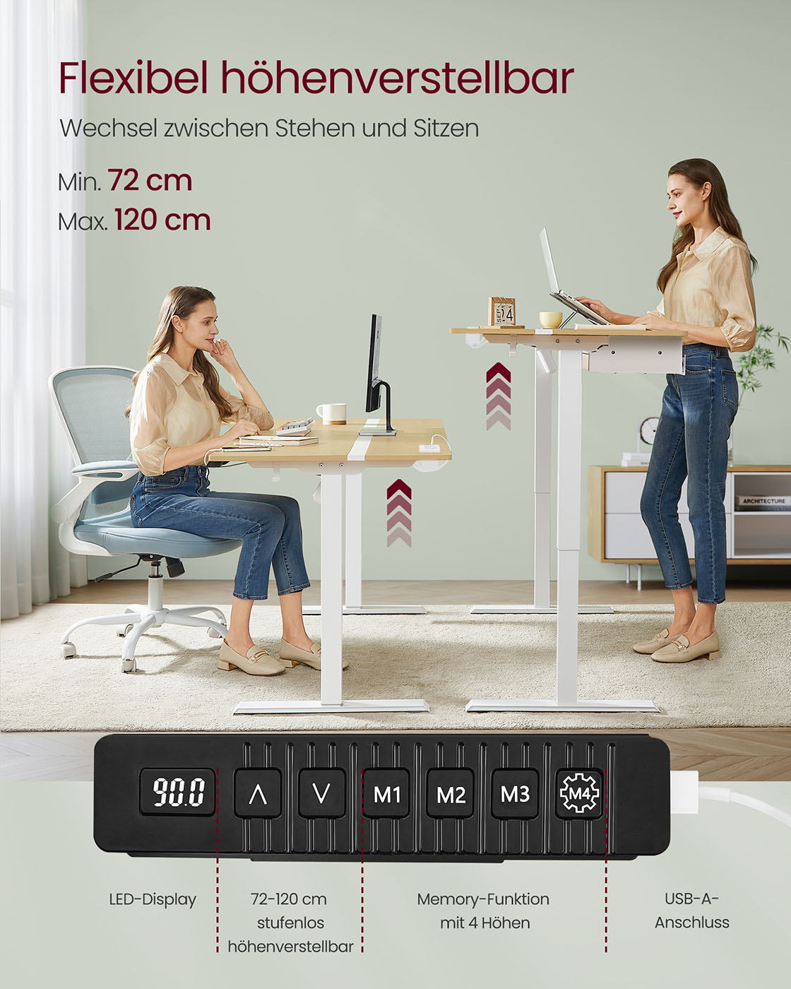 St?rrelse: 60 x 120 x (72-120) cm (D x B x H)