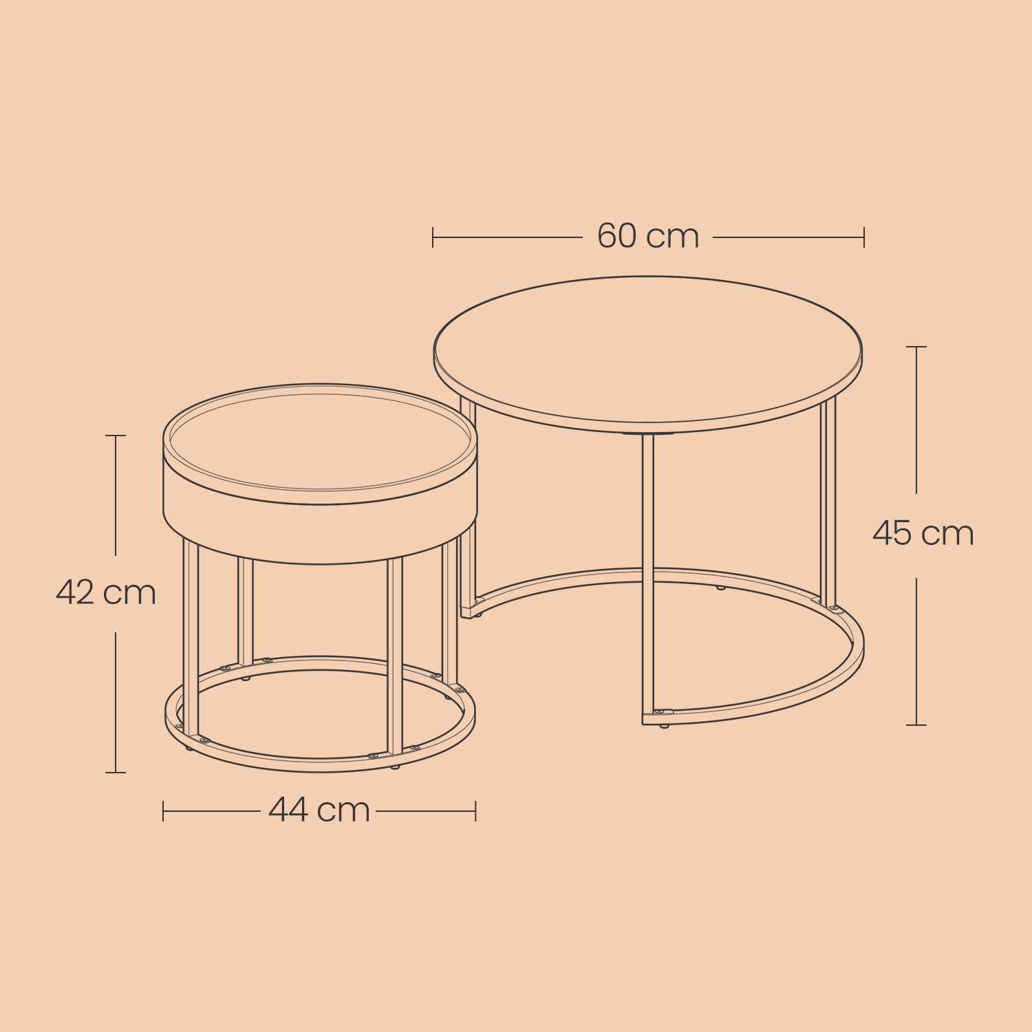 St?rrelse p? det store bord: 60 x 60 x 45 cm (D x B x H)