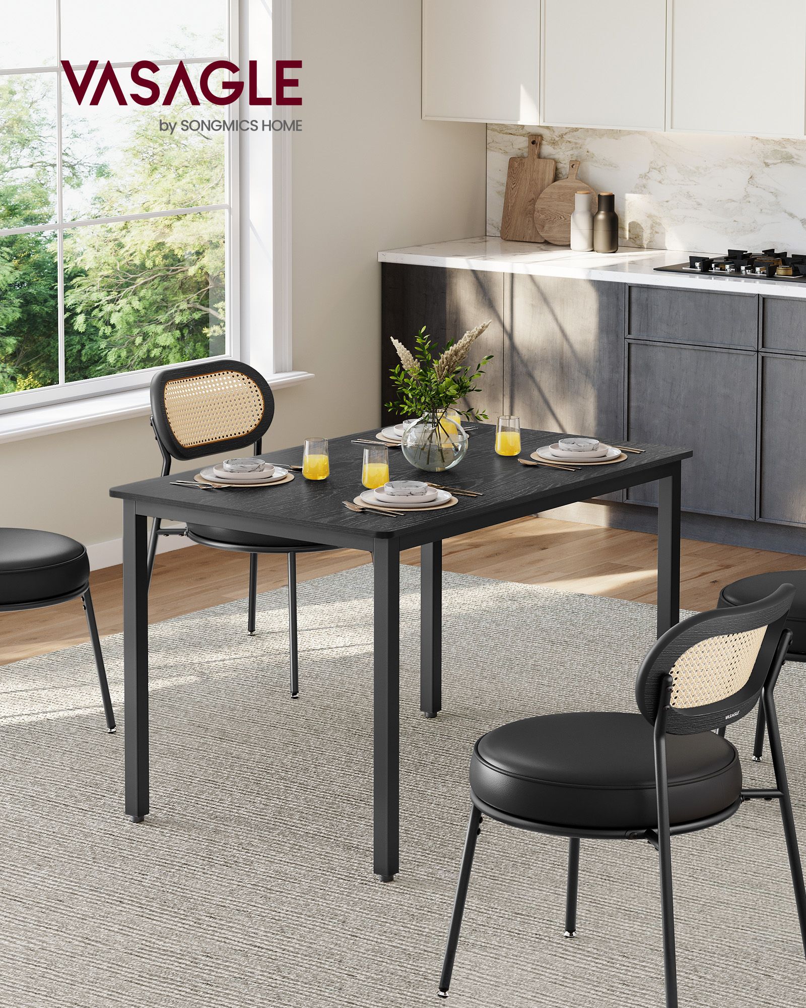 VASAGLE spisebord 70 x 110 x 77 cm ibenholt-sort-mattsort