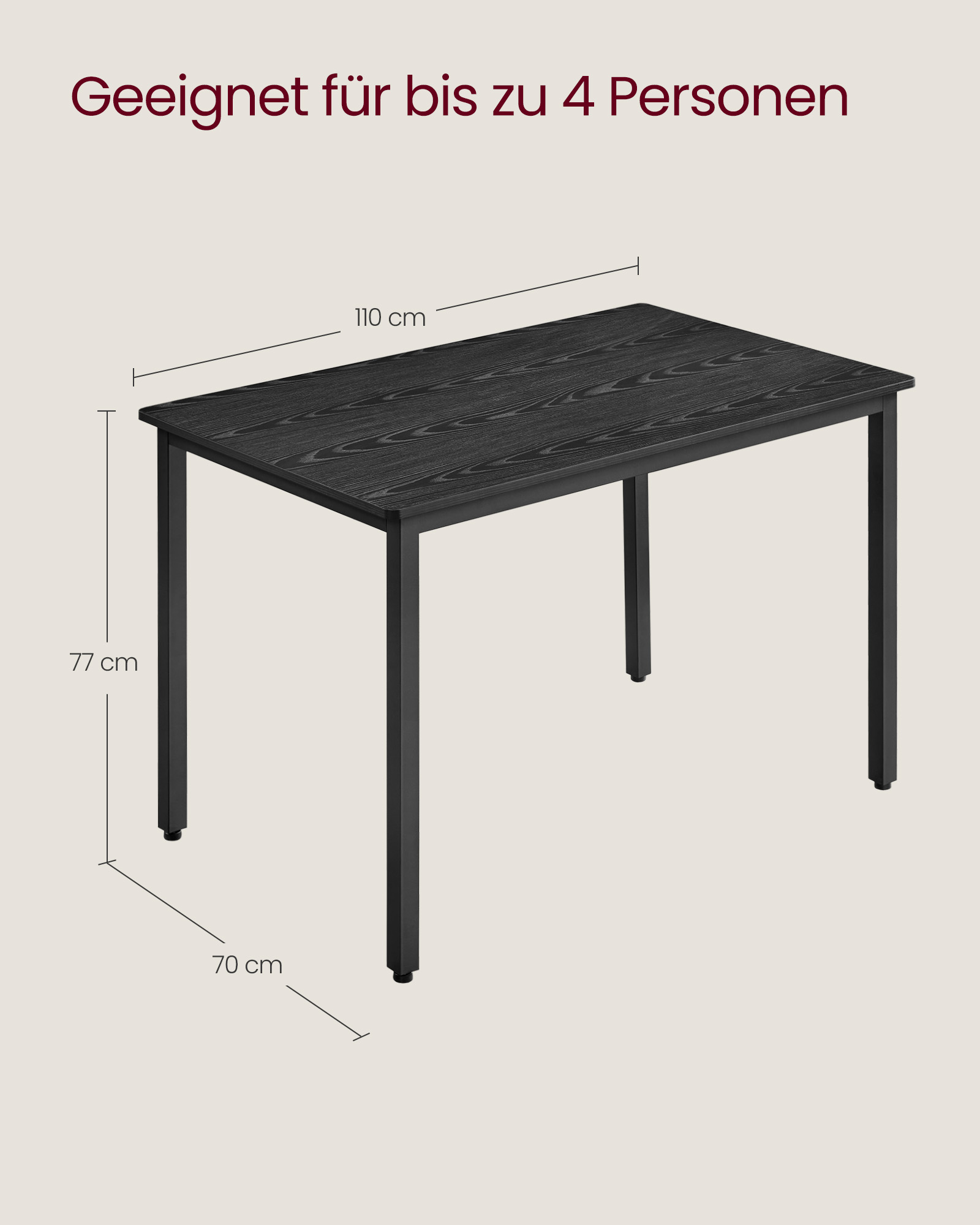 Vær den første til at anmelde “VASAGLE spisebord 70 x 110 x 77 cm ibenholt-sort-mattsort”