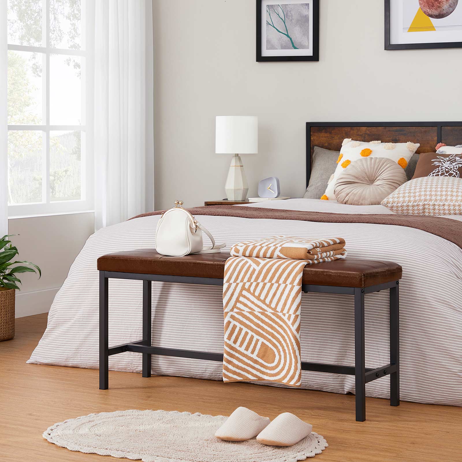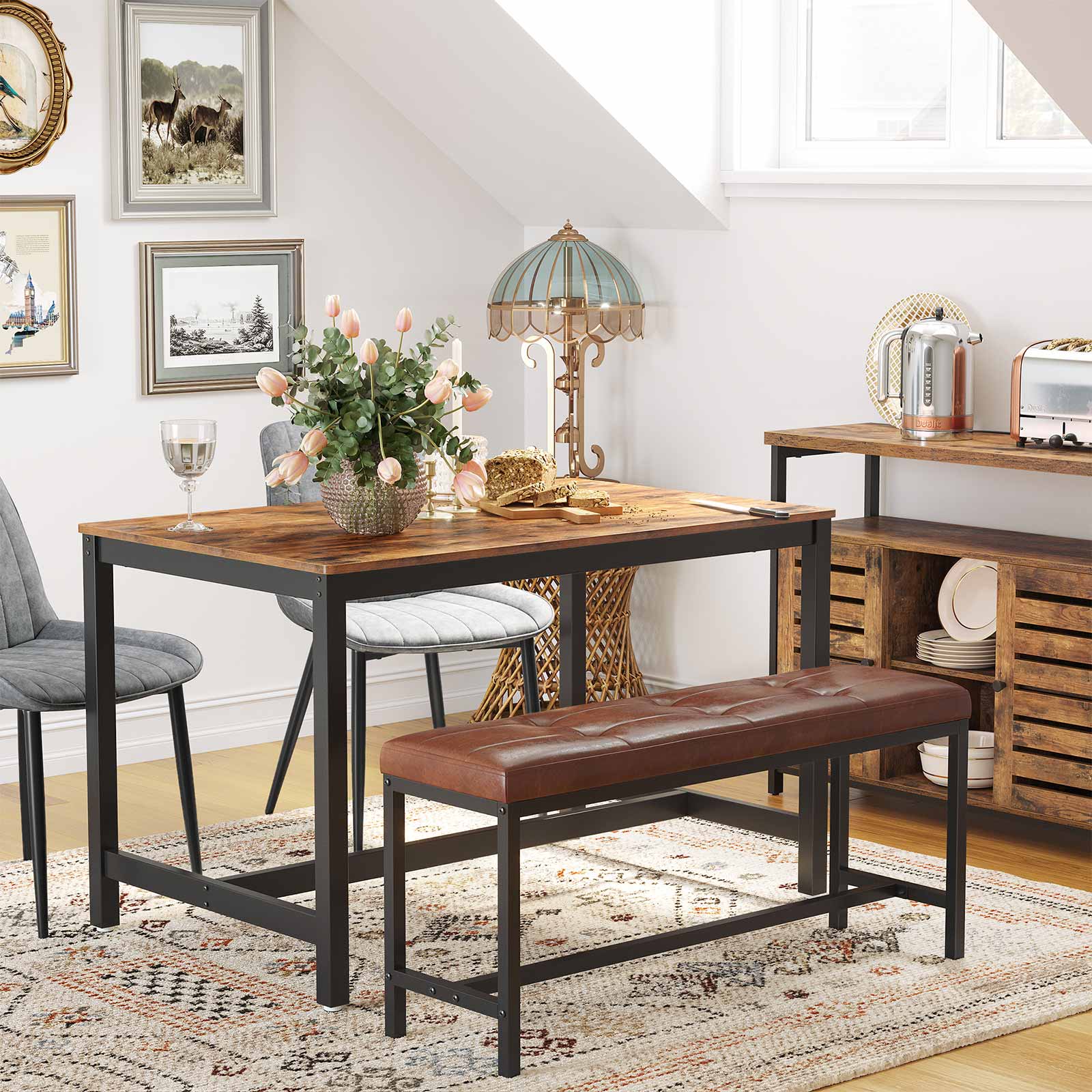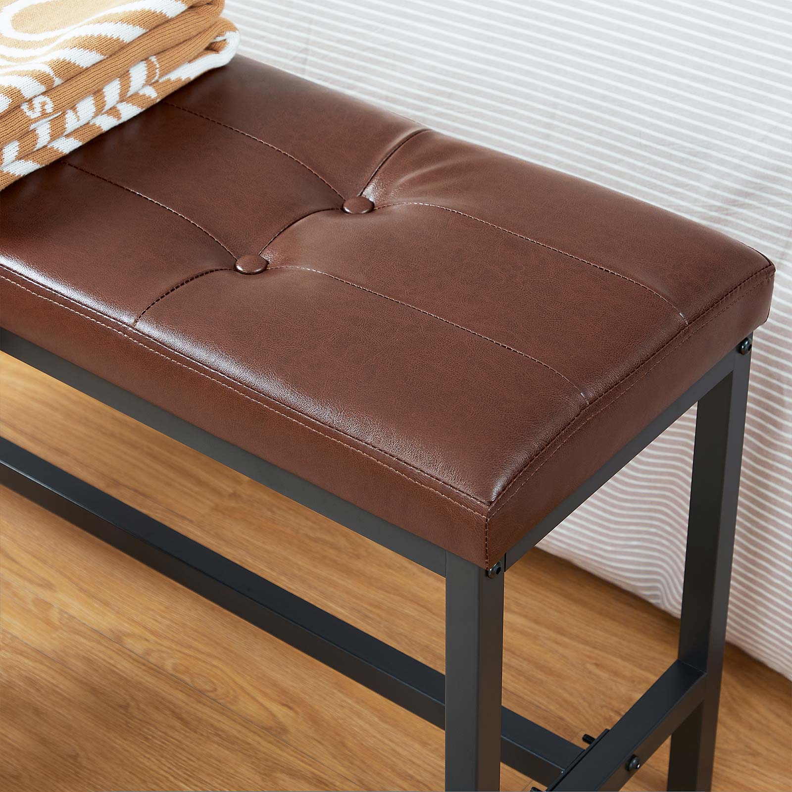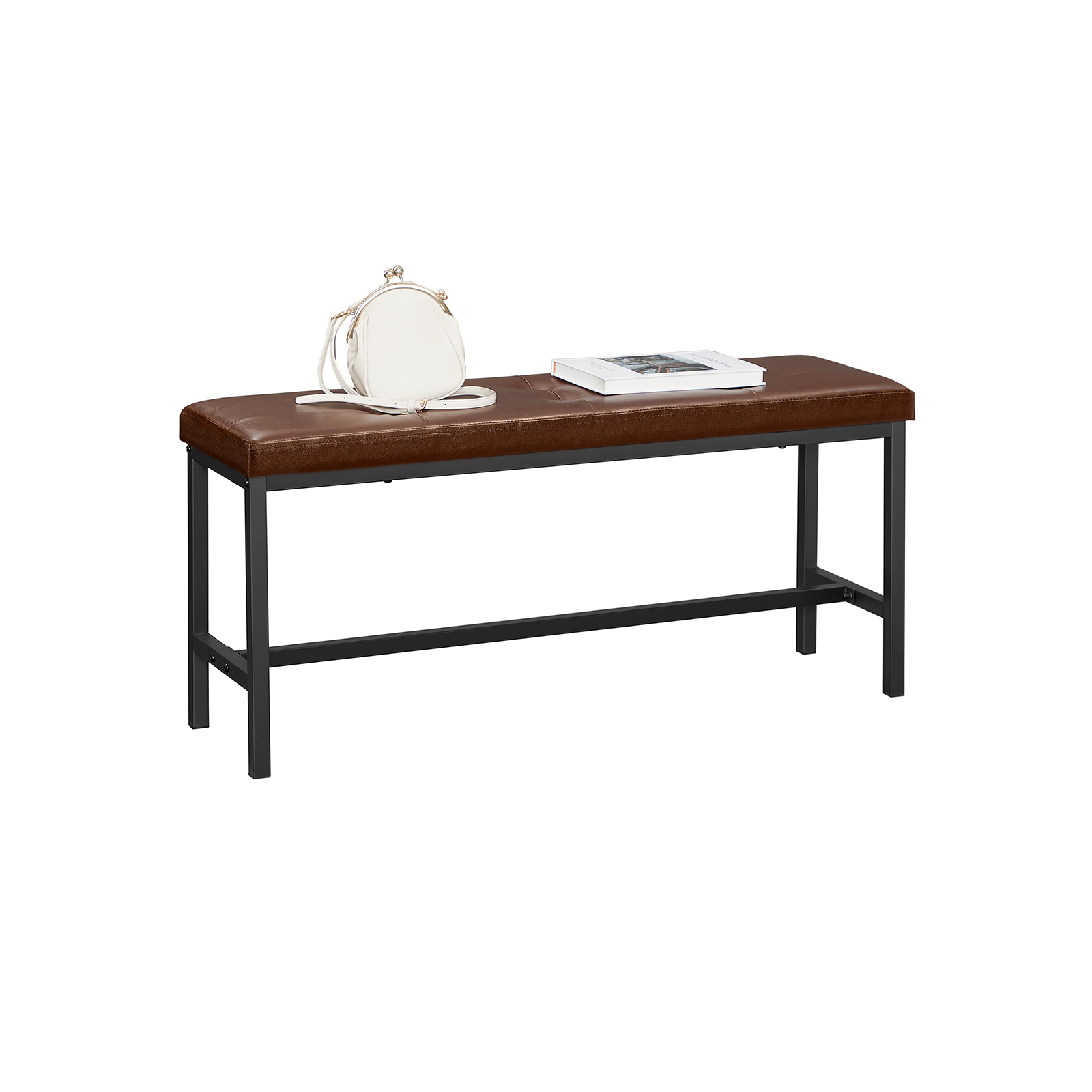Produktdetaljer: – Farve: Brun-sort – Materiale: PU, skum, sp?nplade, st?l – St?rrelse: 108 x 32,5 x 48 cm (L x B x H) – V?gt: 6,8 kg – Maks. statisk belastning: 100 kg Leveringsomfang:- 1 x spisebordsb?nk – 1 x tilbeh?rspakke – 1 x vejledning (DE, EN, ES, FR, IT) VASAGLE Bem?rkninger: – Af sikkerhedsm?ssige ?rsager er det ikke tilladt for b?rn at klatre p? eller lege med produktet. – Den maksimale statiske belastning af overfladen er 100 kg. Overskrid ikke denne maksimale v?gt.