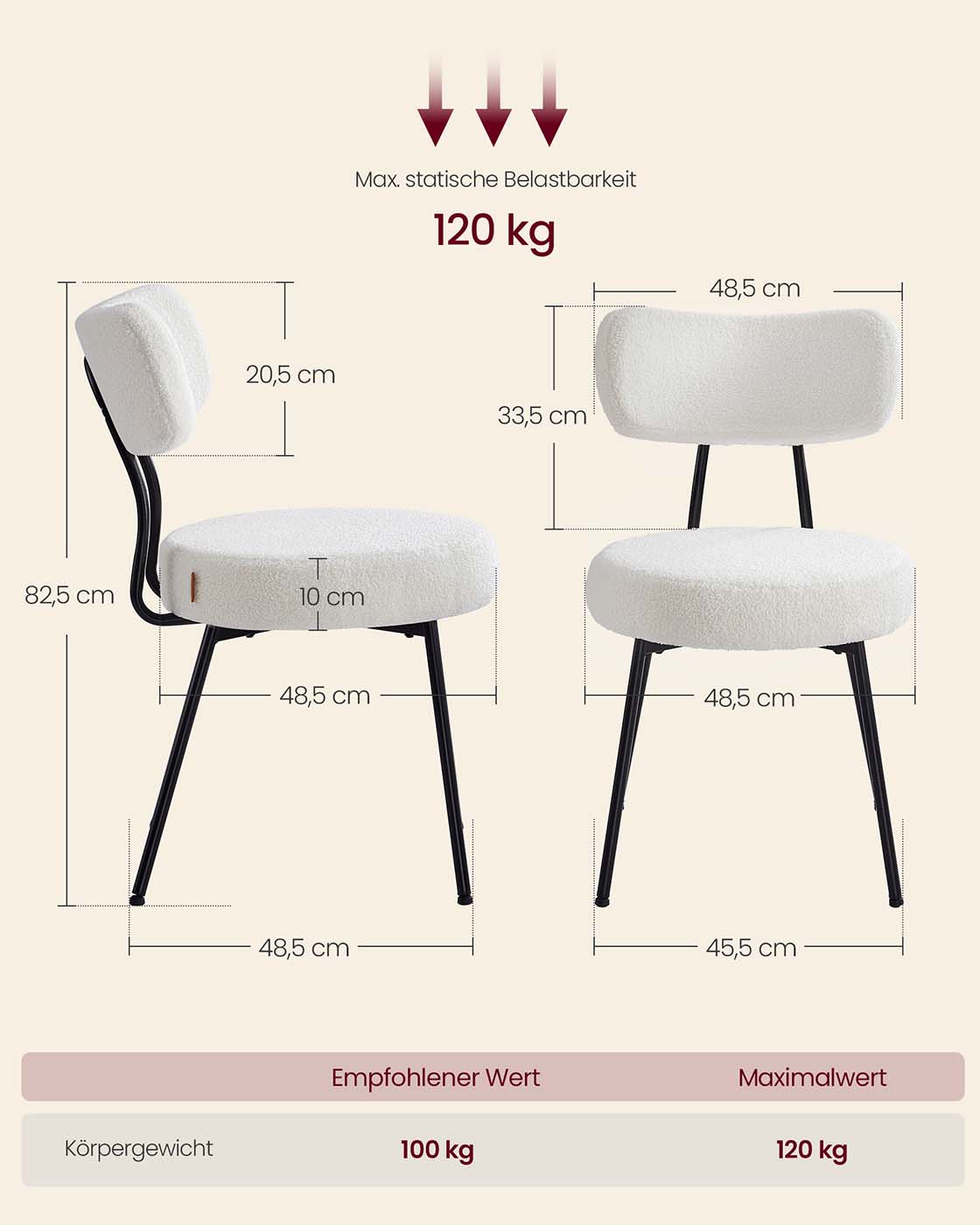 Vær den første til at anmelde “VASAGLE spisestuestol, s?t med 2 stk. med fleeceoverflade, cremehvid”