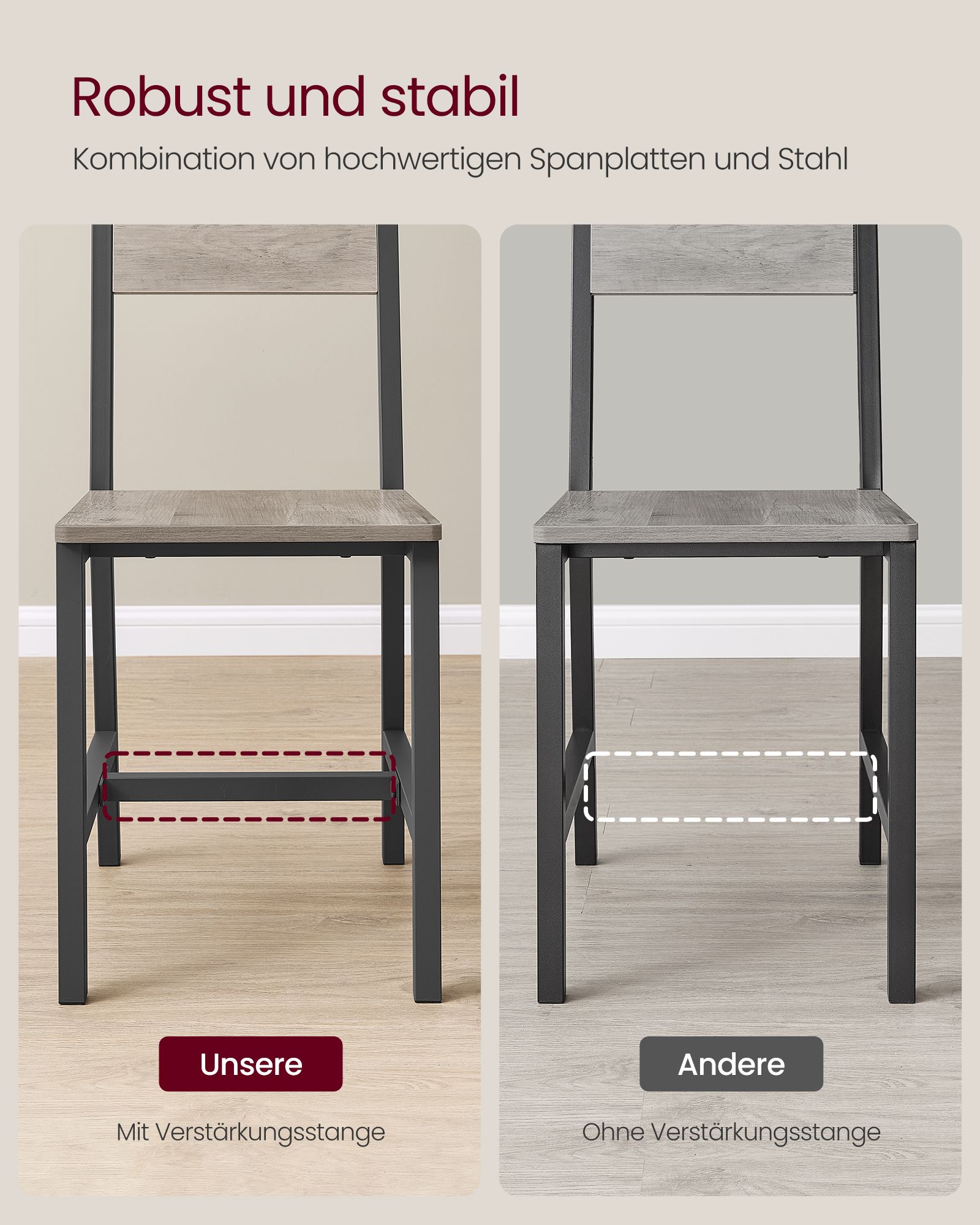 Vær den første til at anmelde “VASAGLE spisestuestole, 2 stk. s?t, gr?meleret-matgr?”