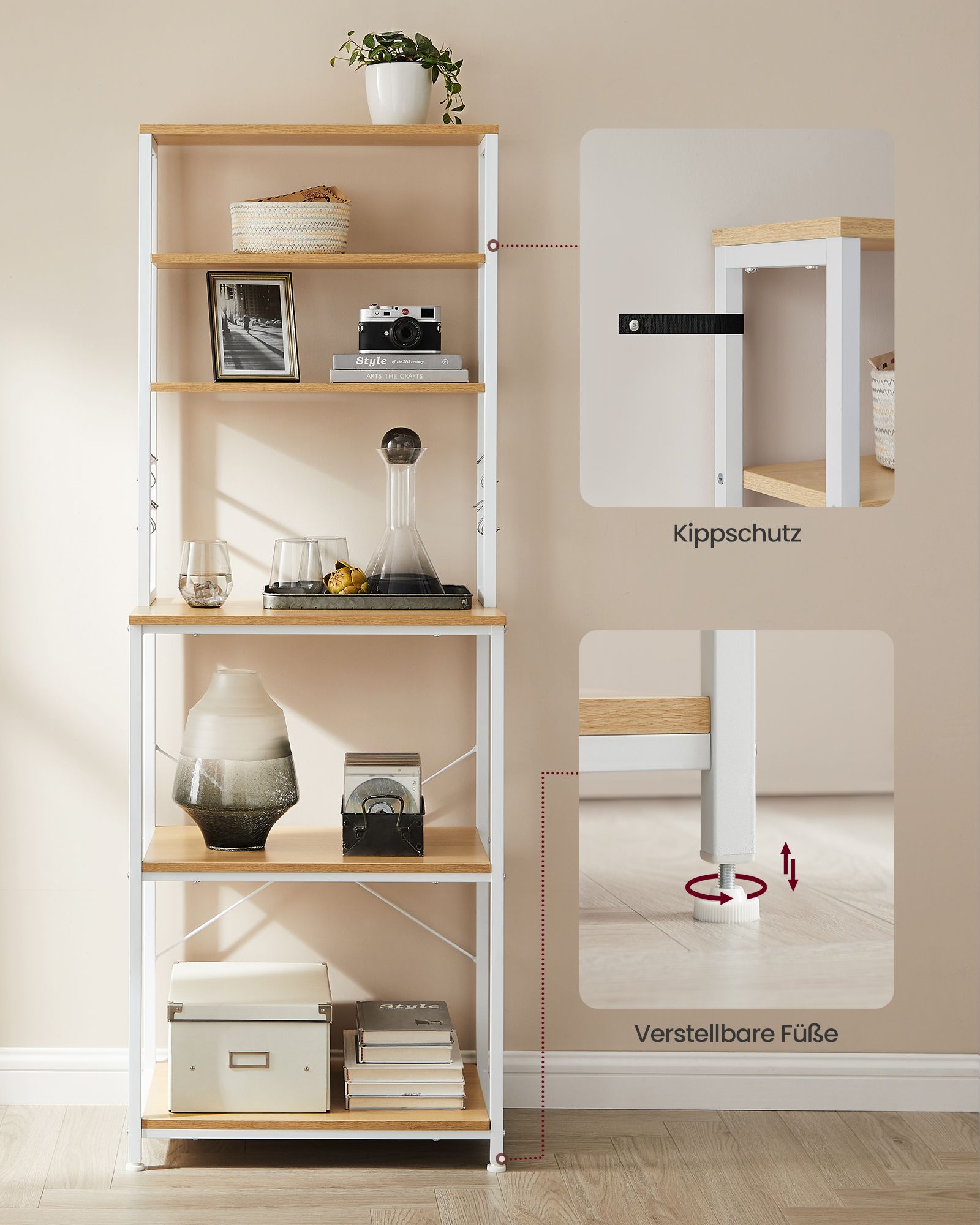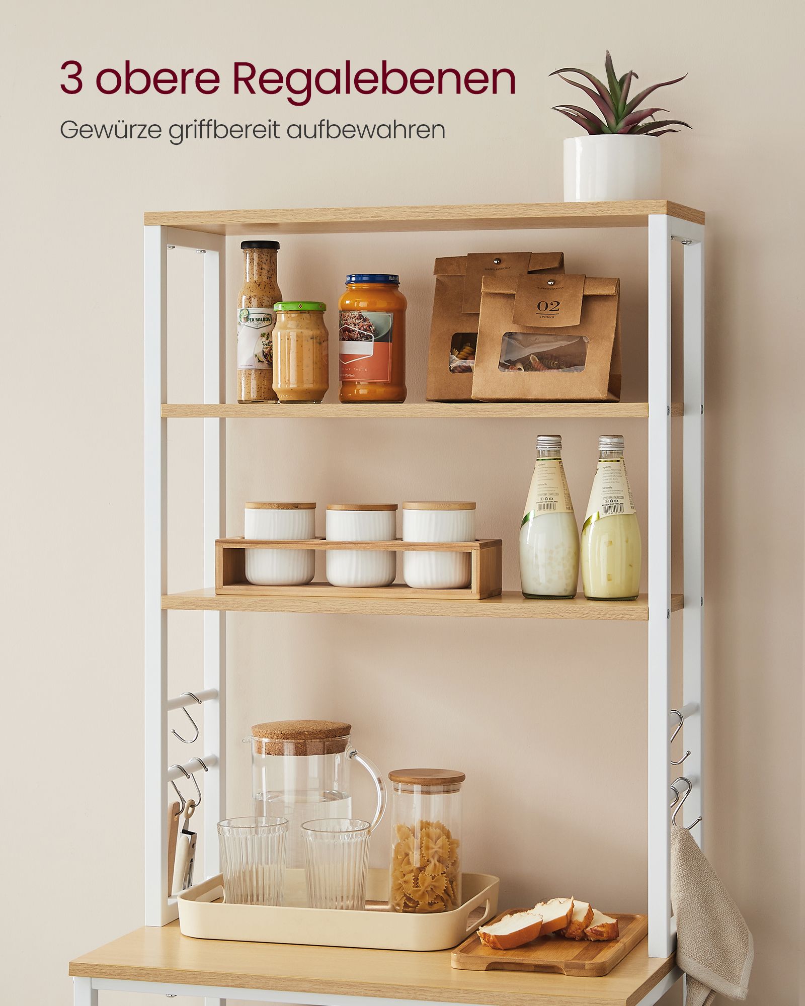 VASAGLE stativreol til k?kken St?lramme i eg-farvet-hvid