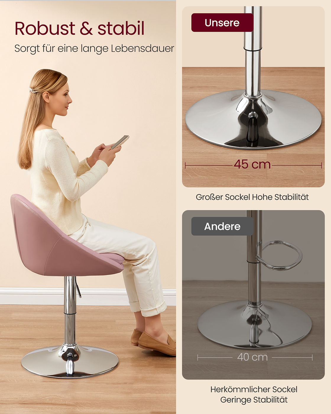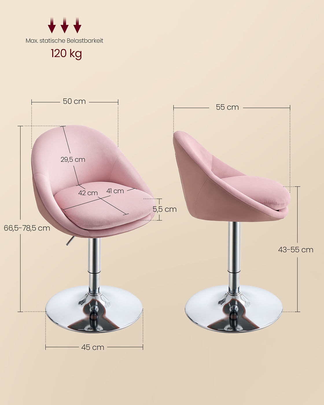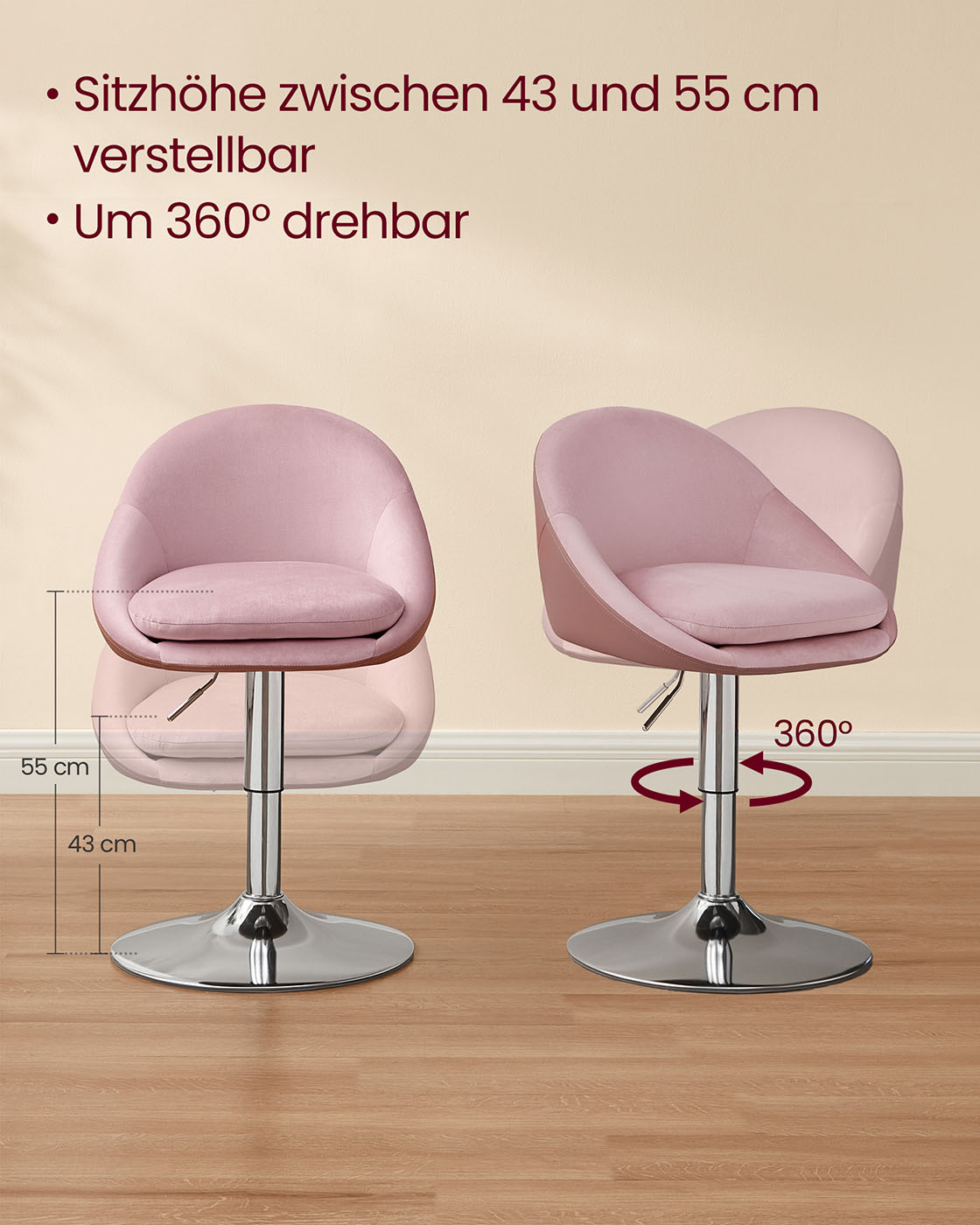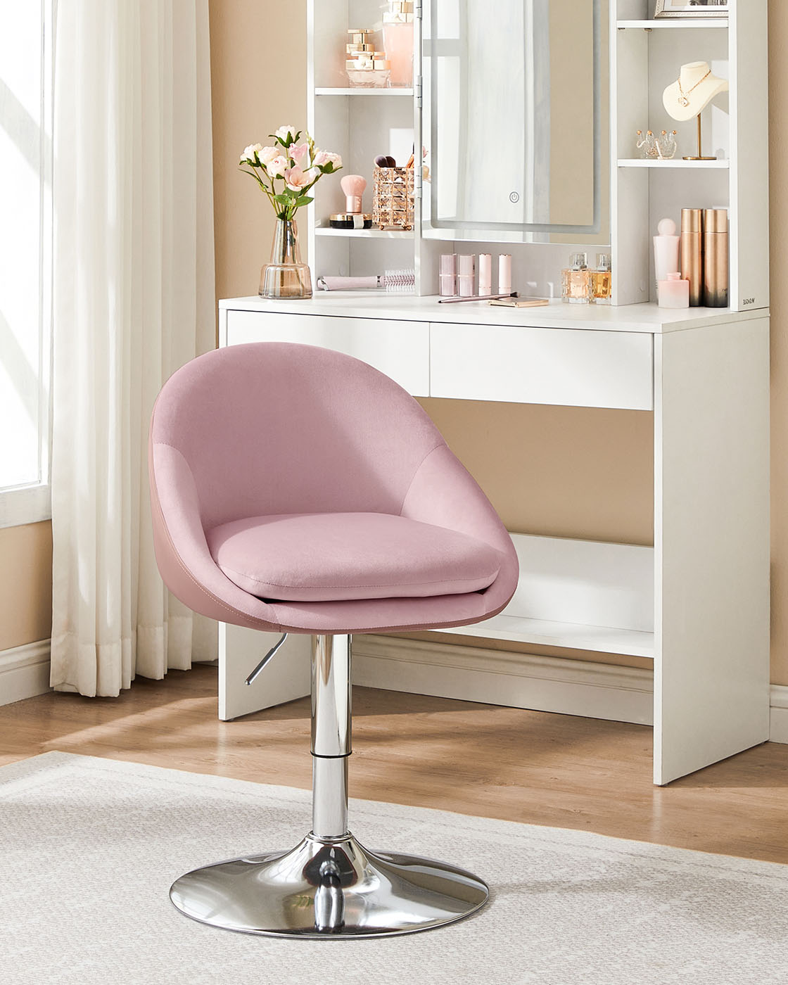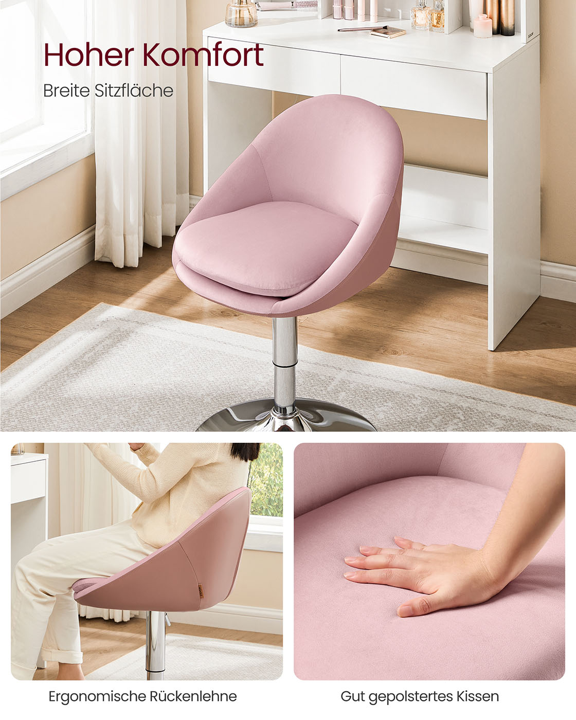 VASAGLE Justerbar stol, makeupstol, kontorstol, drejelig, barstol med rygl?n og fod, st?l, til bar, kontor, makeupbord, spisestue, pastellrosa LJB100R01