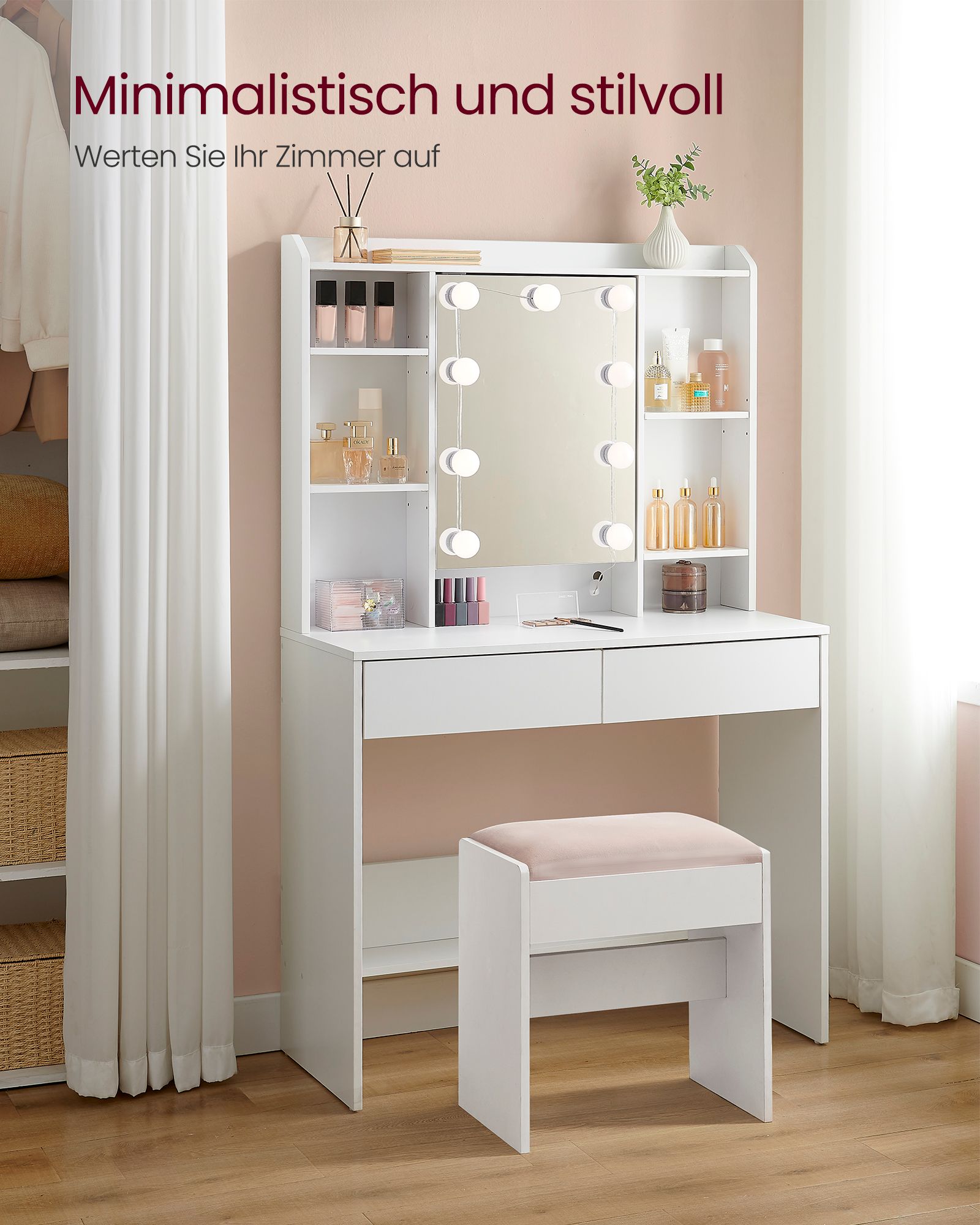 VASAGLE toiletbord med spejl og skuffer, moderne