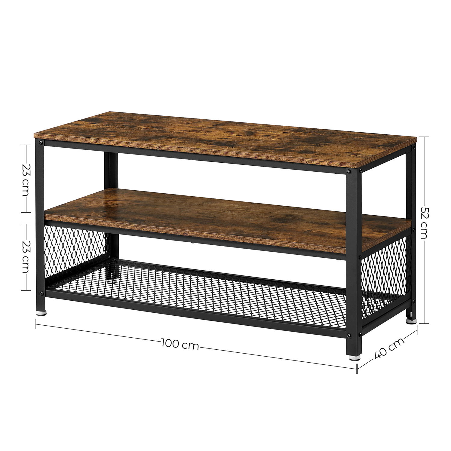 Med det trendy TV-skab i vintage-stil fra vores nye m?rke “VASAGLE” kan du skabe pr?cis det, designerne havde i tankerne: En middelhavsatmosf?re midt i dit eget hjem. Se ogs? andre m?bler fra vores trendy vintage-serie, og kombiner f.eks. TV-bordet med vores reol i samme stil. Et yndlingsm?bel for seriejunkier Brug denne funktionelle tv-konsol til din fladsk?rm og se dine yndlingsserier i en endel?s loop. Hvilken tv-serie kan du ikke f? nok af i ?jeblikket? Fort?l os det i kommentarerne og post et foto af dit nye stuebord. Til din DVD-samling og spilkonsol I den nederste del af tv-skabet er der 2 stabile hylder, hvor du kan opbevare DVD’er, en spilkonsol eller din fjernbetjening. I de 3 udtagelige og foldbare tekstilskuffer kan du desuden opbevare tv-kabler eller brugsanvisninger p? en p?n m?de. Produktdetaljer: – Farve: Vintage, gr? – Materiale: Sp?nplade, st?lstel, fleece – Samlet st?rrelse: 100 x 40 x 52 cm (L x B x H) – St?rrelse bordplade: 99 x 39 cm (L x B) – V?gt: 16,4 kg – B?reevne: 30 kg Leveringsomfang: – 1 x tv-bord – 1 x tilbeh?rspose – 1 x vejledning (DE, EN, FR, ES, IT) VASAGLE Bem?rkninger: – Placer venligst produktet p? et t?rt sted. – Placer venligst ikke tunge genstande p? m?blet.
