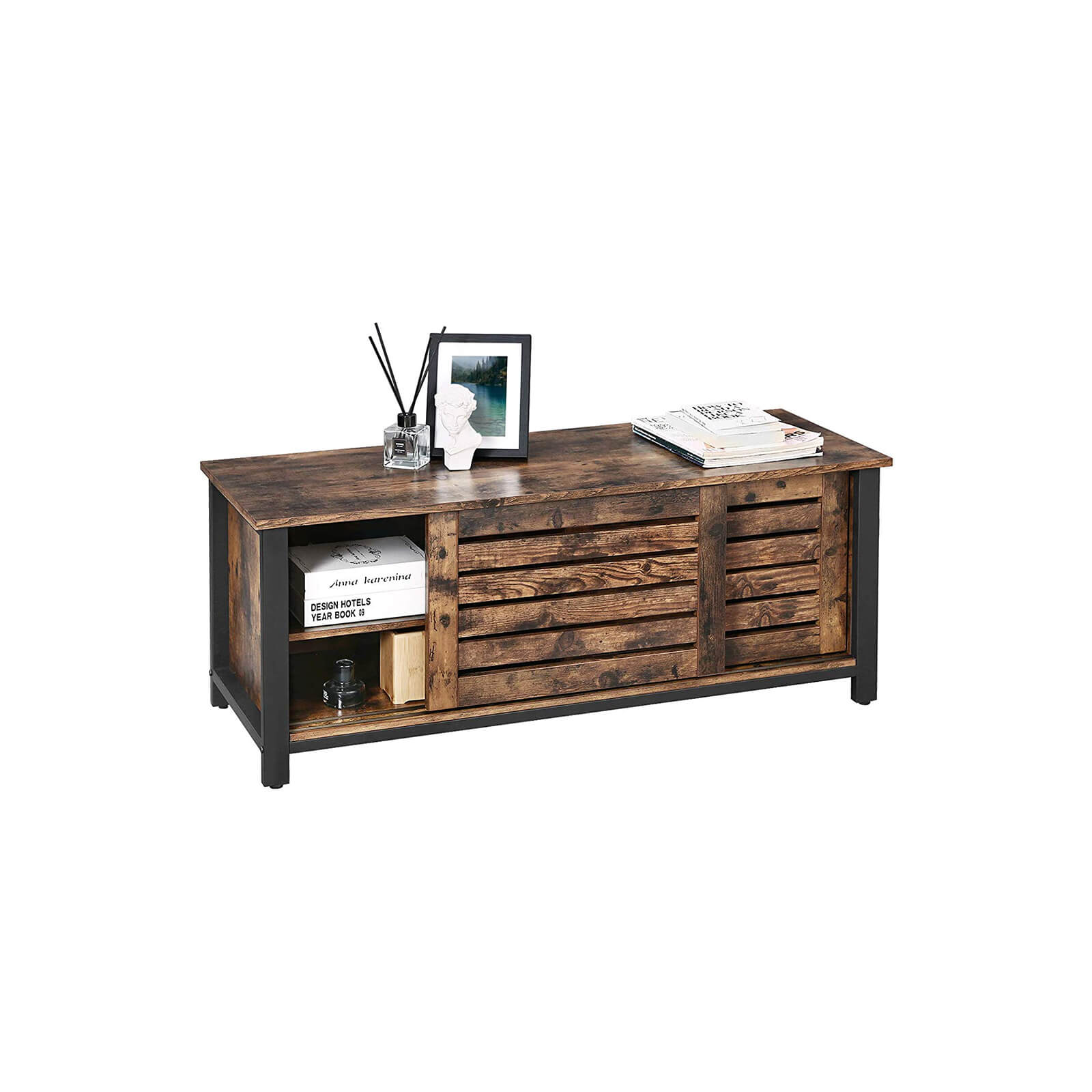 Lidt vintage her, lidt industrielt design der Stilen p? dette tv-skab kan beskrives som en komposition af et jernstel, der har det trendy industrielle look, og pr?cist bearbejdede vintageplader af tr?materiale. De us?dvanlige lameld?re, der v?kker nysgerrigheden om, hvad der gemmer sig bag dem, giver desuden et helt s?rligt pr?g. Det skaber et ensartet billede og et m?bel, der er robust, flot og funktionelt p? samme tid. Klar til stor brug M?blet, der m?ler 110 x 40 x 45 cm (L x B x H) og har en b?reevne p? 40 kg, er velegnet til f?lgende anvendelsesomr?der: – Stue: Lowboardet er naturligvis forudbestemt til brug som stilfuldt tv-skab. – Sovev?relse: Brug m?blet ogs? i dit sovev?relse som tv-bord, eller opbevar senget?j og sommert?j, som du ikke har brug for om vinteren, i det. – Entr?: Det alsidige m?bel kan ogs? bruges som skoskab i entr?en. Du kan ogs? stille en buket roser og fotorammer p? den glatte vintageoverflade. Produktdetaljer: – Farve: Vintagebrun-sort – Materiale: Sp?nplade, st?l – St?rrelse: 110 x 40 x 45 cm (L x B x H) – V?gt: 21,8 kg – Maks. belastbarhed af overfladen: 40 kg – Maks. belastbarhed for hylderne indeni: 15 kg Leveringsomfang: – 1 x tv-skab – 1 x beholder med tilbeh?r (inklusive monteringsv?rkt?j) – 1 x vejledning (DE, EN, FR, ES, IT) VASAGLE Bem?rkninger: – Uds?t ikke produktet for direkte sollys.