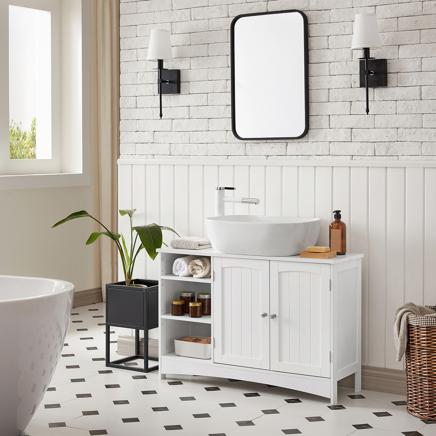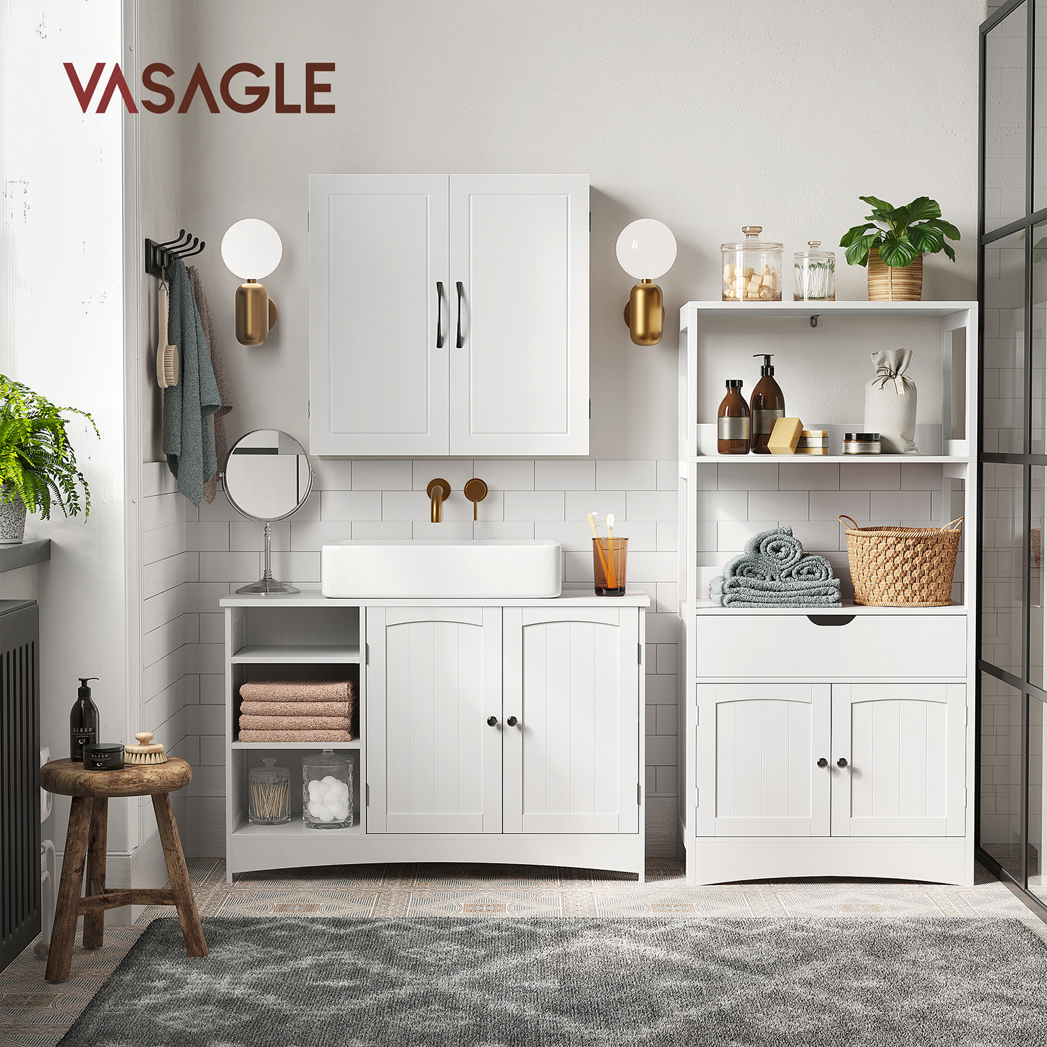VASAGLE Vaskeskab, underskab, badev?relseskab, ekstra langt, 90 x 30 x 60 cm, 2 d?re, badev?relseskab, ?bne rum, h?jdejusterbare hylder, hvid BBC410P31