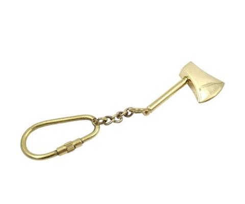Aksiksen avaimenperä – KRT27 Aksiksen avaimenperä sopii hyvin lahjaksi metsuriin tai palomiehelle. Avaimenperä on valmistettu kestävästä messingistä. Se kiinnitetään avaimiin kierrettävällä karabiinikoukulla. Tiedot: Materiaali: messinkiVäri: messinkiKarabiinikoukku, jolla voi kiinnittää esimerkiksi avaimetMitat: 5,7 x 2,3 cm. Kokonaispituus: 11 cm