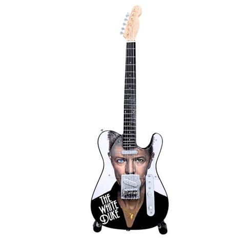 David Bowien inspiroima minikitarra – MGT-8976  Keräilykohde, minikitarra, joka on saanut inspiraationsa musiikin, muodin ja populaarikulttuurin ikonista David Bowien tyylistä. Valmistettu mahonki-puusta mittakaavassa 1:4, mukana muovinen ja metallinen teline kitaran asettamista varten. Tämä on täydellinen lahjaidea David Bowie -faneille ja klassisen rockin ystäville. David Bowie on yksi 1900-luvun vaikutusvaltaisimmista hahmoista – kokonaisvaltainen taiteilija, joka tunnetaan jatkuvasta kokeilustaan äänen, kuvan ja konventioiden kanssa. Hänen tuotantonsa kattoi glam rockin, elektronisen musiikin, soulin ja art rockin. MGT-8976-kitara on saanut inspiraationsa hänen ainutlaatuisesta estetiikastaan ja on kunnianosoitus tälle poikkeukselliselle musiikilliselle persoonallisuudelle.  Tuotetiedot: Mitat: korkeus 27,5 cm x leveys 9 cm x syvyys 0,8 cm Mittakaava: 1:4 Materiaali: mahonki Pylväs mukana Kitara ei soi – se on koriste-esine Keräilykohde Ihanteellinen lahja: David Bowie -faneille Mini-instrumenttien keräilijöille Muusikoille ja rockin ystäville