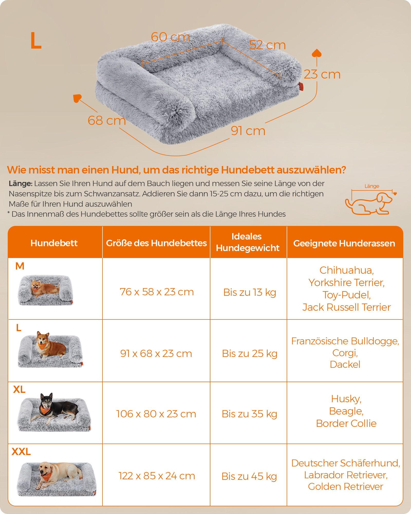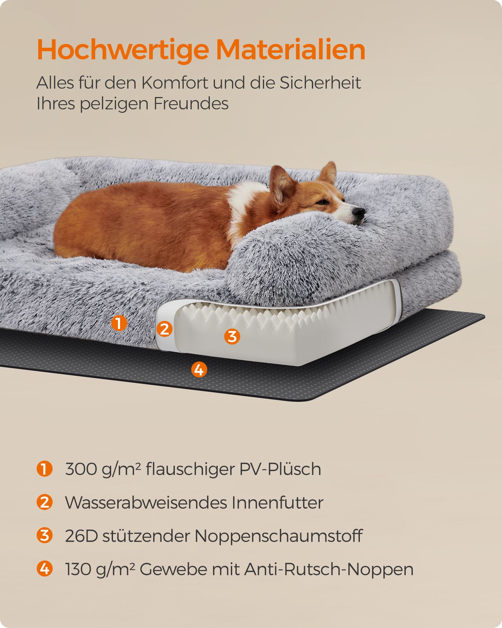 Feandrea FluffyHug koiranpeti, koiran tyyny koko XL, koiran matto keskikokoisille ja suurille koirille, koiran sohva noppamuovivaahtomuovi, irrotettava ja pestävä päällinen