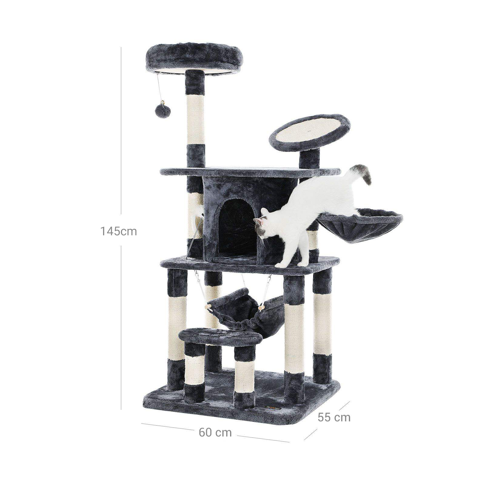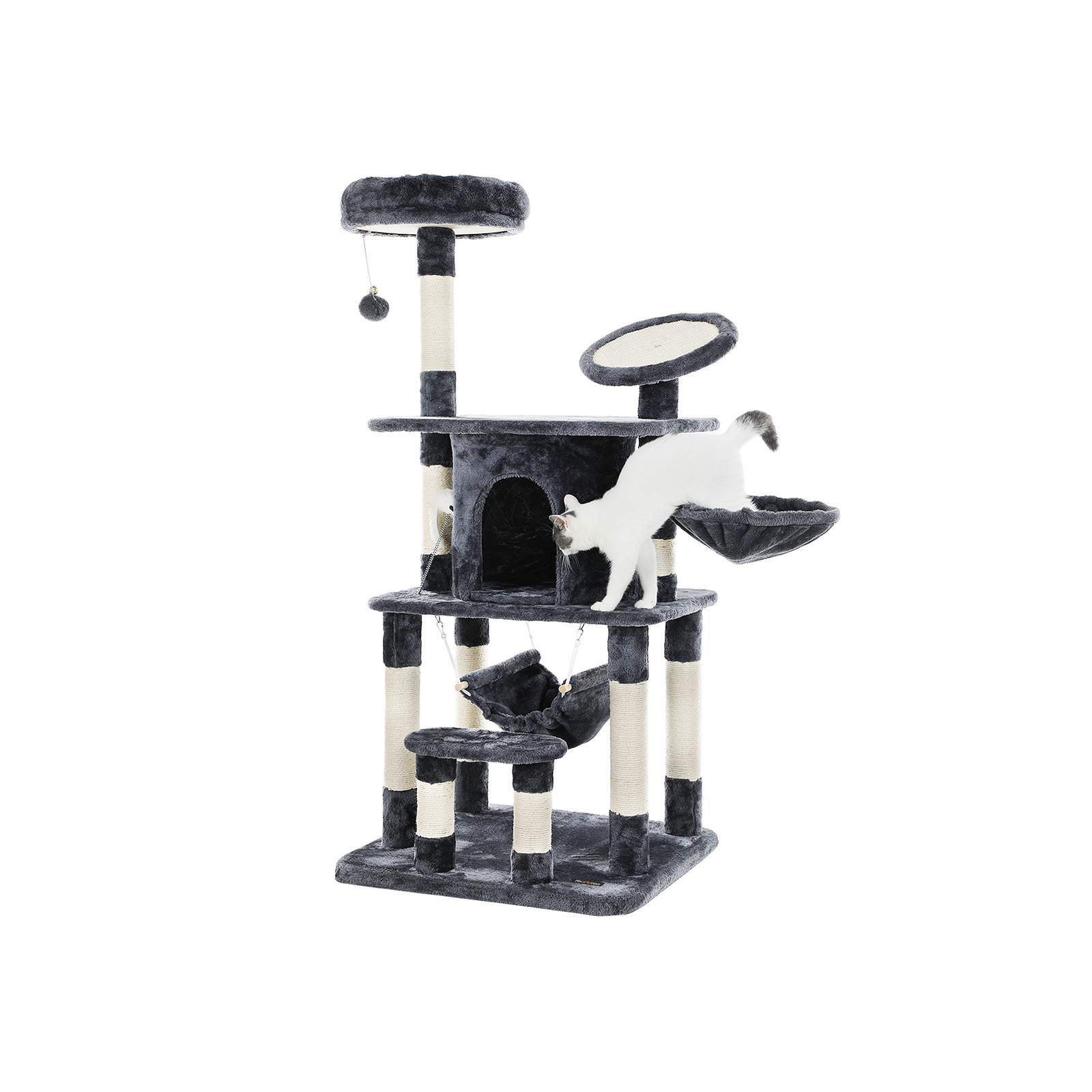 Feandrea Vakaa raapimispuu raapimislavalla, 145 cm, kestävä kiipeilymetsä suurella leikkialueella, harmaa PCT25G