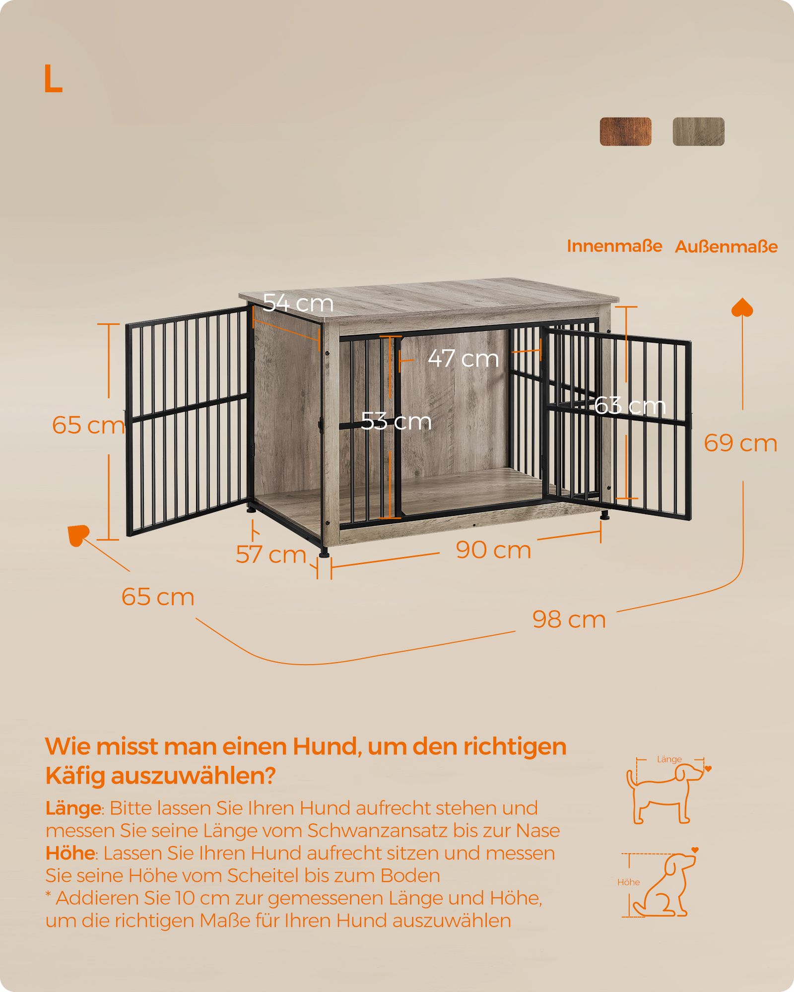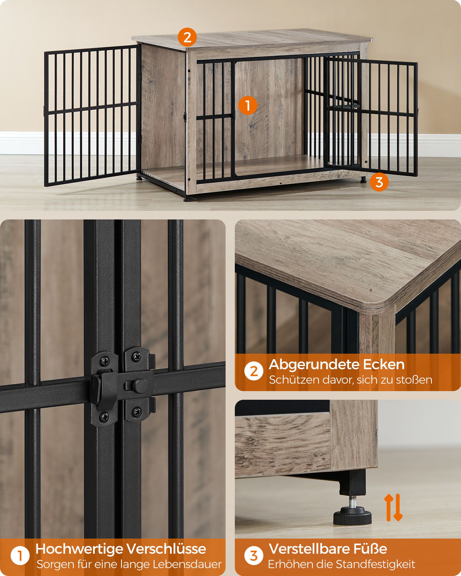 Feandrea koirankoppi, sivupöytä, koirankoppi, moderni koirankoppi sisätiloihin koirille, joiden paino on enintään 32 kg, erittäin kestävä, suljettu pohja, koirankoppi 2 ovea