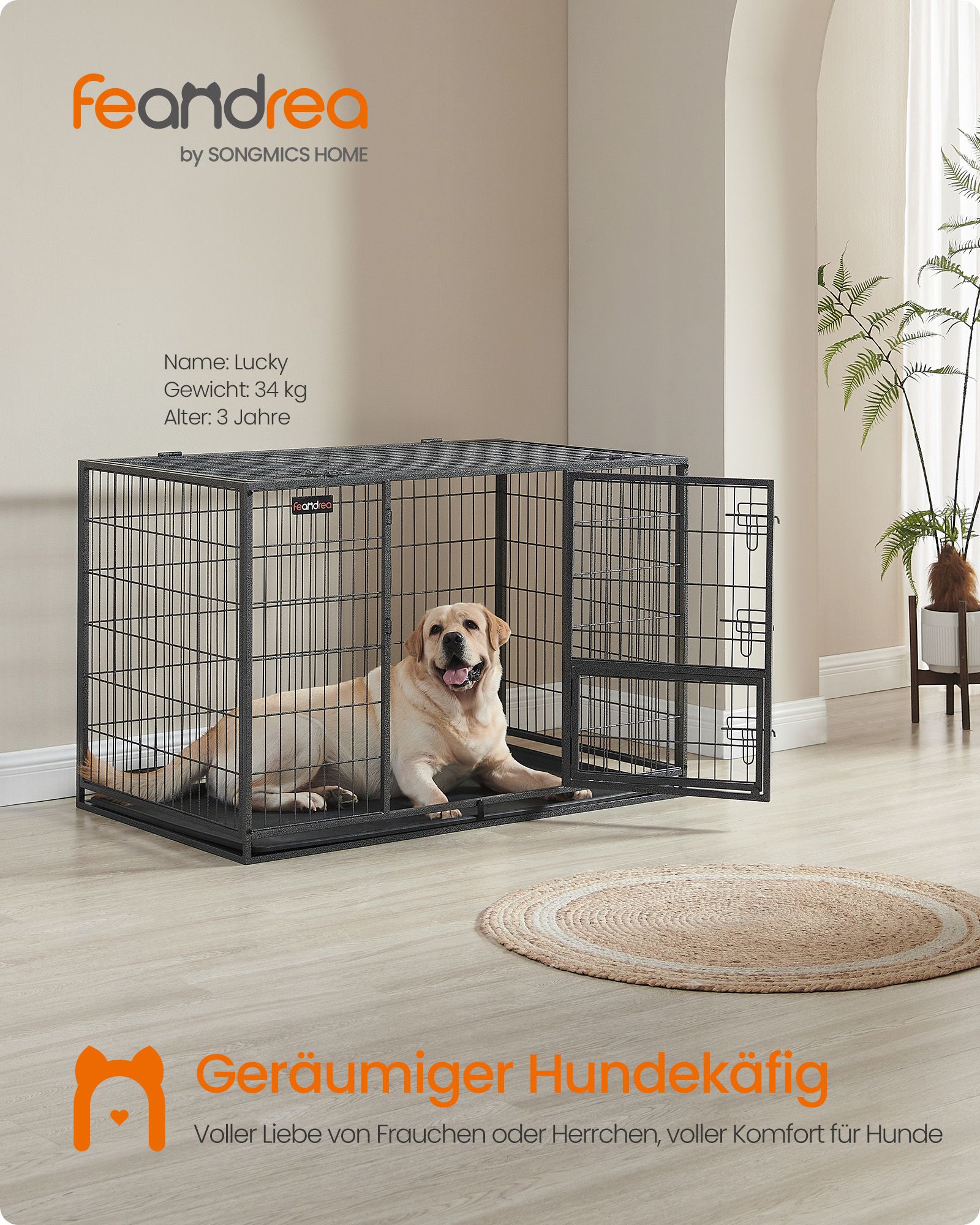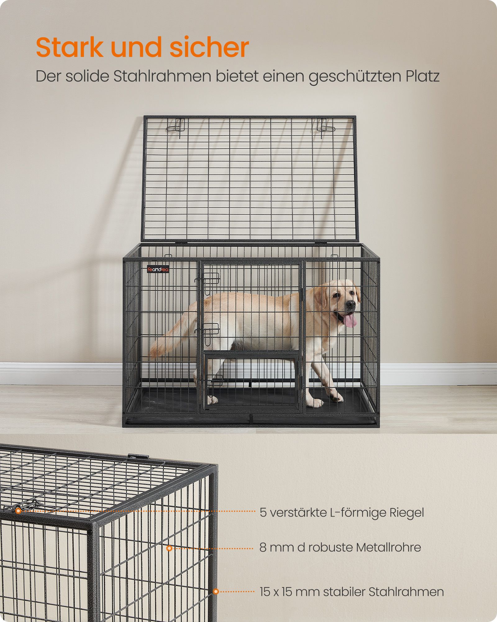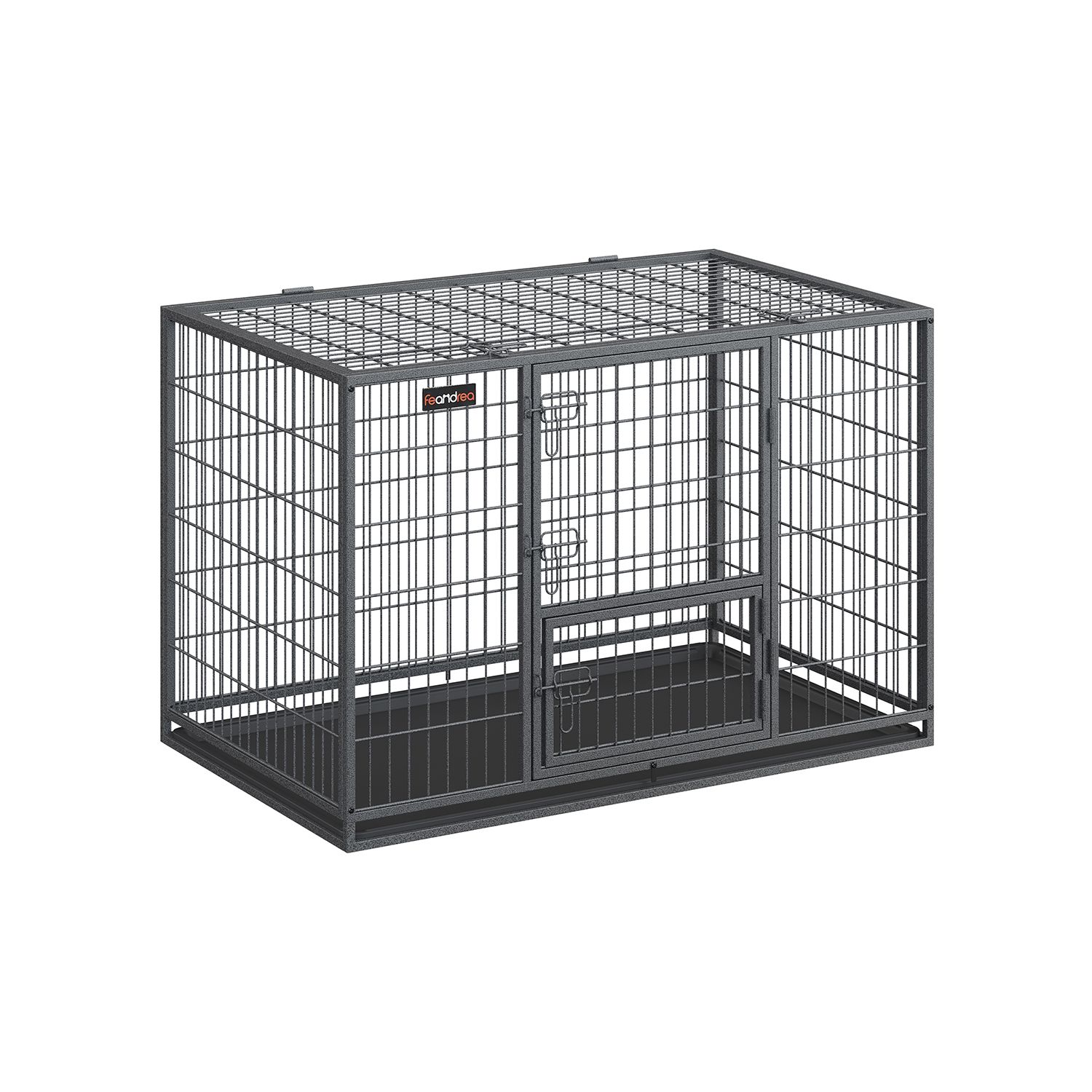 Feandrea koiran häkki, erittäin kestävä, ritilälaatikko, lemmikkieläinten häkki, 107 x 70 x 74,9 cm, suurille ja keskikokoisille koirille, turvallinen, 2 irrotettavaa ovea, helppo puhdistaa, pentujen ulkoilutusalue, XL, musta