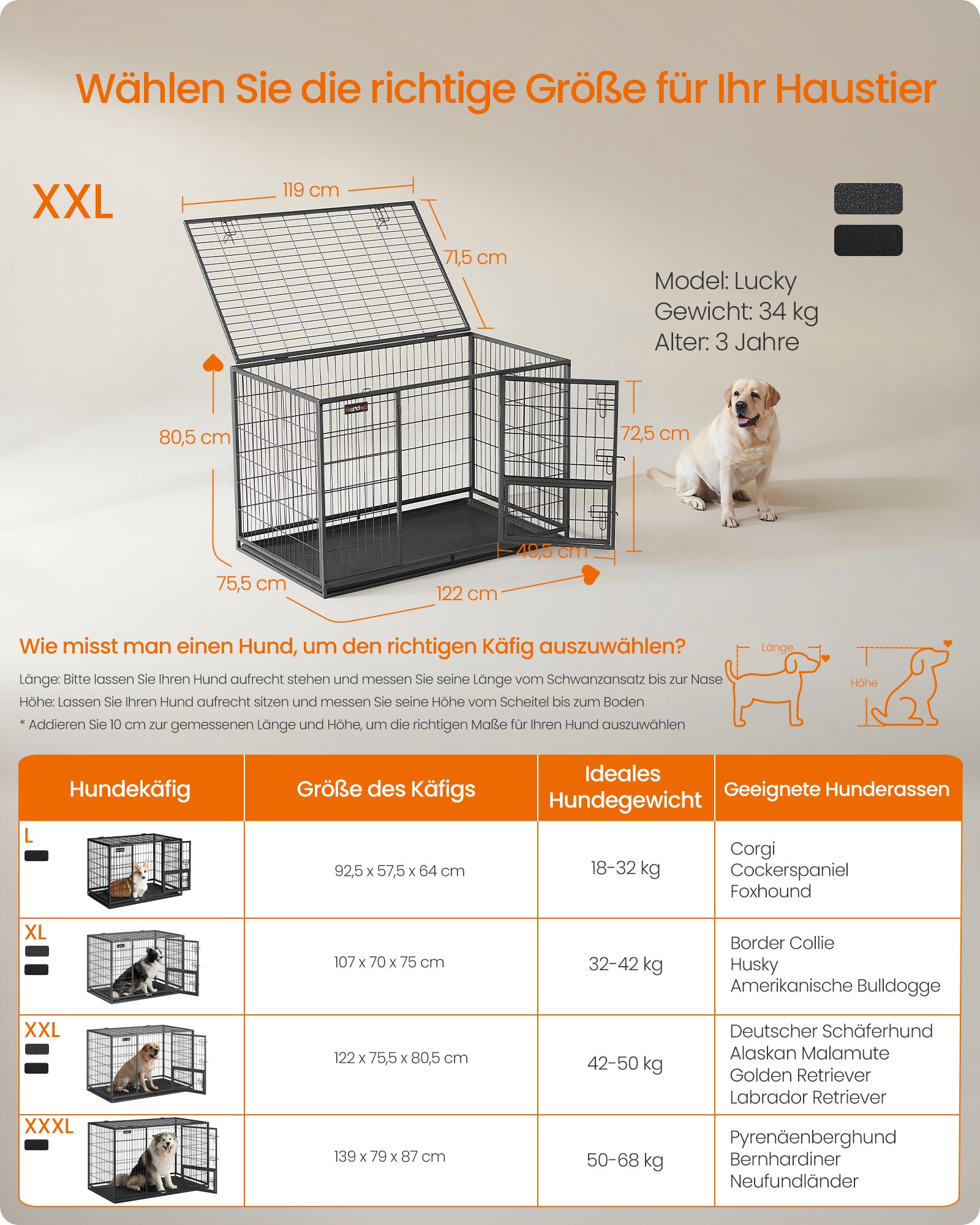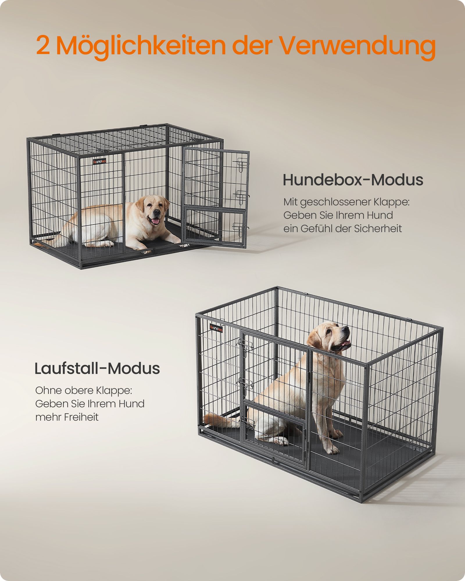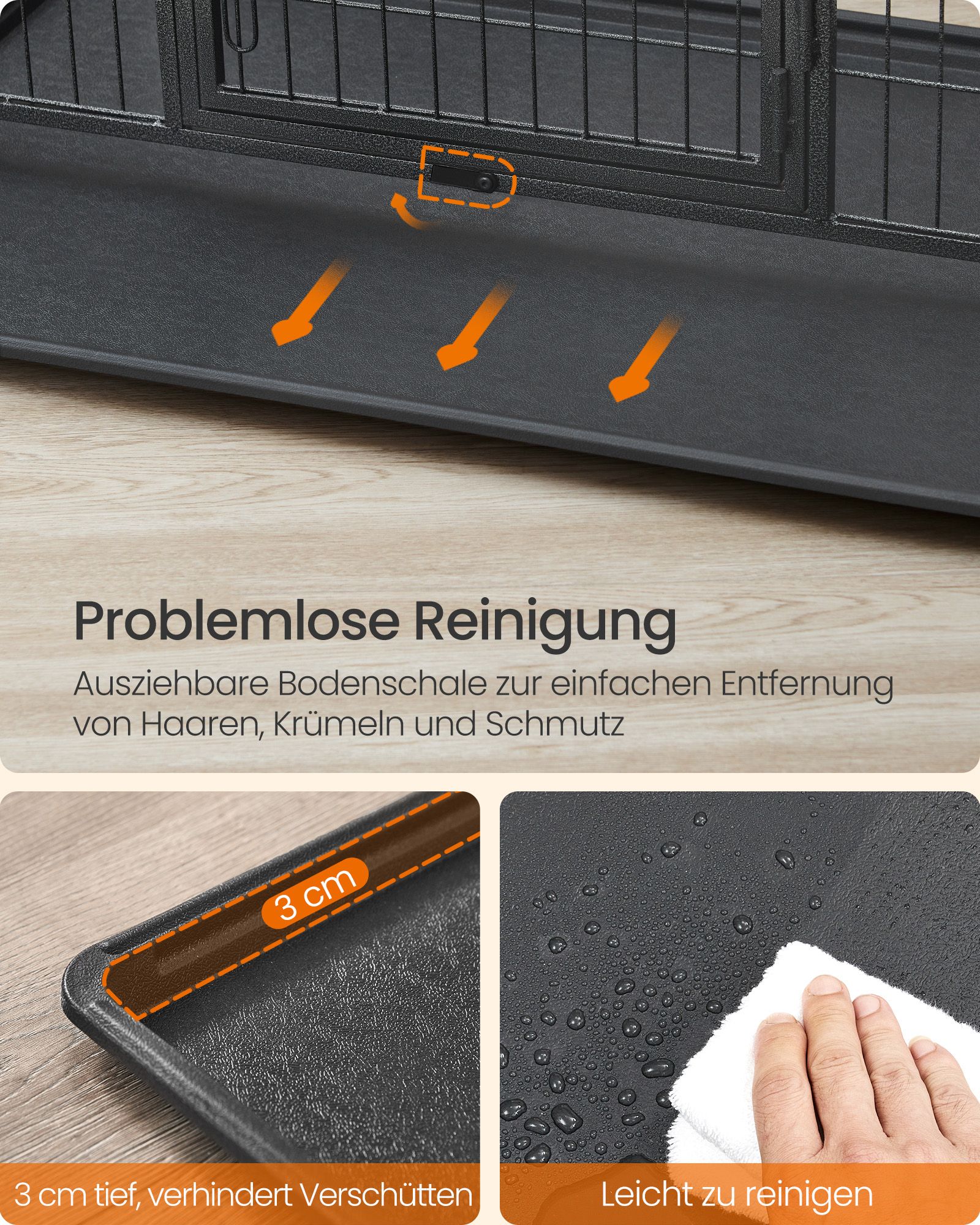 Feandrea koiran häkki, erittäin kestävä, ritilälaatikko, lemmikkieläinten häkki, 107 x 70 x 74,9 cm, suurille ja keskikokoisille koirille, turvallinen, 2 irrotettavaa ovea, helppo puhdistaa, pentujen ulkoilutusalue, XL, musta