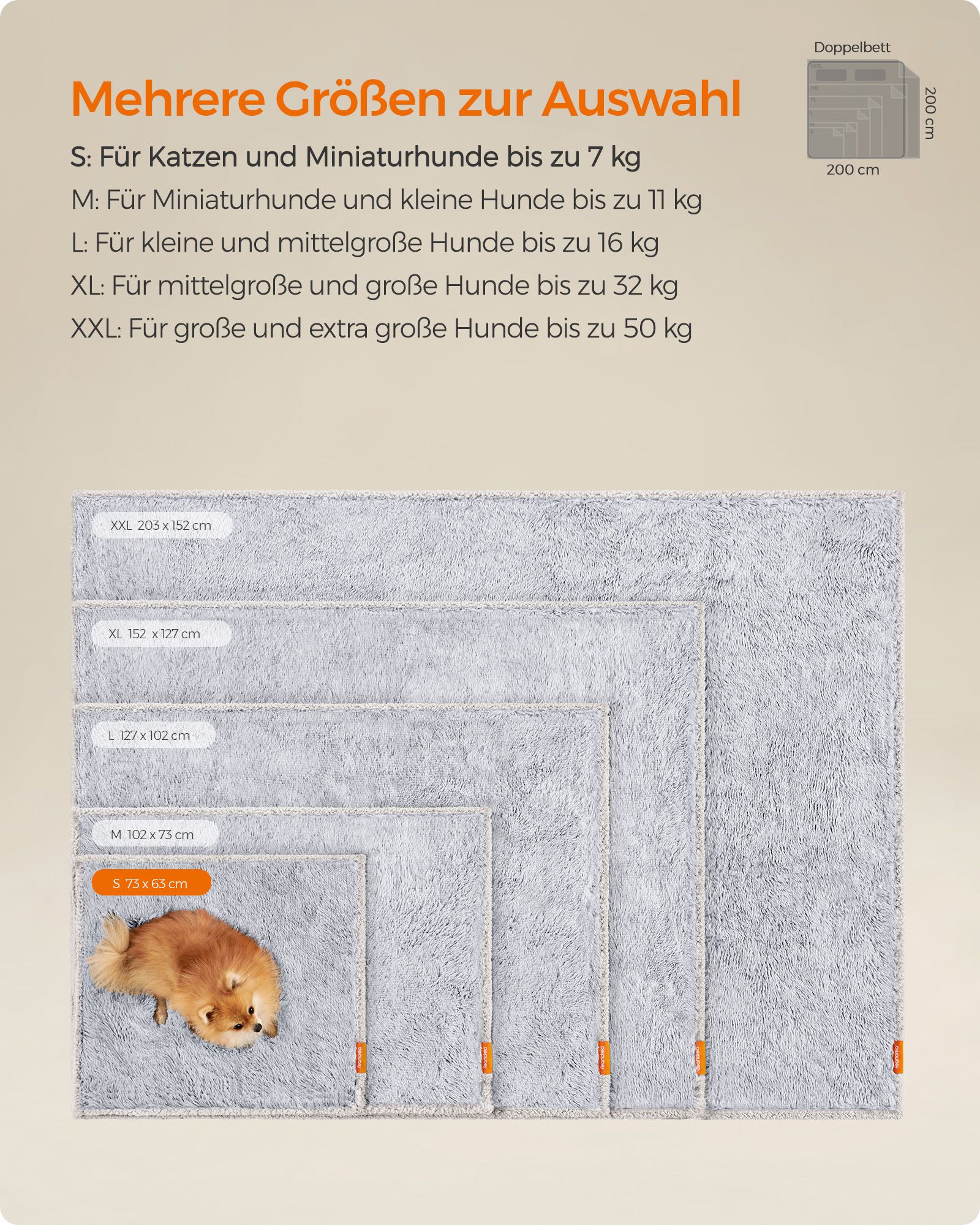 Feandrea koiranpeite, vedenpitävä peite, pitkä muhkea, pienikokoisille koirille, kissoille, sherpa-kangas, kaksipuolinen, koiran sohvan suojapeite