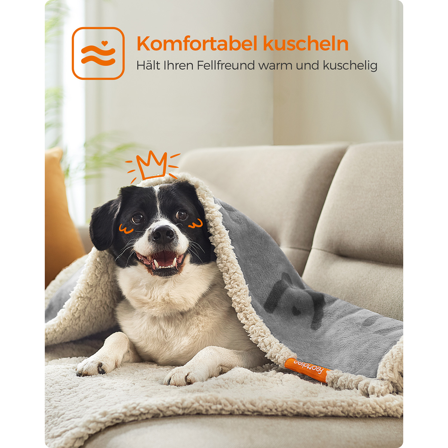 Feandrea vedenpitävä koiranpeite, Sherpa-fleece-peite pienille koirille ja kissoille, 73 x 63 cm, S, konepestävä, kaksipuolinen sohvanpeite, harmaa PPB029G01