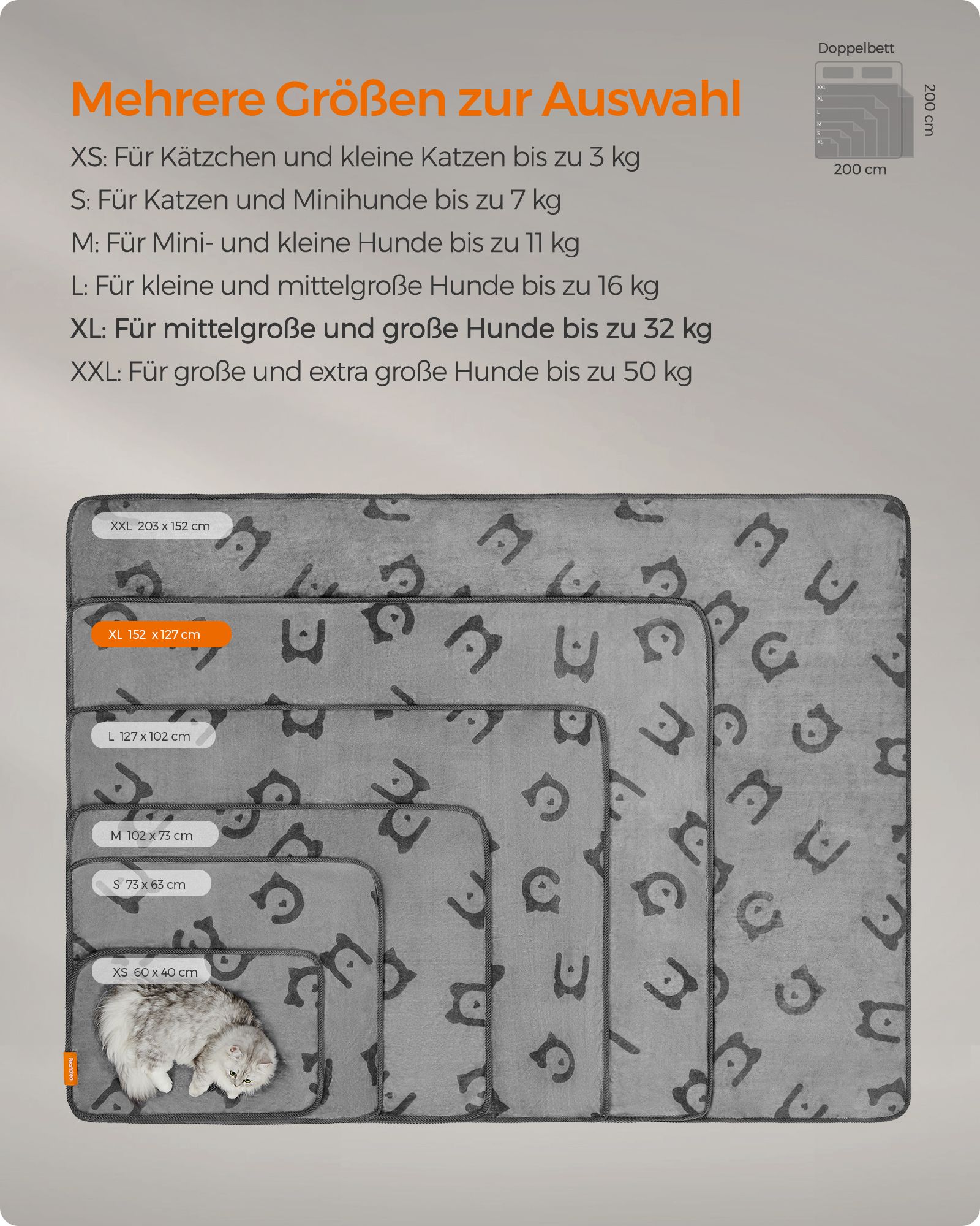 Feandrea kissanpeitto, 3 kpl:n sarja, pestävä lemmikkieläinten peitto, XS, 60 x 40 cm, kissanpennuille ja kissanpoikasille, flanelli, suojapeitto sohvalle, liuskekivi harmaa PPB011G01