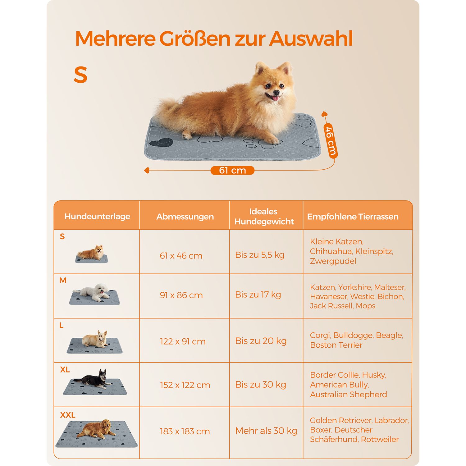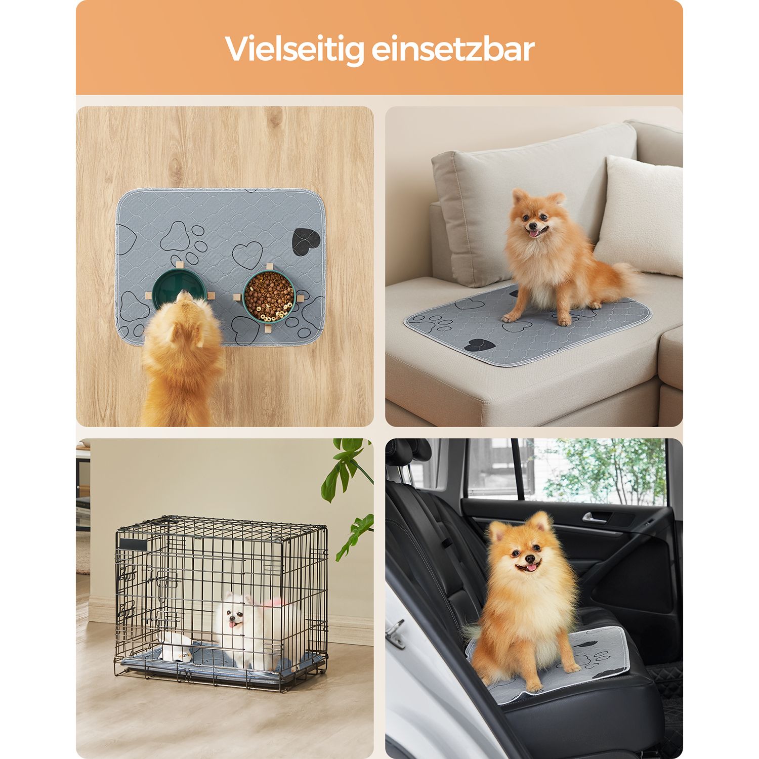 Feandrea Pesukelpoiset pentualustat, uudelleenkäytettävät matot koirille, 61 x 46 cm, 2 kpl, S, koiran wc, vuotamaton, luistamaton, erittäin imukykyinen, kissat, kanit, harmaa PTD018G01