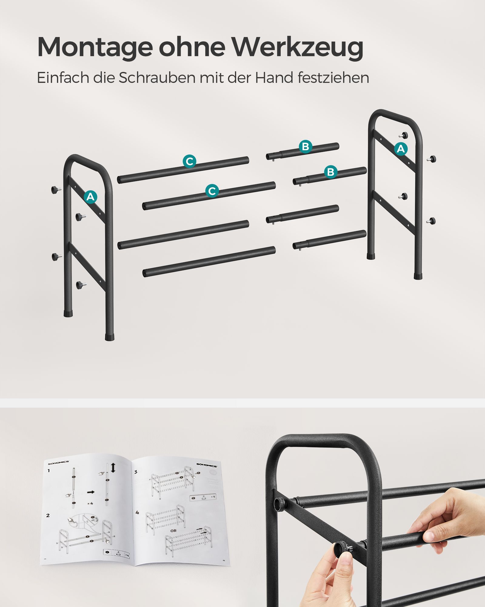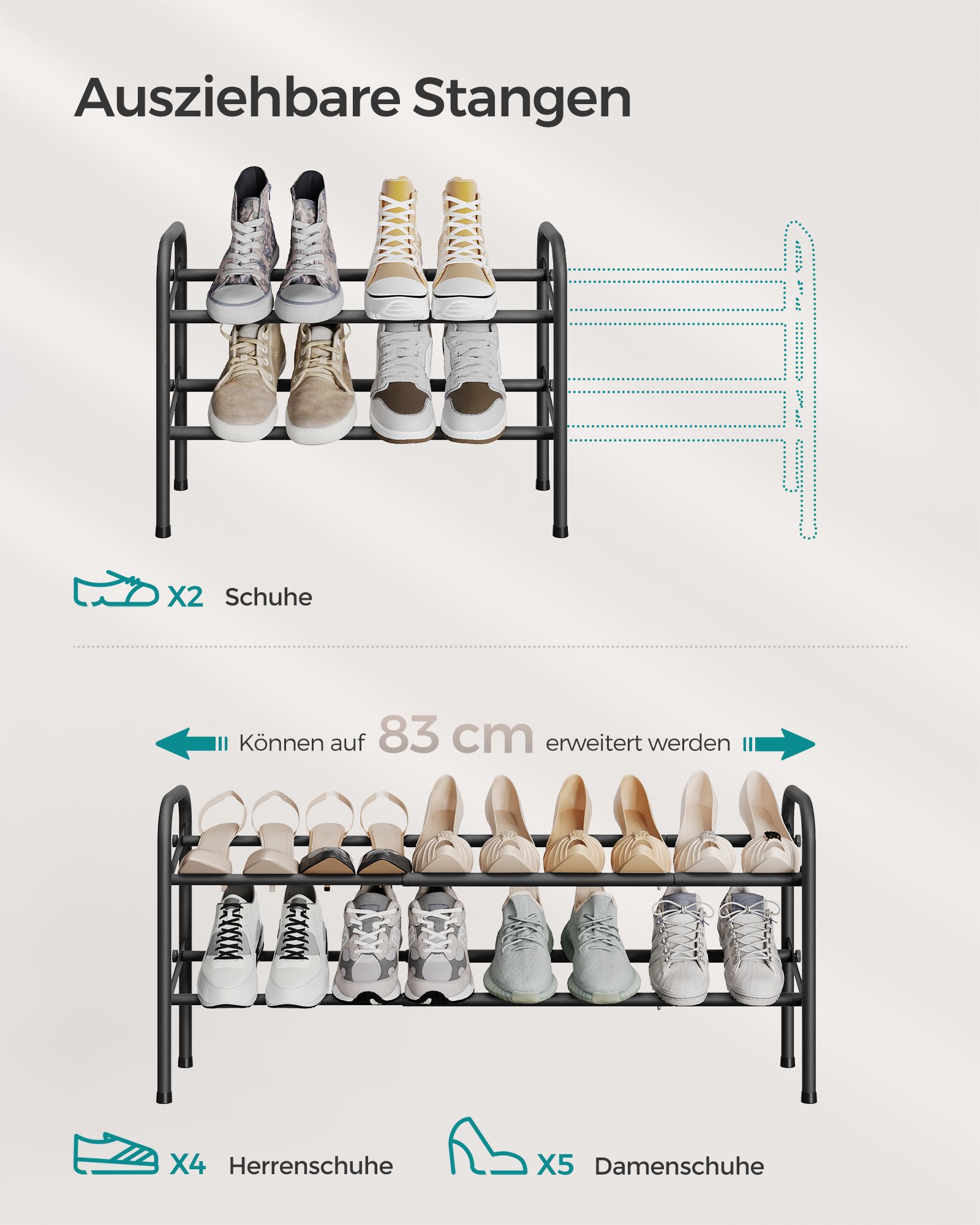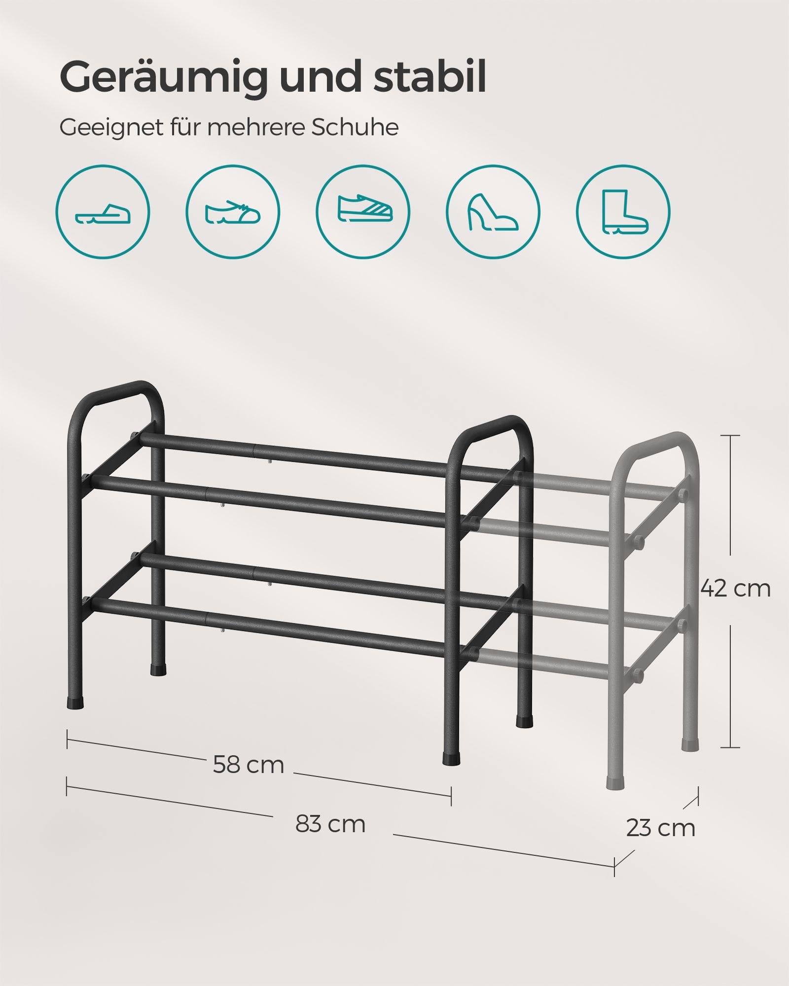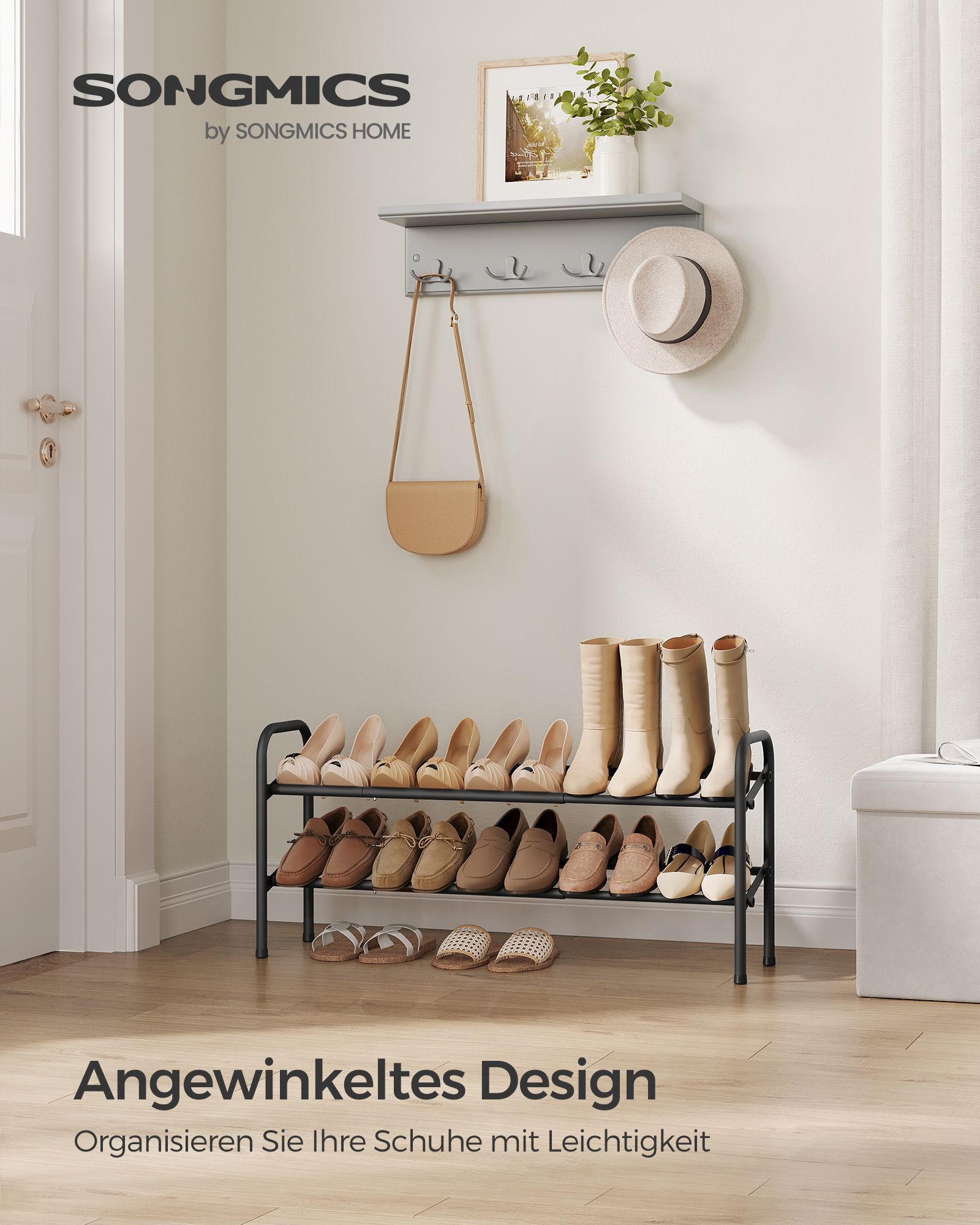 SONGMICS kenkähylly, kenkäteline, 2 tasoa, metallihylly, säädettävä, kengät, seisontateline, eteiseen, vaatehuoneeseen, sisäänkäyntialueelle