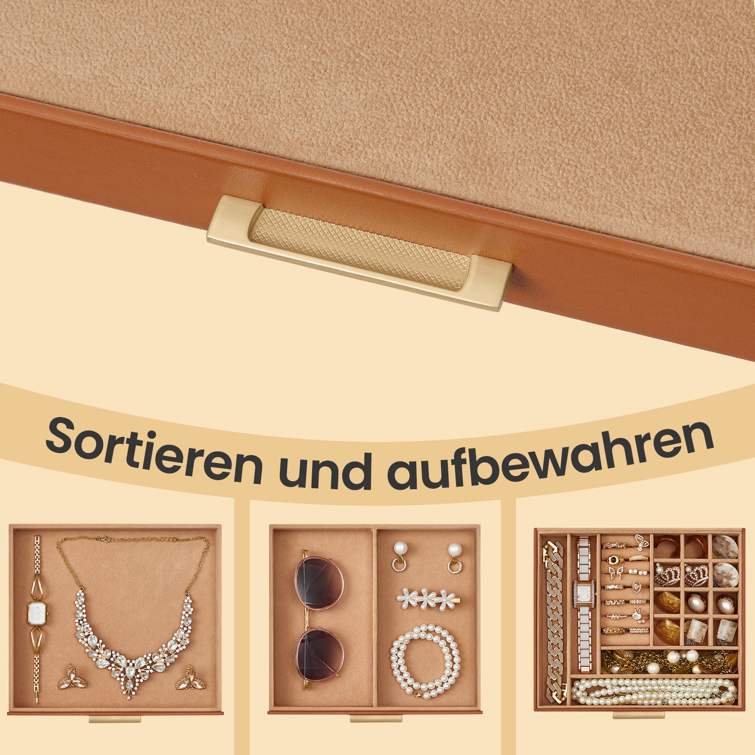 Korurasia, korulaatikko 3 tasoa, korurasia lasikannella, 2 laatikkoa, korujen säilytys, moderni, pilvinen valkoinen-kulta