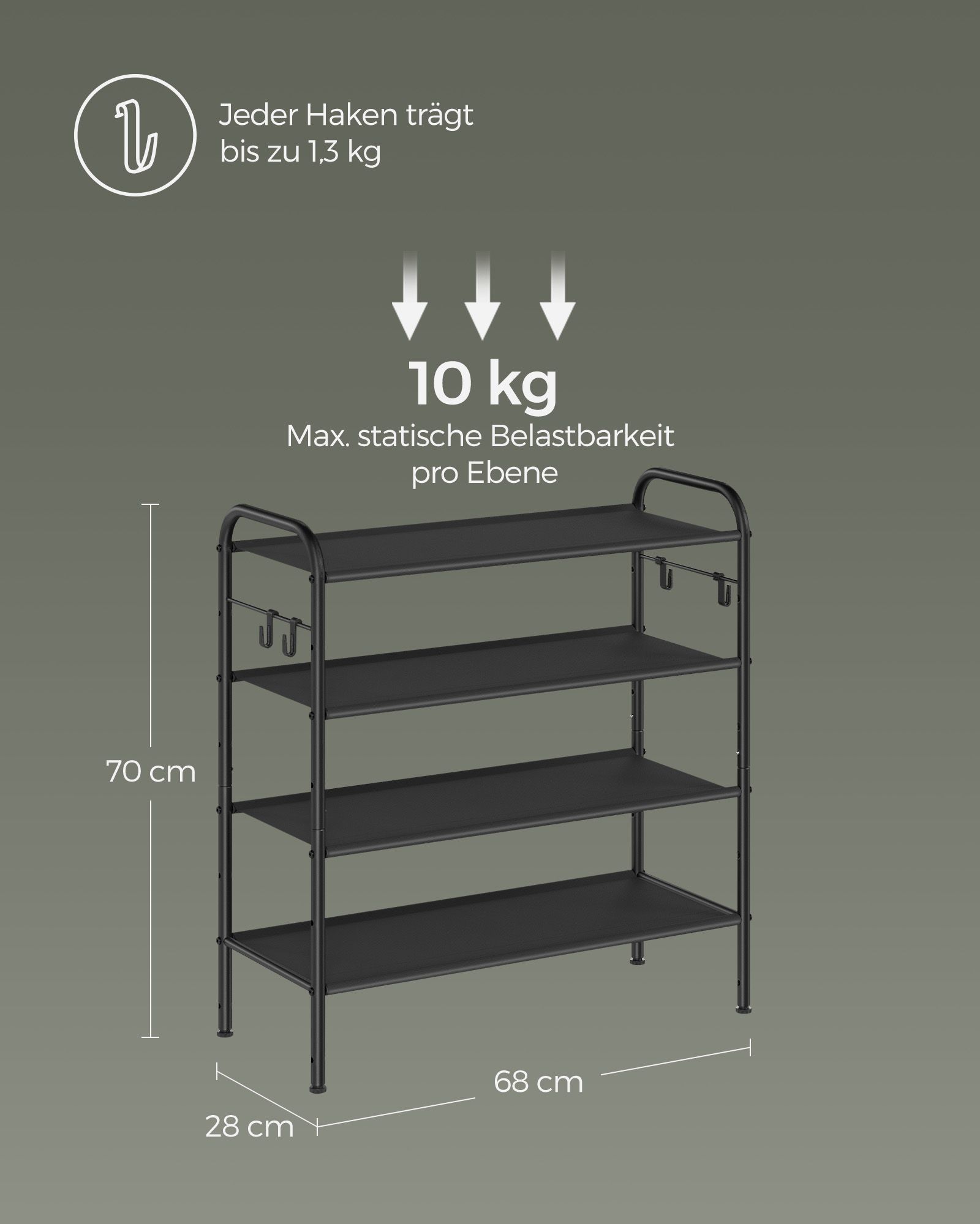 Maks. staattinen kantavuus tasoa kohti: 10 kg
