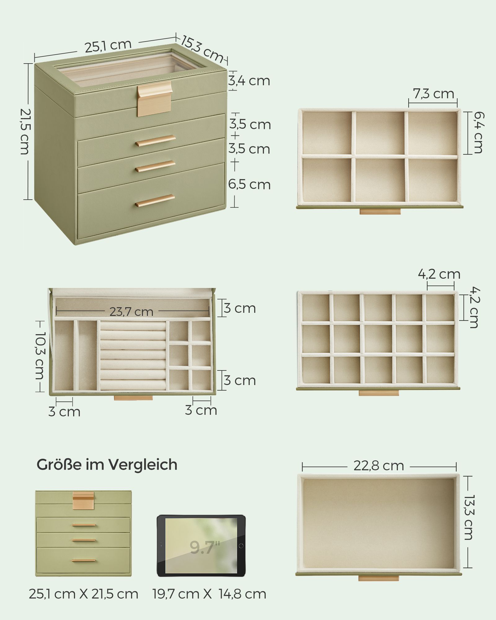 Koko: 15,3 x 25,1 x 21,5 cm (S x L x K)