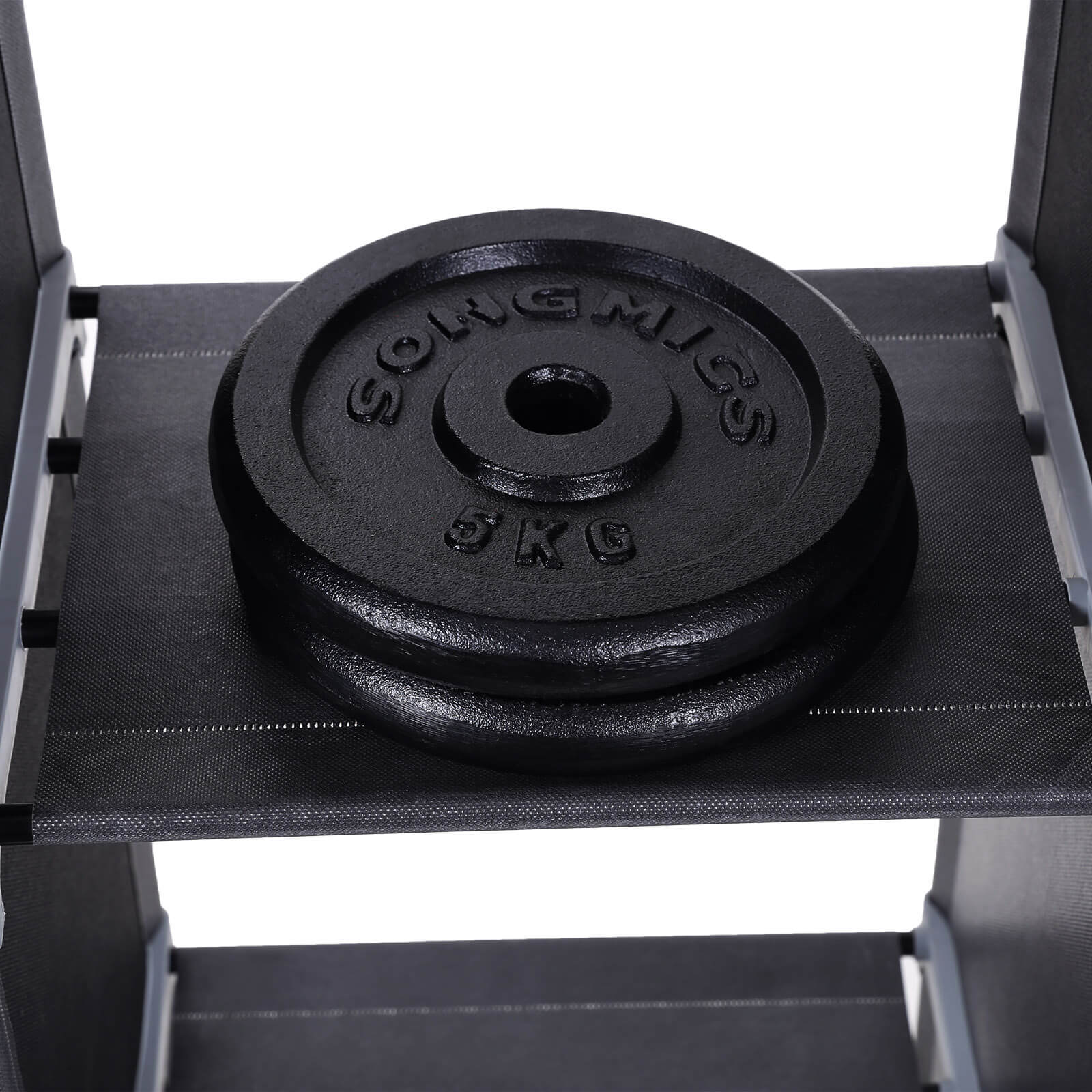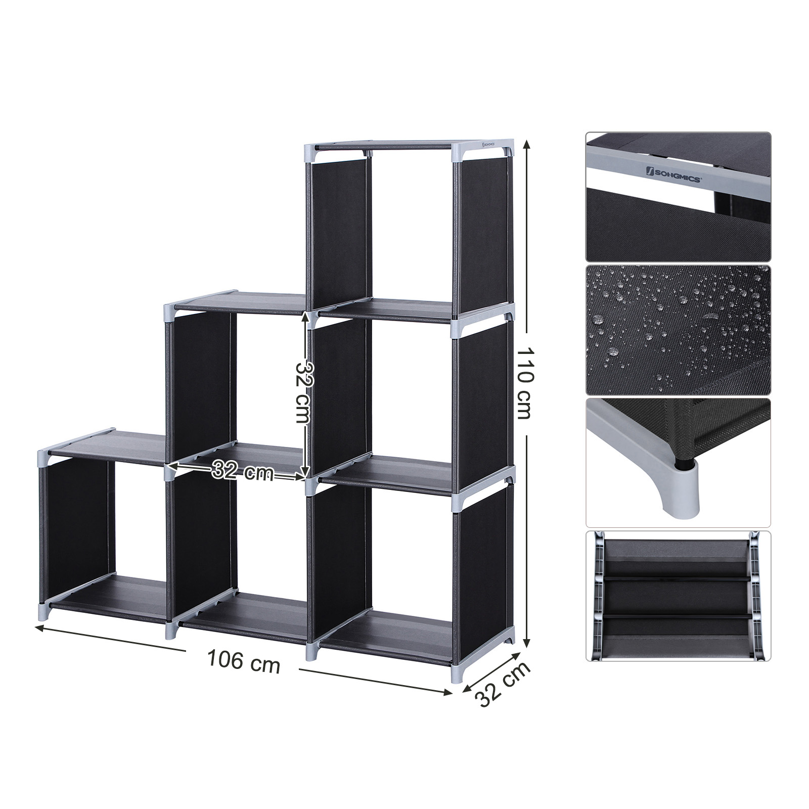 Erilainen säilytystila Makuuhuoneessa sängyn vastapäätä? Tai mihin haluat sijoittaa tämän säilytyshyllyn? Olipa kyseessä työhuoneen kirjahylly, lastenhuoneen lelujen säilytyspaikka, varasto tai autotalli, vain mielikuvituksesi asettaa rajat! Entä jos kangashylly likaantuu? Älä huoli! Kuitukangas on helppohoitoinen ja vettä hylkivä. Sen puhdistamiseen riittää kostealla liinalla pyyhkiminen. Tuotetiedot: Väri: musta, harmaa (muoviliittimet) Materiaali: kuitukangas (100 g/m²), teräsputket (Ø 12 mm), muoviliittimet Koko: 105 x 30 x 105 cm (P x L x K) Paino: 1,7 kg Maks. staattinen kantavuus per hylly: 8 kg Maks. staattinen kantavuus yhteensä: 48 kg Toimitus sisältää: 1 x säilytyshylly 1 x ohjeet (DE, EN, FR, ES, IT) SONGMICS-ohjeet:- Aseta hylly seinää vasten ja säilytä raskaat esineet alemmissa hyllyissä. – Älä käytä tätä tuotetta ulkona.