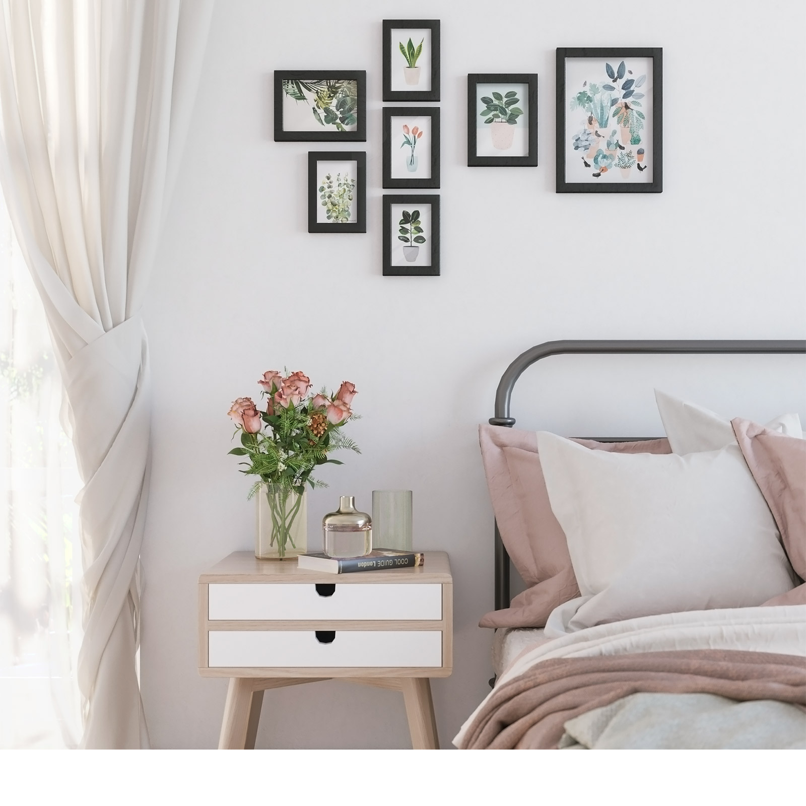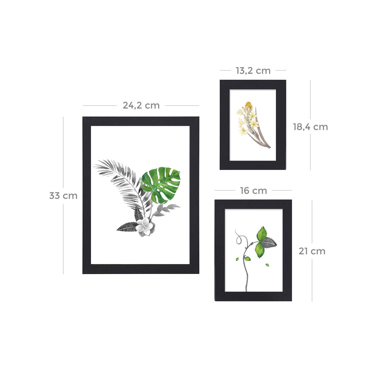 Säilytä kauniit muistosi Tämän 7-osaisen valokuvakehyksen sarjan avulla voit esittää henkilökohtaisia valokuviasi, taideteoksiasi, keräilyesineitäsi tai lastesi piirustuksia ja säilyttää kauniit muistosi. Yksinkertainen mutta tyylikäs muotoilu Nämä puukuitulevystä valmistetut kehykset, joilla on selkeä siluetti ja sileä pinta, sopivat sekä klassisille että nykyaikaisille kuville. Ne ovat huomaamattomia, jotta ne täydentävät valokuviasi tai taideteoksiasi ilman, että valokuva tai taideteos itse jää varjoon. Ihanteellinen lahjavaihtoehto Kehystetyt muistot ovat ihmisille hyvin tärkeitä, minkä vuoksi tämä valokuvakehys on hyvä valinta lahjaksi. Sen avulla voit säilyttää nämä onnelliset ja kauniit hetket ikuisesti. Tuotetiedot: – Väri: musta – Materiaali: MDF, lasi – Valokuvan mitat: 21 x 29,7 cm (iso), 13 x 18 cm (keskikokoinen), 10 x 15 cm (pieni) – Reunan leveys: 2 cm – Reunan paksuus: 1,5 cm – Paino: 2,5 kg Toimitus sisältää: – 1 x iso valokuvakehys – 2 x keskikokoinen valokuvakehys – 4 x pieni valokuvakehys SONGMICS Huomautukset: – Vältä arvotavaroiden sijoittamista valokuvakehyksen alle. – Seinäruuveja ei toimiteta mukana, koska erilaiset seinämateriaalit vaativat erilaisia kiinnitystapoja. Ota tarvittaessa yhteyttä paikalliseen rautakauppaan.