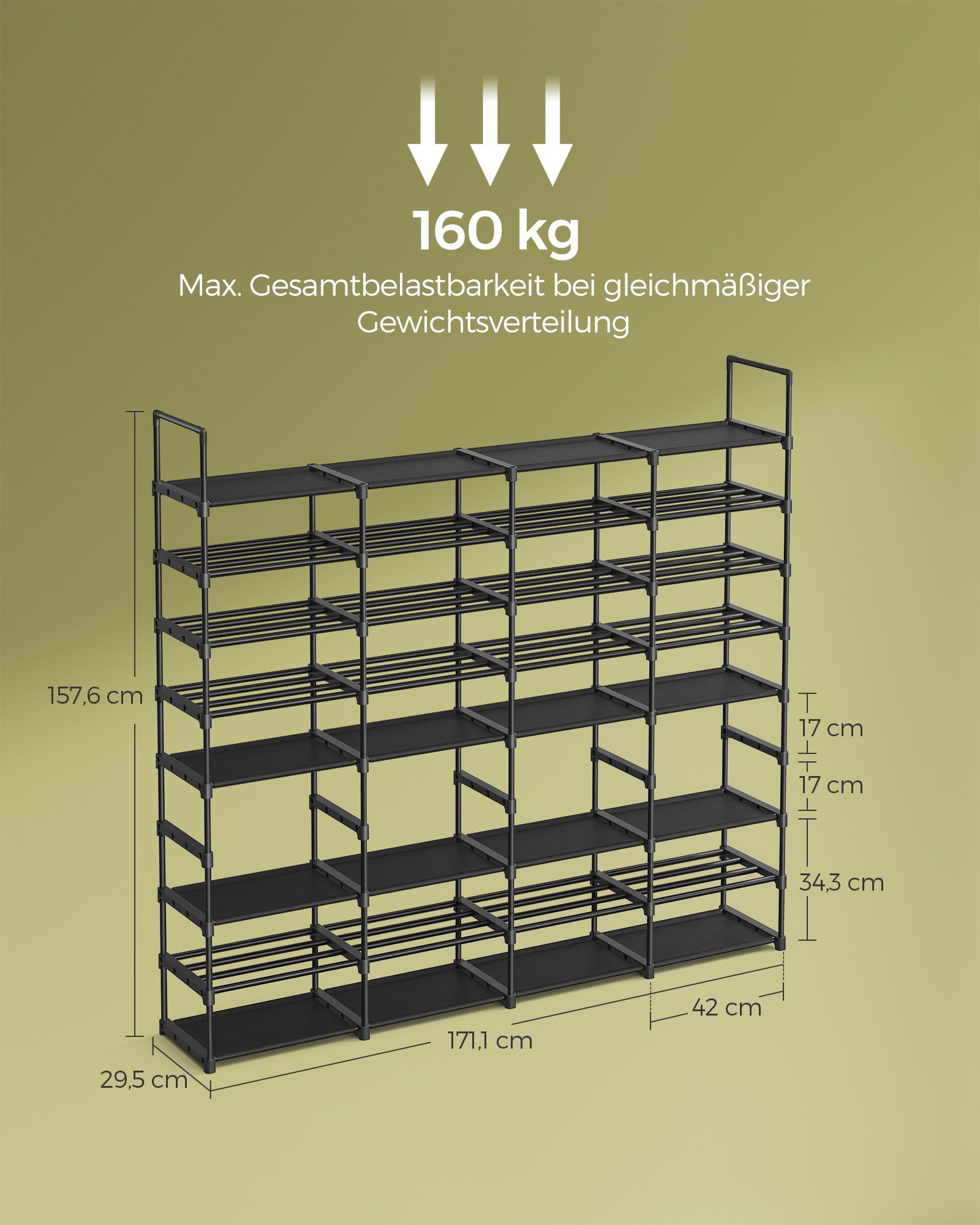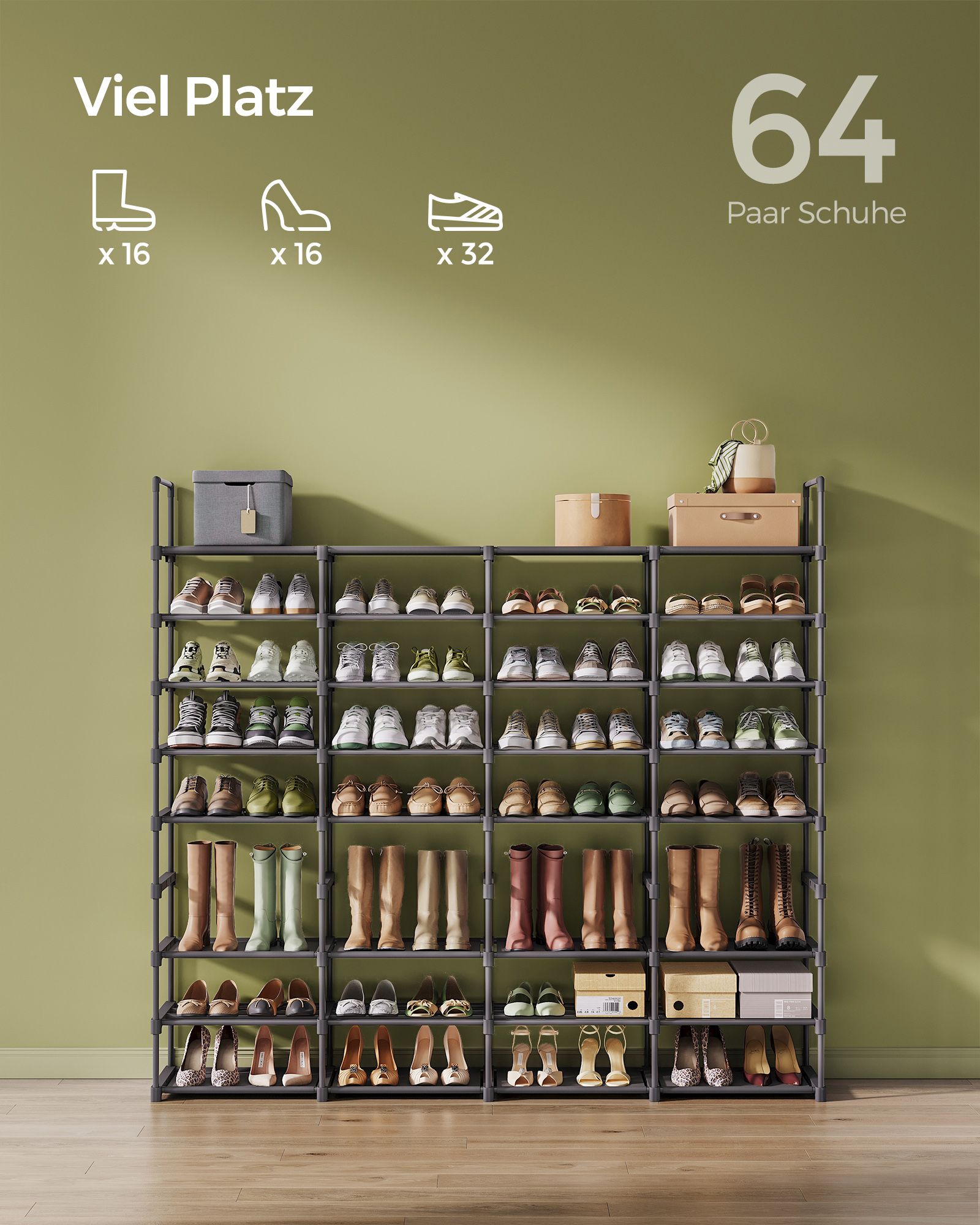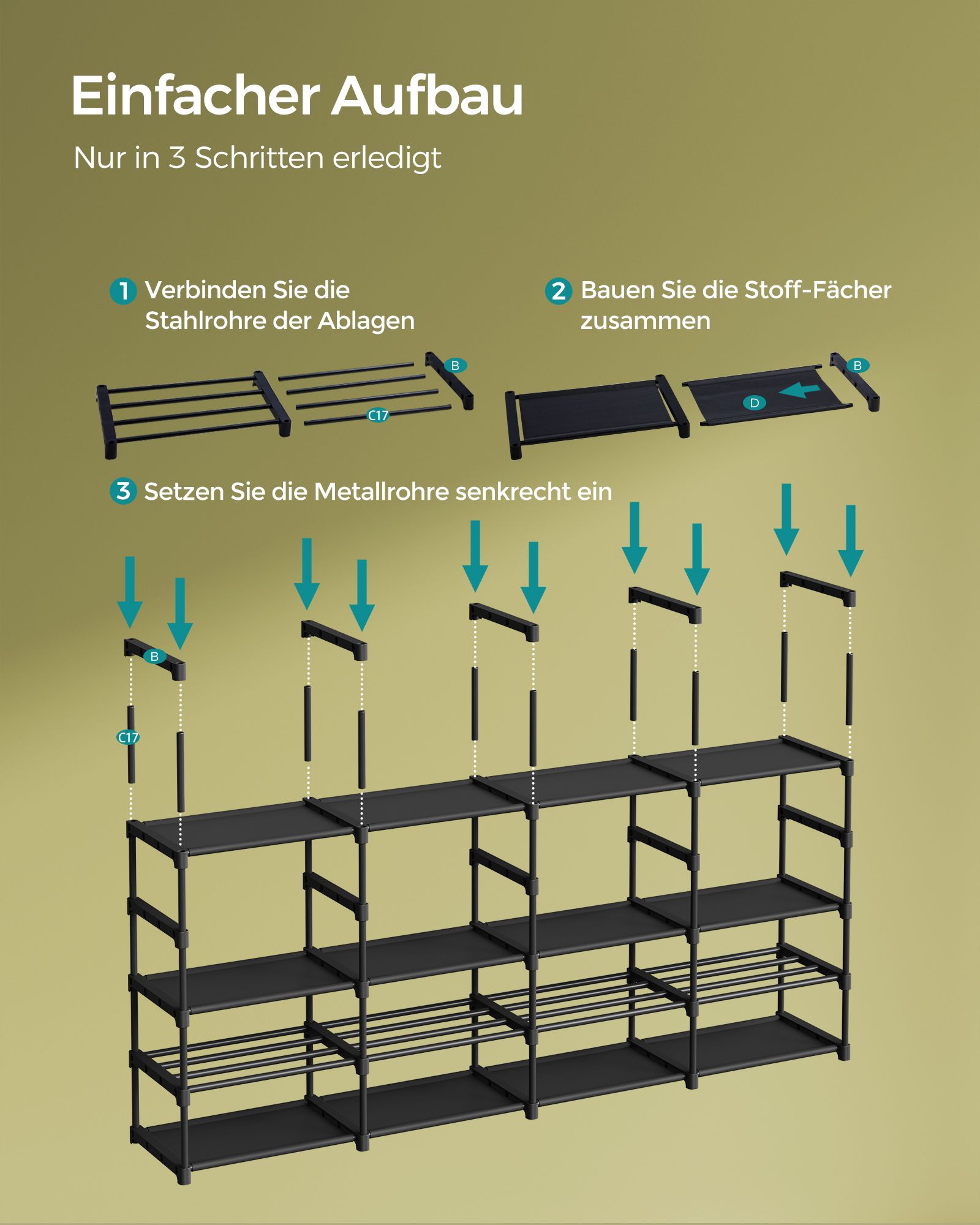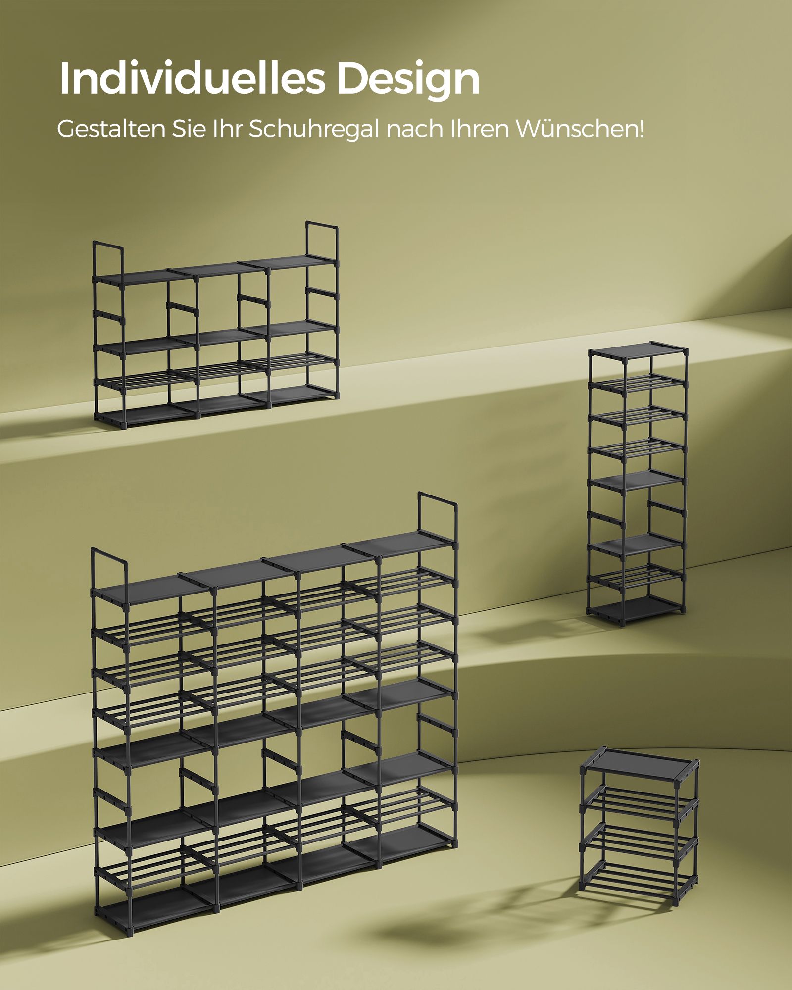 SONGMICS säädettävä kenkäteline, kenkäteline tasoilla, säilytysteline, teräsputket, kuitukangas, jopa parille kenkiä, tilaa säästävä, eteiseen, vaatehuoneeseen, autotalliin