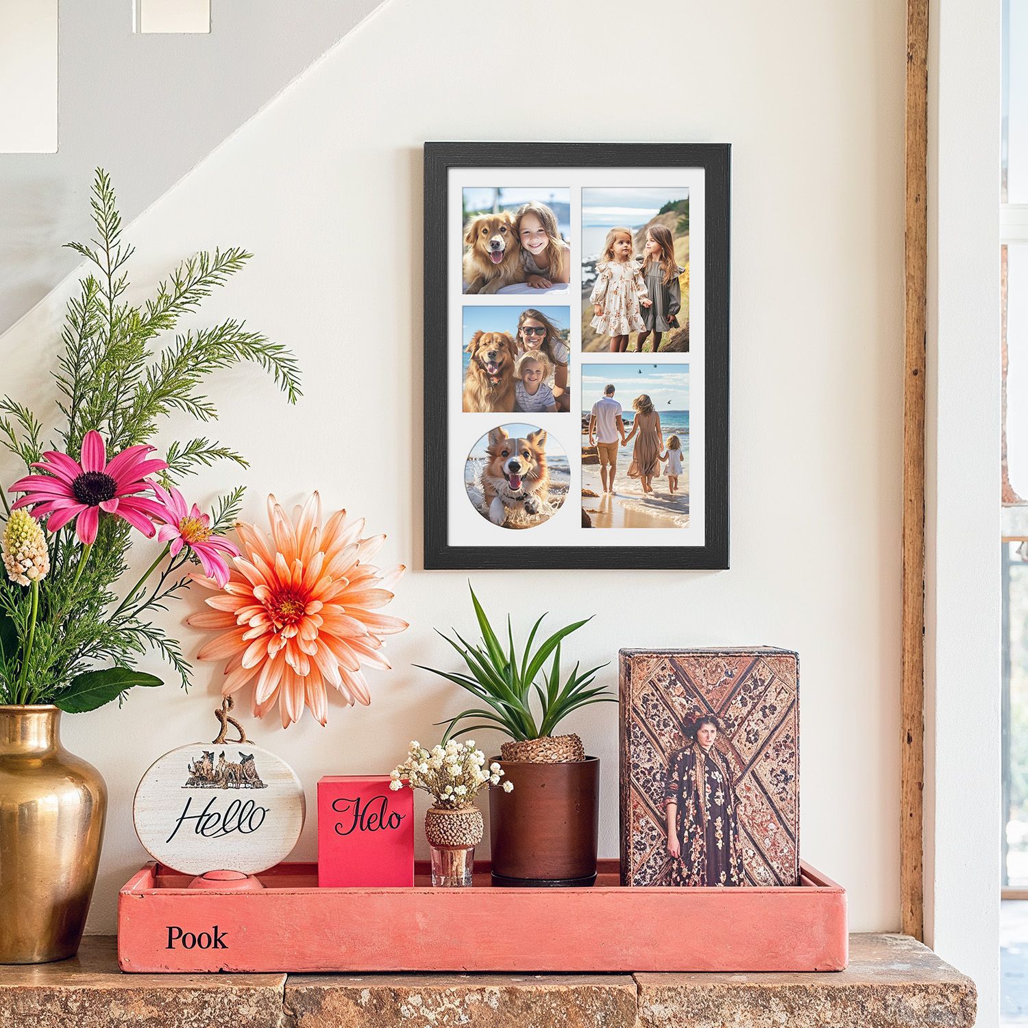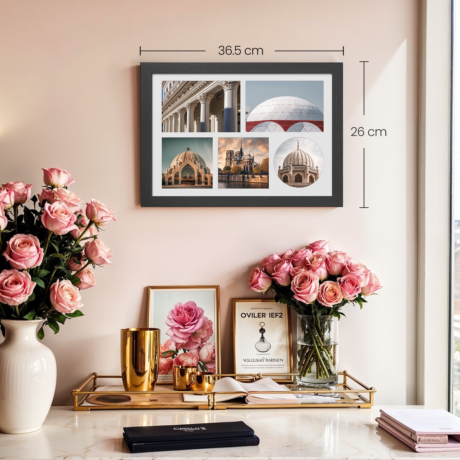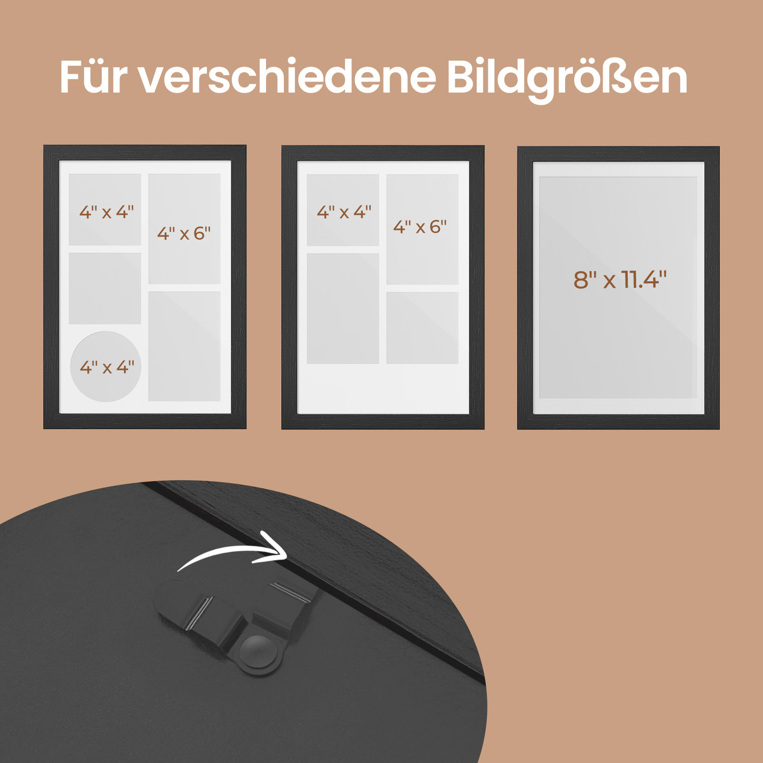 SONGMICS Kuvakehys A4, 3 passepartoutia, valokuvakehys useille kuville, kollaasi valokuville A4, jälkiä jättämättömät seinäkoukut
