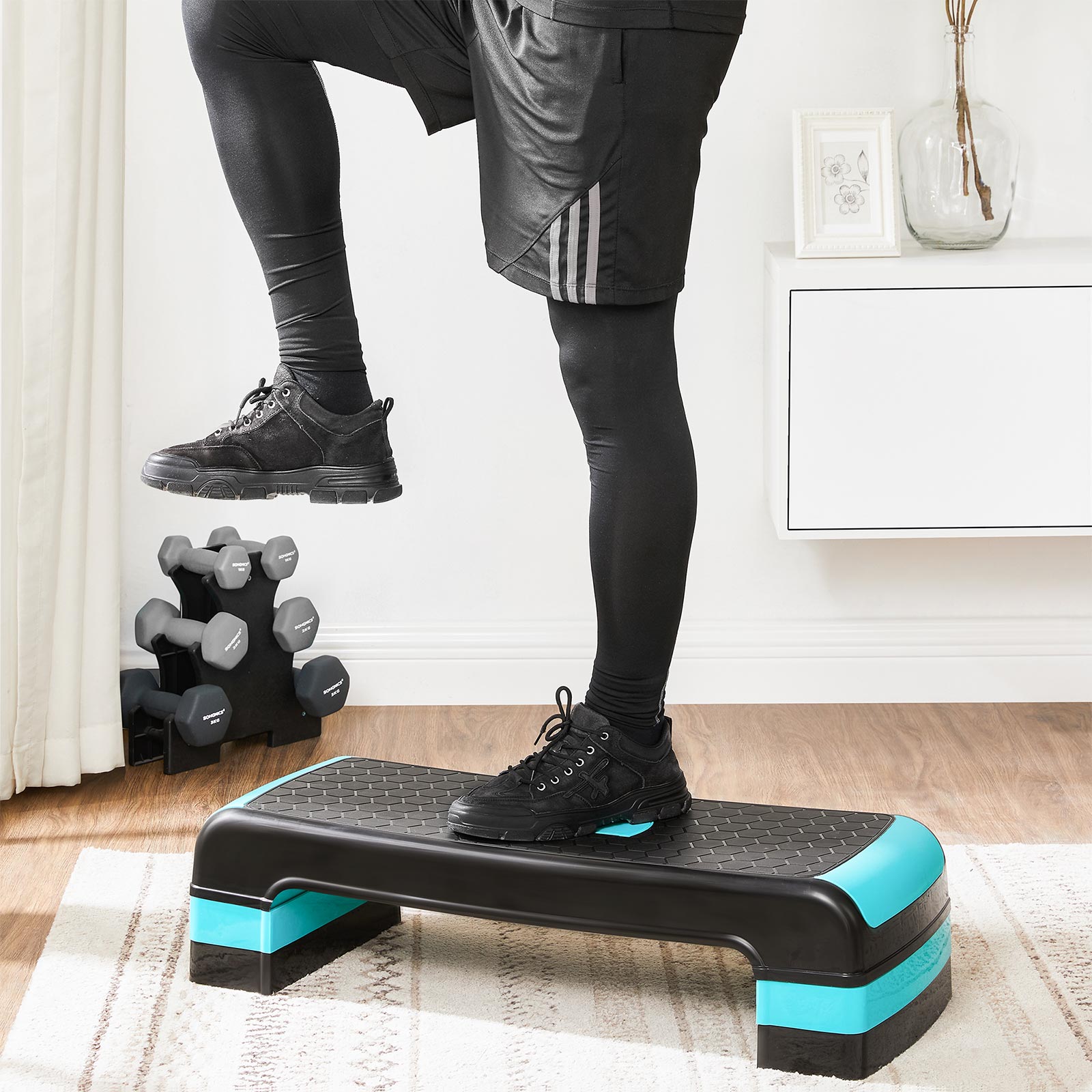 Ota kaikki irti kotitreenistäsi ja vähäisestä ajastasi! Kestävän materiaalin ja vankan rakenteen ansiosta tämä stepperi kestää käytössä vuosia. Asennus on helppoa – pinoa vain tukipalat päällekkäin ja valmista. Olipa kyseessä kuntosali, koti tai toimisto, tämä stepperi on helppo ottaa mukaan minne tahansa.Tämän steppilaudan kohokohdat: Helppo kuljettaa ja puhdistaa Luistamaton tarttumaton pinta Kestää jopa 100 kg:n painon Suuri pinta intensiiviseen ja haastavaan sydänliikuntaan Auttaa sinua parantamaan kuntoasi kotona, toimistossa tai ulkona Luistamattomat tyynyt takaavat vakauden ja suojaavat lattiaasi naarmuilta Tuotetiedot:Väri: musta-turkoosi Materiaali: PP-muovi, TPE-kumityynyt Koko: 78 x 31 x (10/15/20) cm (P x L x K) Vastuskuminauhan mitat: 600 (ympärysmitta) x 50 (leveys) x 0,65 mm (paksuus) Paino: 3,7 kg Maks. staattinen kantavuus: 100 kgToimitus sisältää:1 x steppilauta4 x tukipala1 x vastusnauhaSONGMICS Huomautukset:Käytä tuotetta tasaisella ja kuivalla alustalla, älä missään tapauksessa liukkaalla pinnalla, jossa on vesi- tai öljytahroja, jotta vältät liukastumisesta johtuvat loukkaantumiset.Pidä lapset ja lemmikkieläimet poissa tuotteen läheisyydestä.
