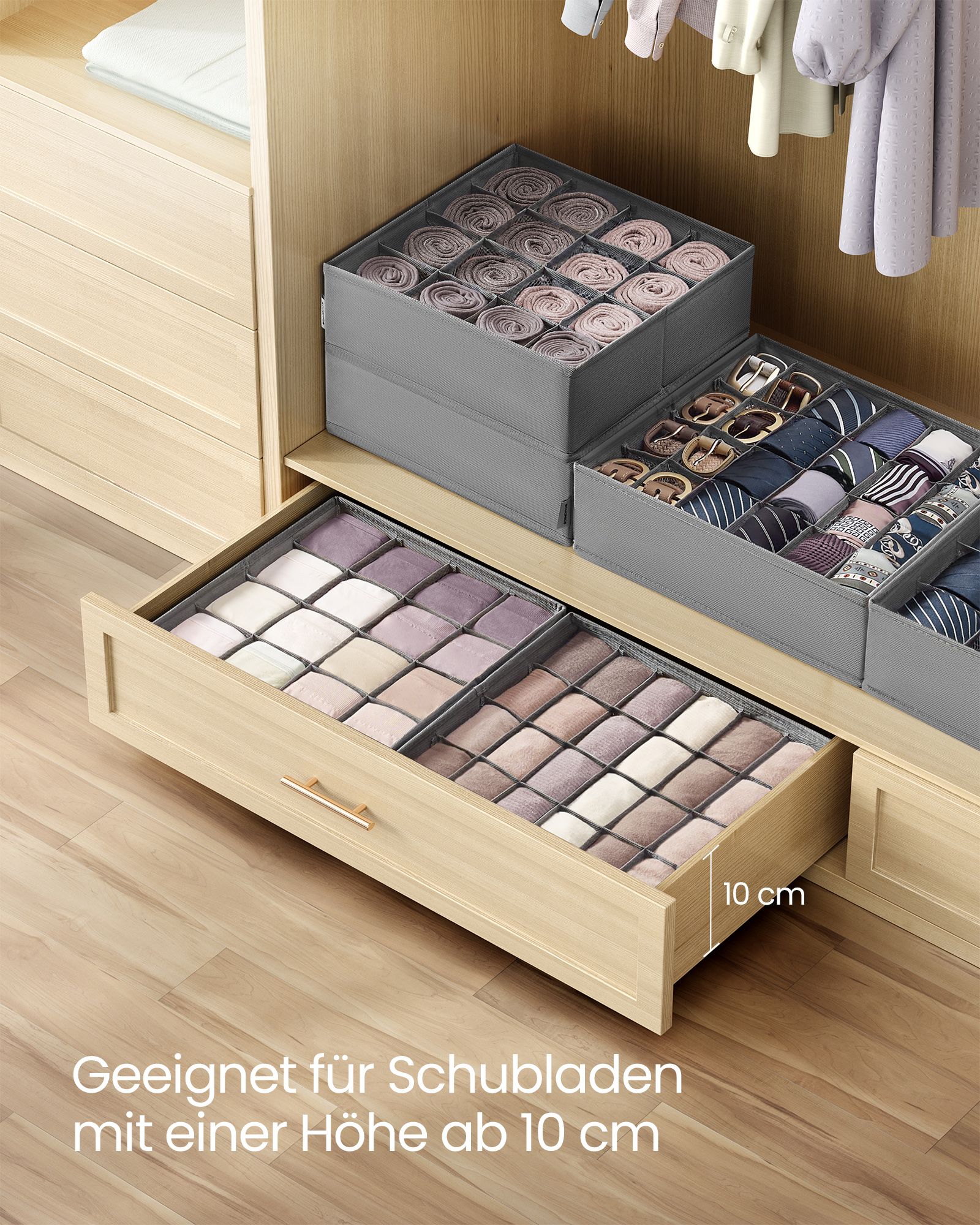 SONGMICS alusvaateorganisaattori, 4 kpl, 80 lokeroa (2×16+2×24), taitettava laatikko-organisaattori, vaatekaapin järjestysjärjestelmä, säilytyslaatikot, sukat, alusvaatteet, solmiot, musta RUS011B01